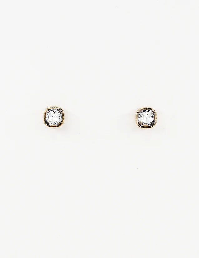 Clear Stud Earrings-Gold