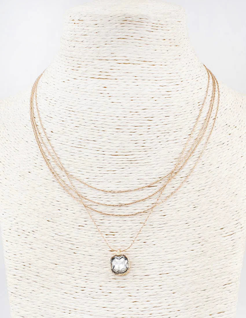 Gold Thin Multi Chain with Clear Crystal 16"-18" Necklace