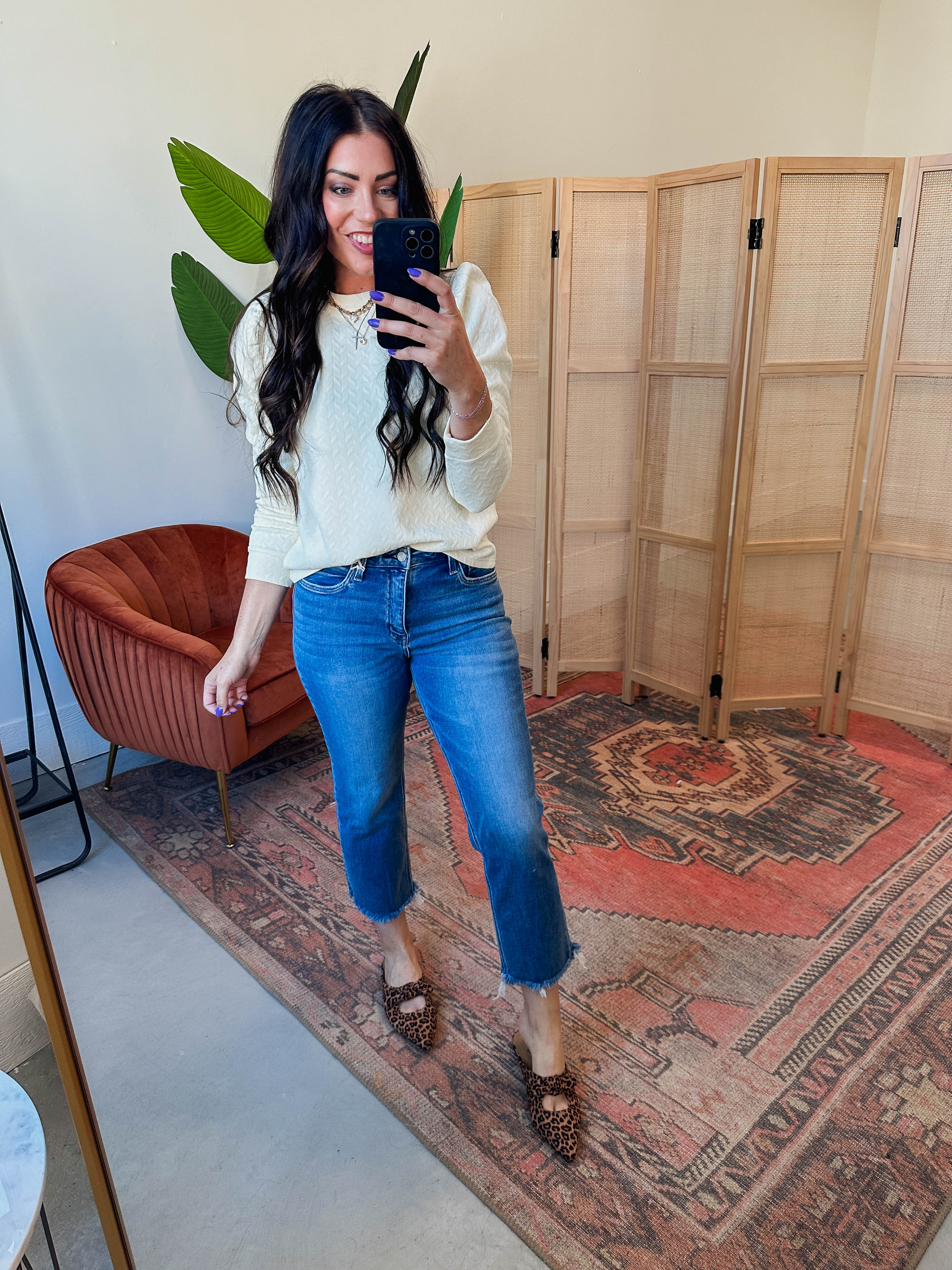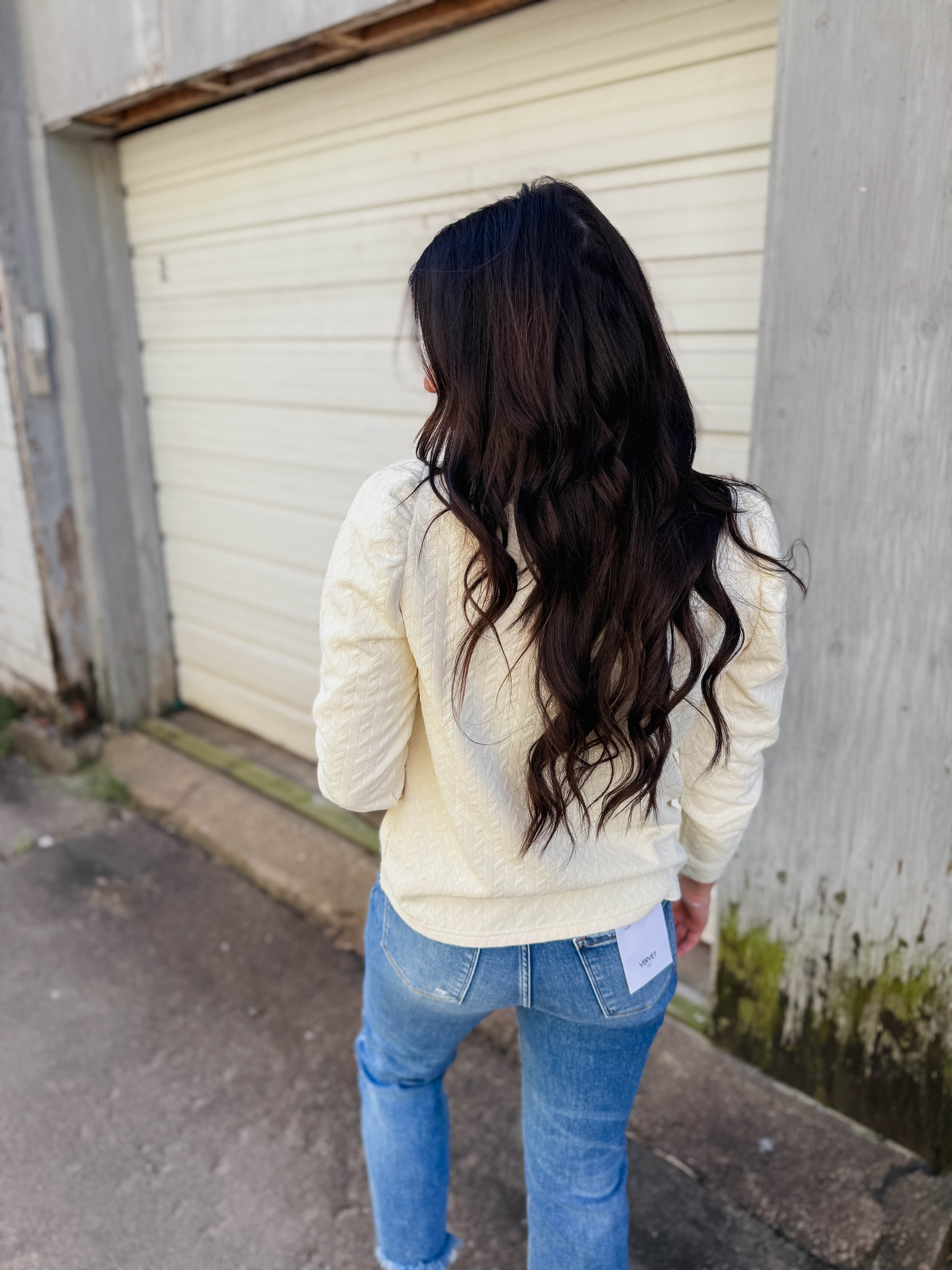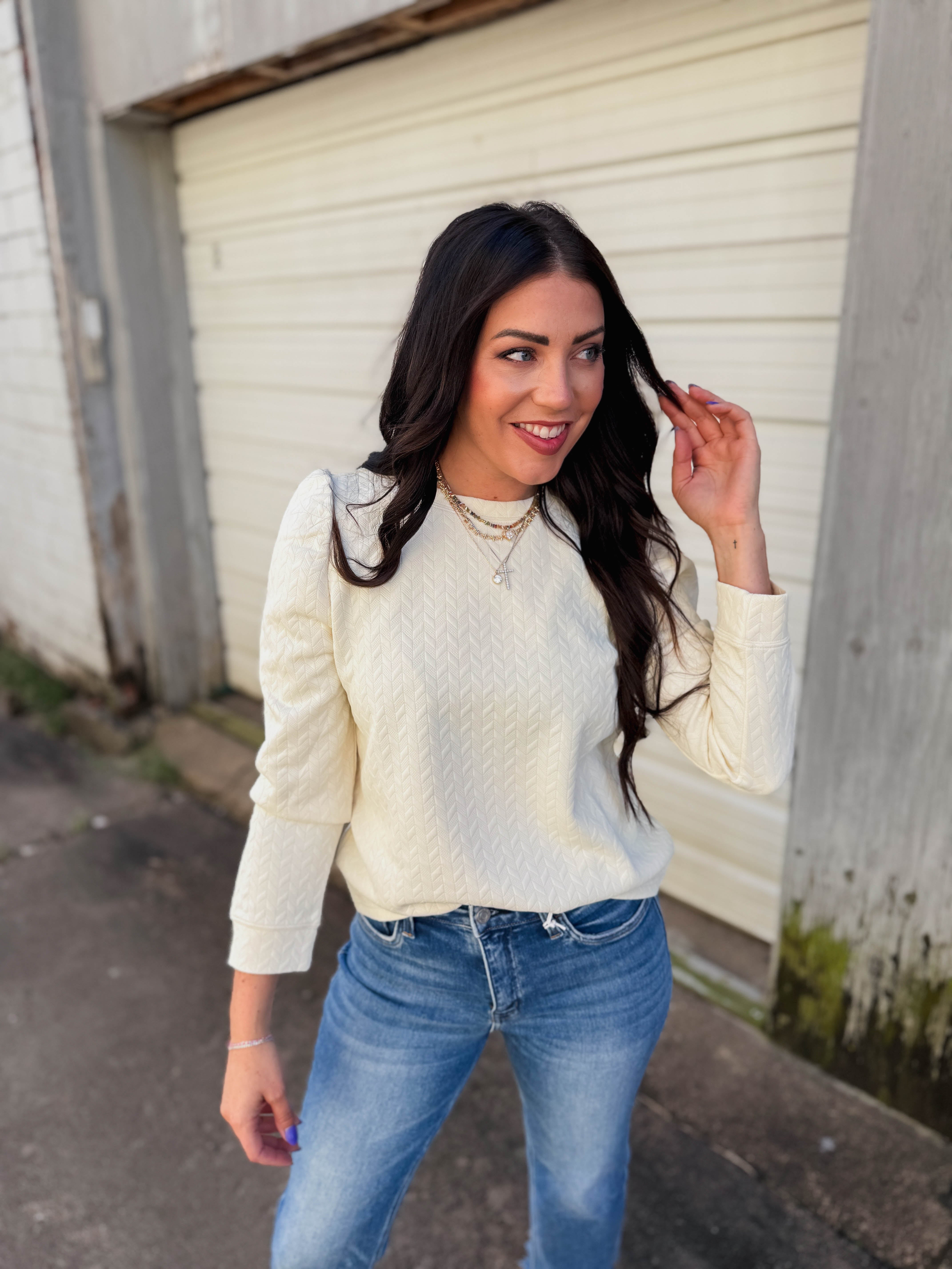 The Ann Knit Top features a cozy jacquard knit with a classic crew neckline and charming long puff sleeves. Its versatile fit makes it perfect for work or weekend fun, effortlessly adding texture and style to any outfit. Dress it up or down with ease!