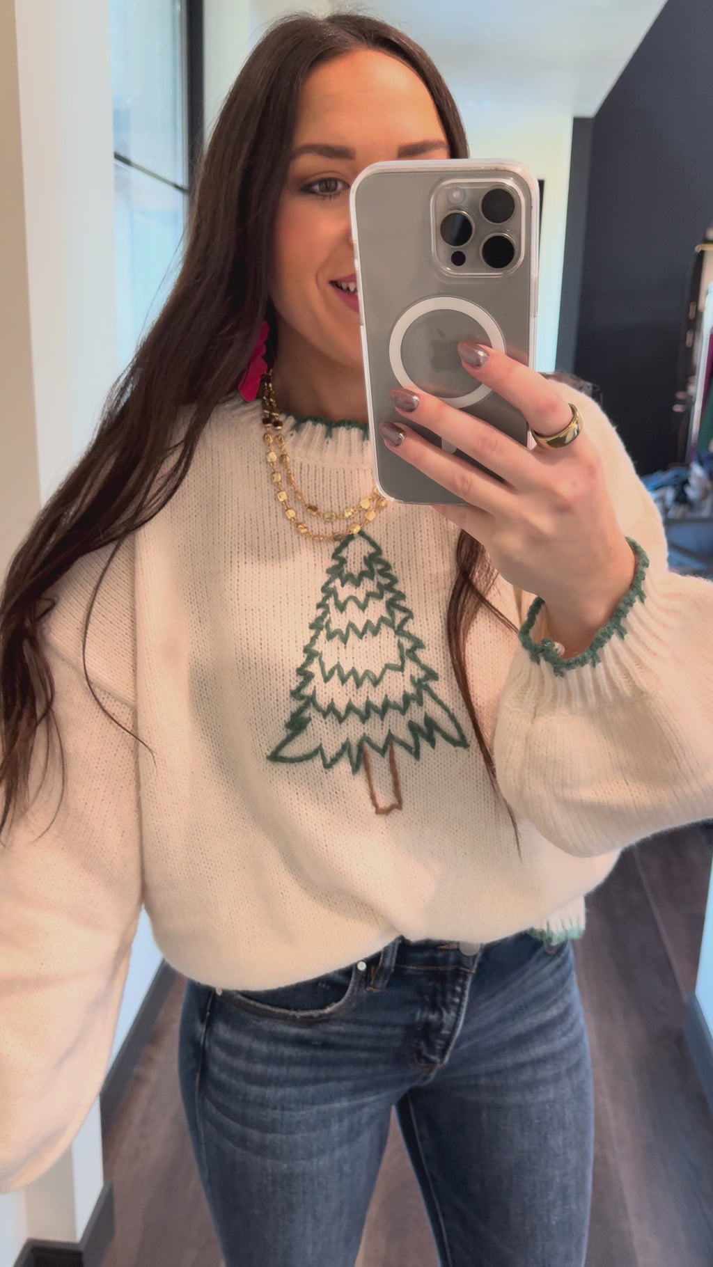 Spread holiday cheer in this playful sweater! The Frosted Pines Sweater features festive Christmas tree stitching and contrast piping details that make it instantly charming. With its relaxed crew neckline and comfortable fit, it's the perfect sweater for all your seasonal celebrations and cozy winter moments.