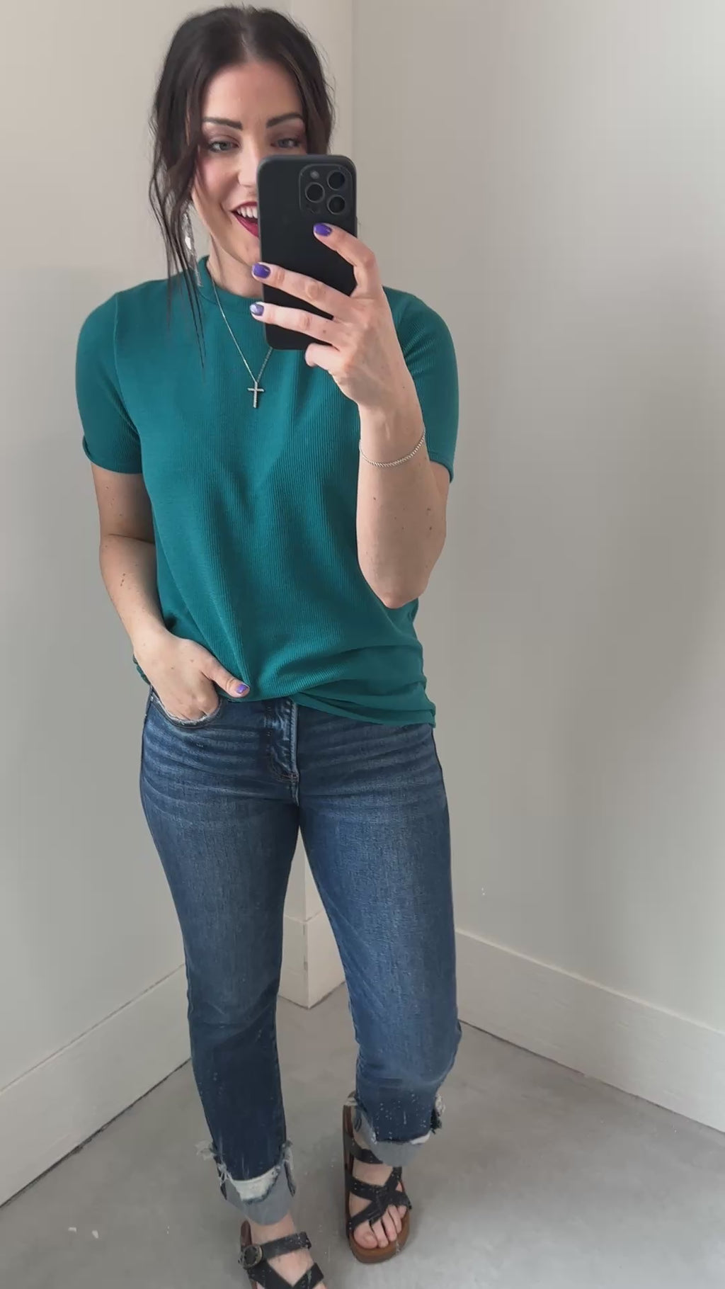 Meet the newest addition to the IKT Custom Basics line. The Pierce Tee is made with you in mind. With 6 bold and bright colors you will want more than one! These short sleeve ribbed tops are perfect for everyday wear, layering or even dressing them up for work. This comfy fabric will have you reaching for it every time you get dressed!