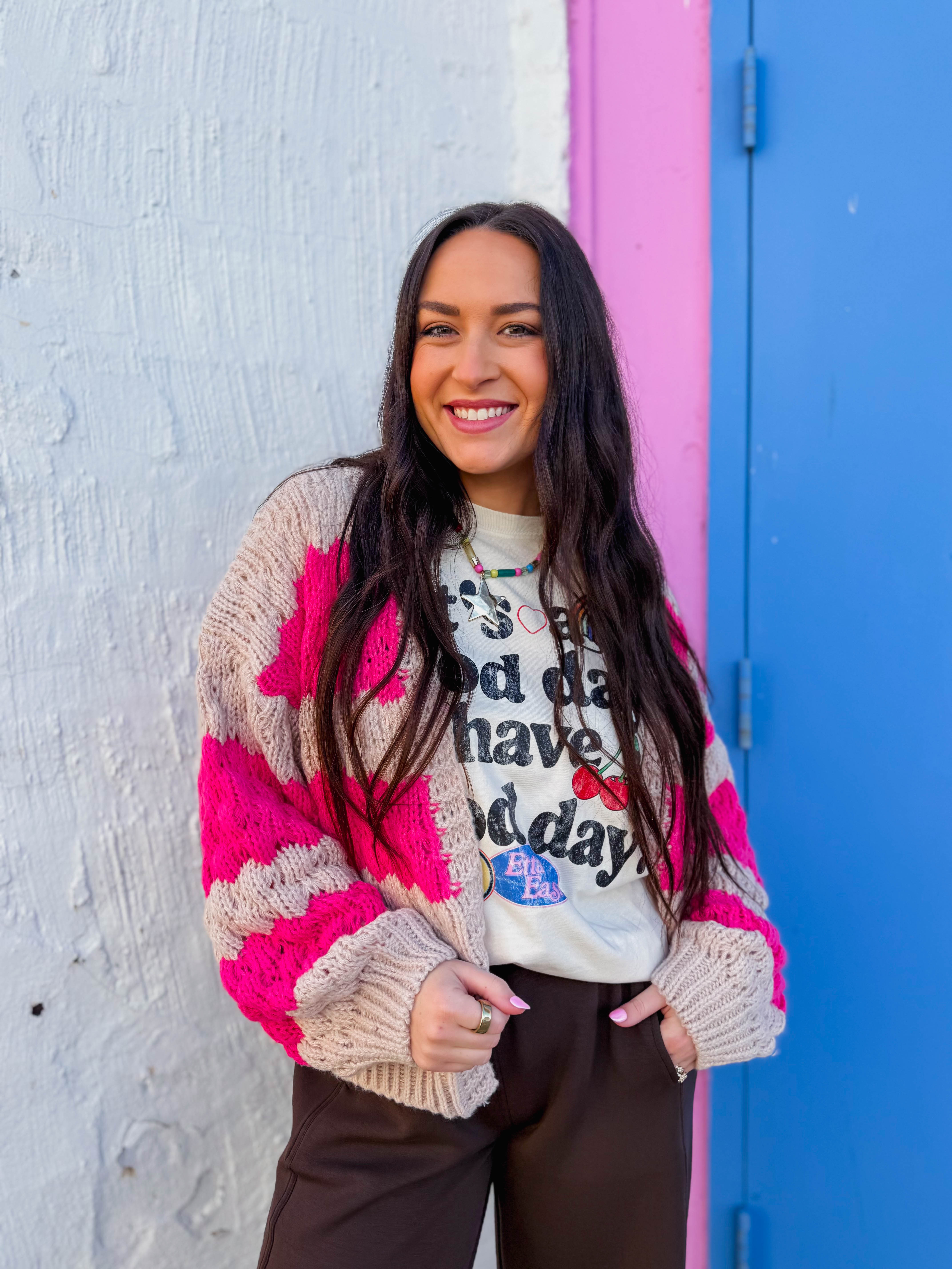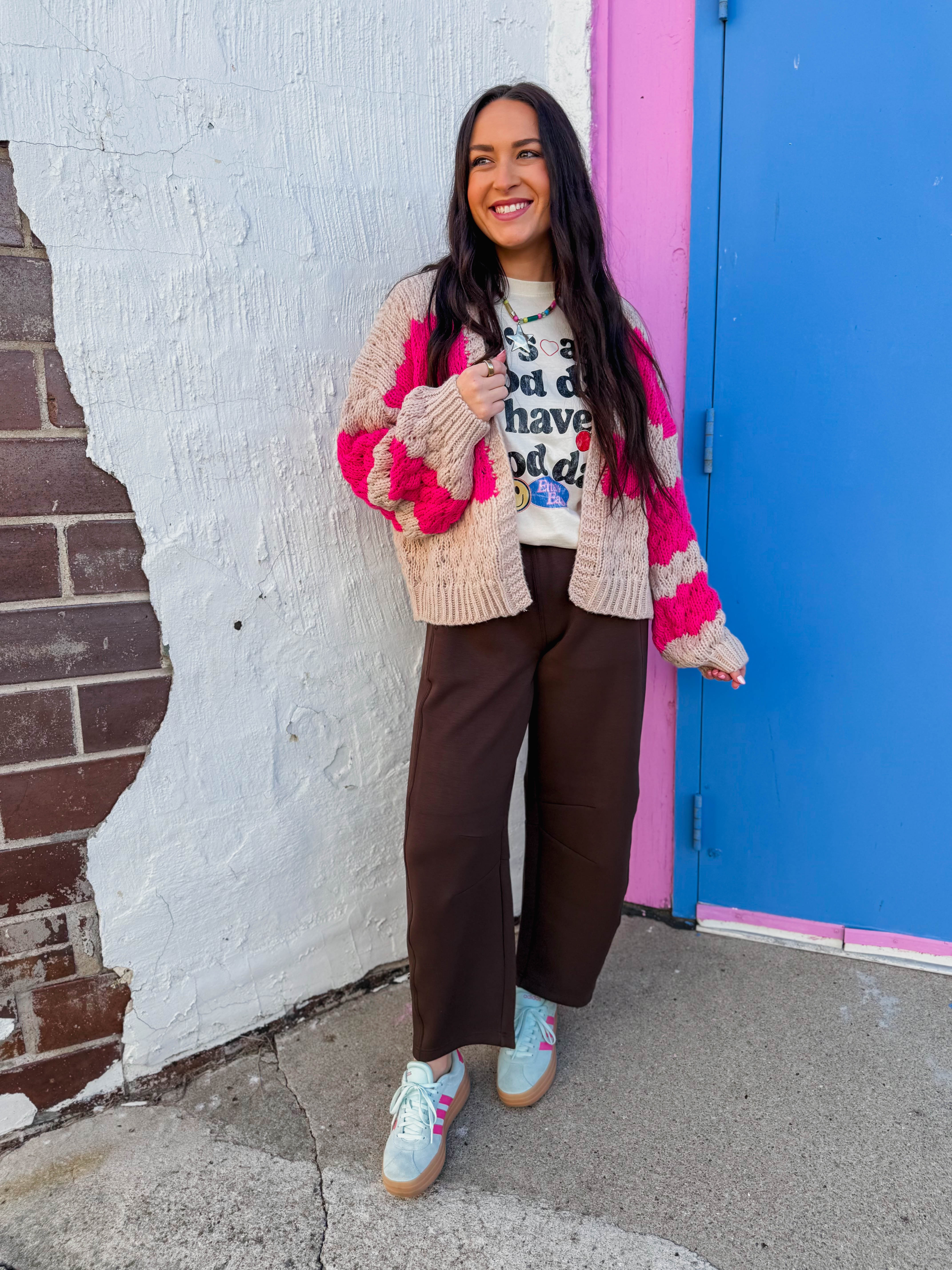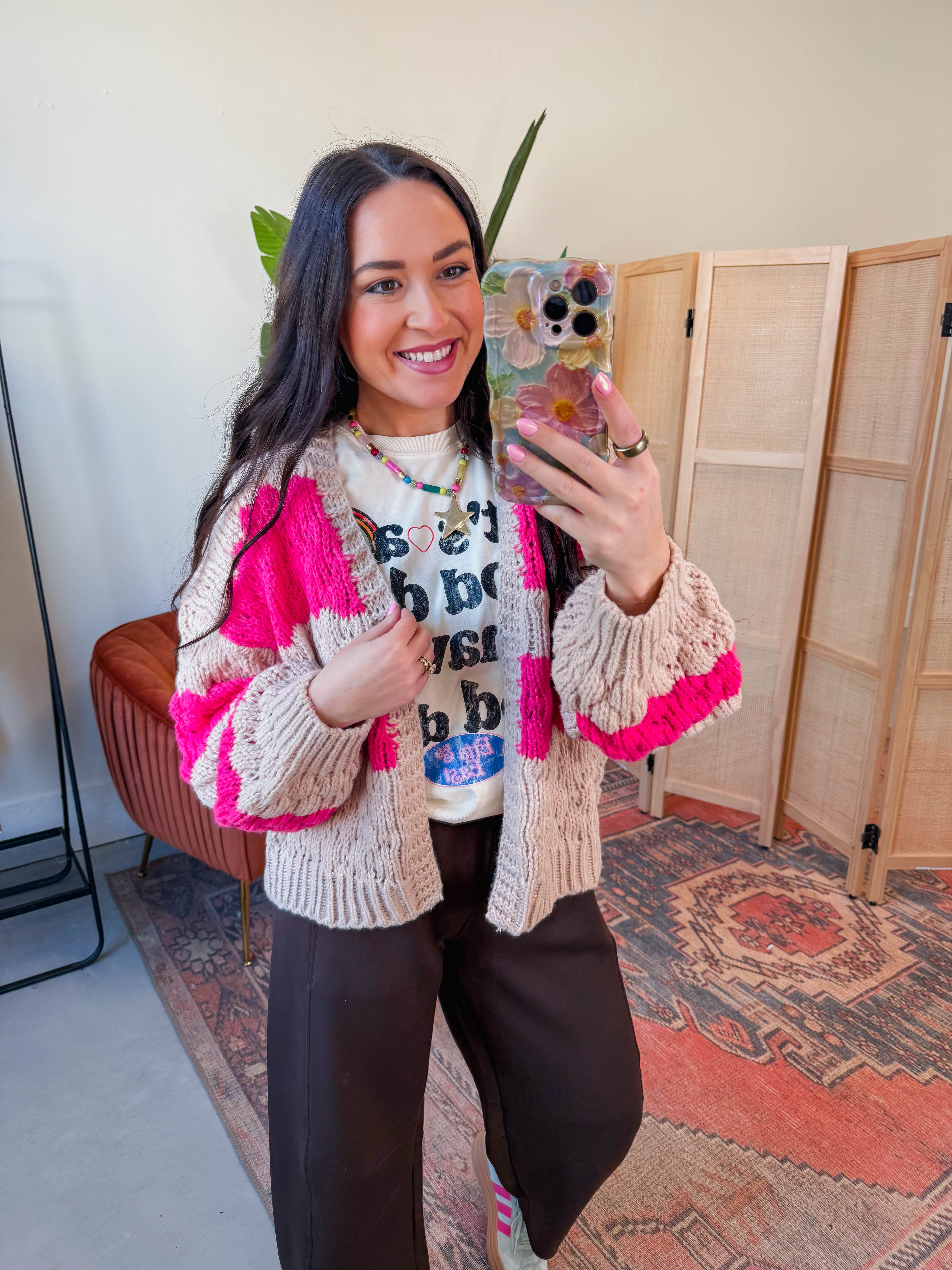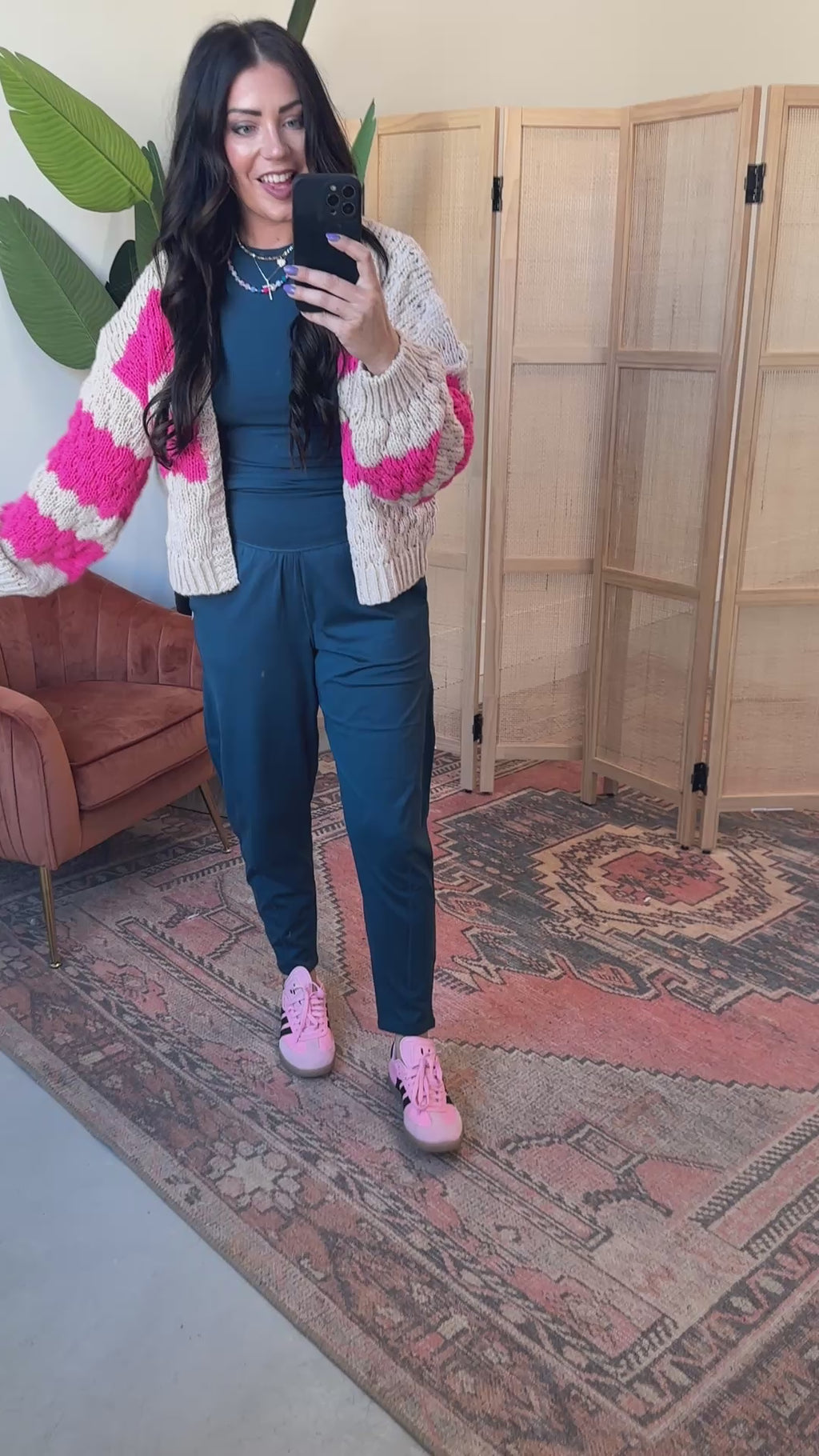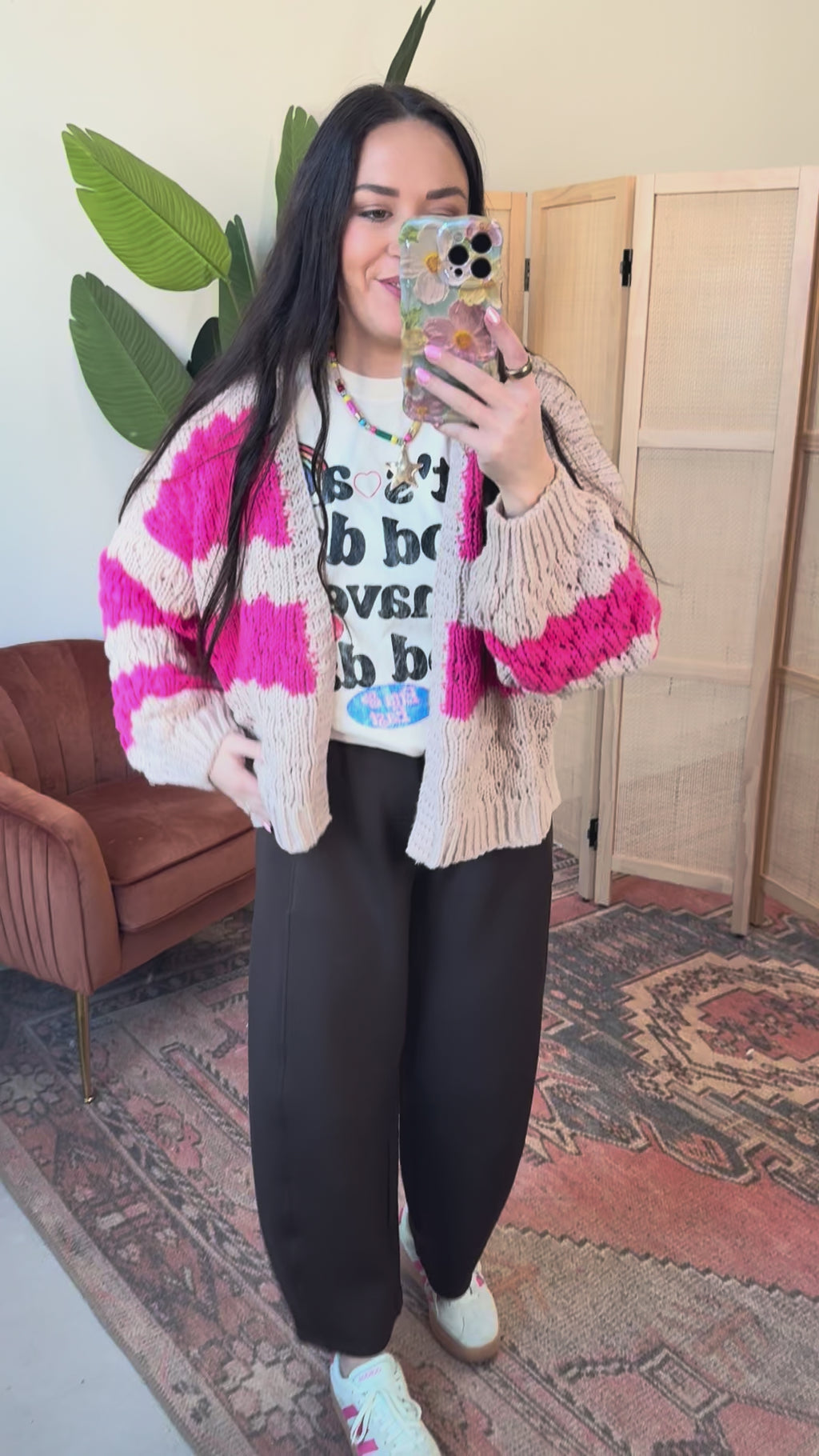 Cozy up in the Lydia Striped Cardigan! This chunky knit features an open front, playful stripes, and ribbed hems for a comfy fit. Perfect for work or weekend fun, it’s easy to dress up or down with long sleeves that keep you warm and stylish.
