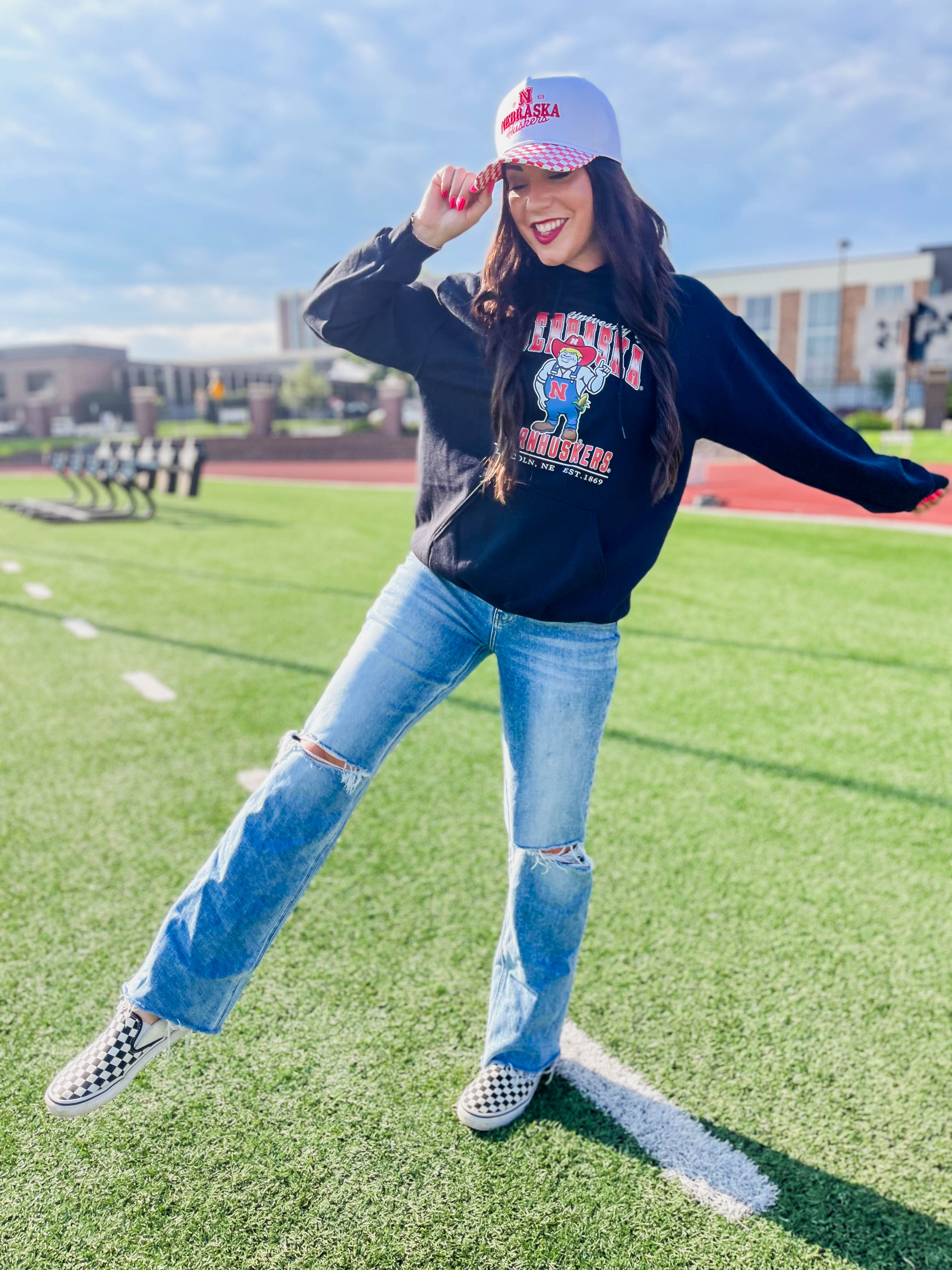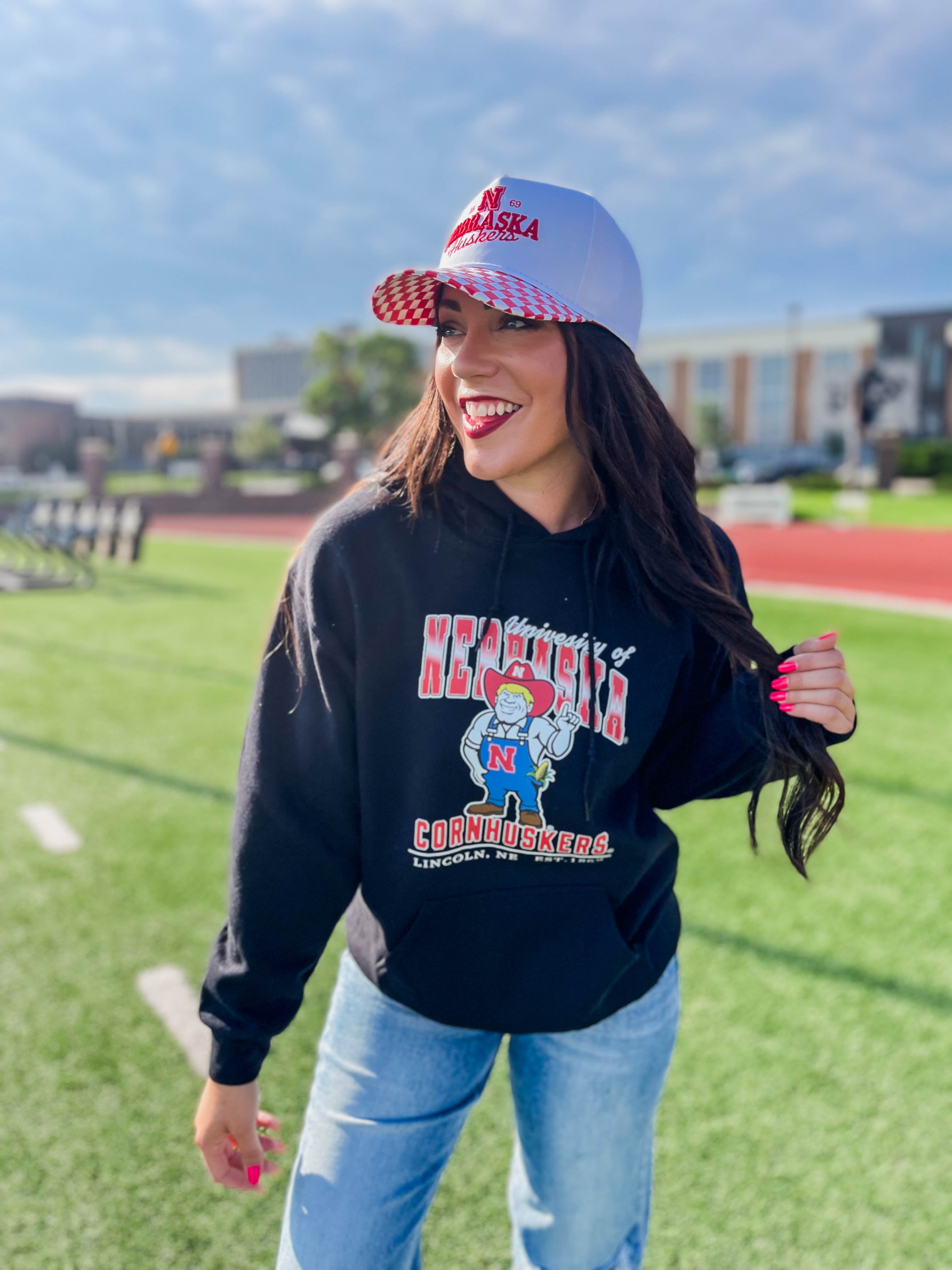 Stay cozy and show your Husker pride with this Nebraska Herbie Hoodie. Featuring a comfy drawstring hoodie, long sleeves, and soft fleece lining, it’s perfect for game days or just chilling every day. Made by Gildan, it offers a unisex fit that’s cute and comfy all around.