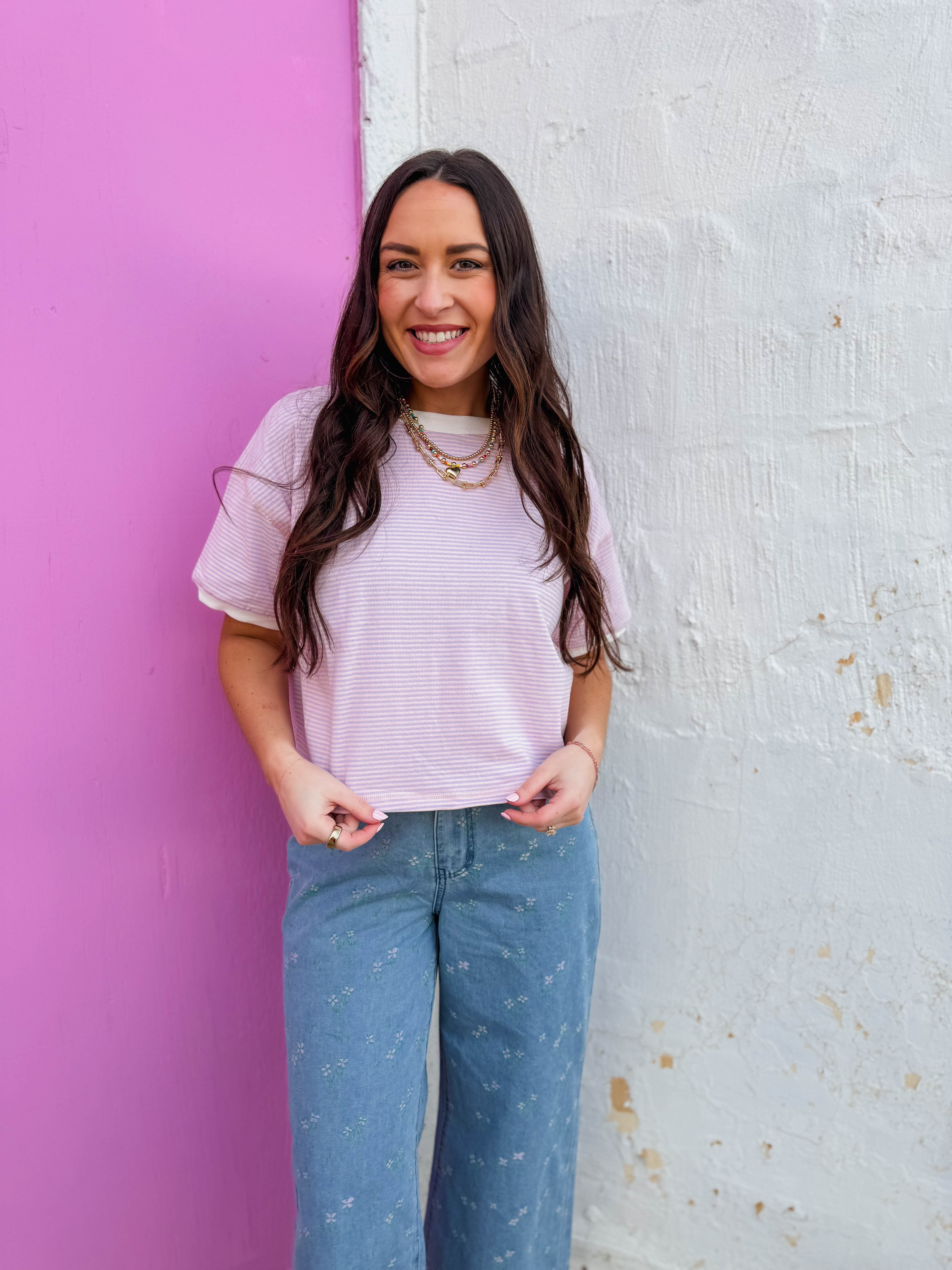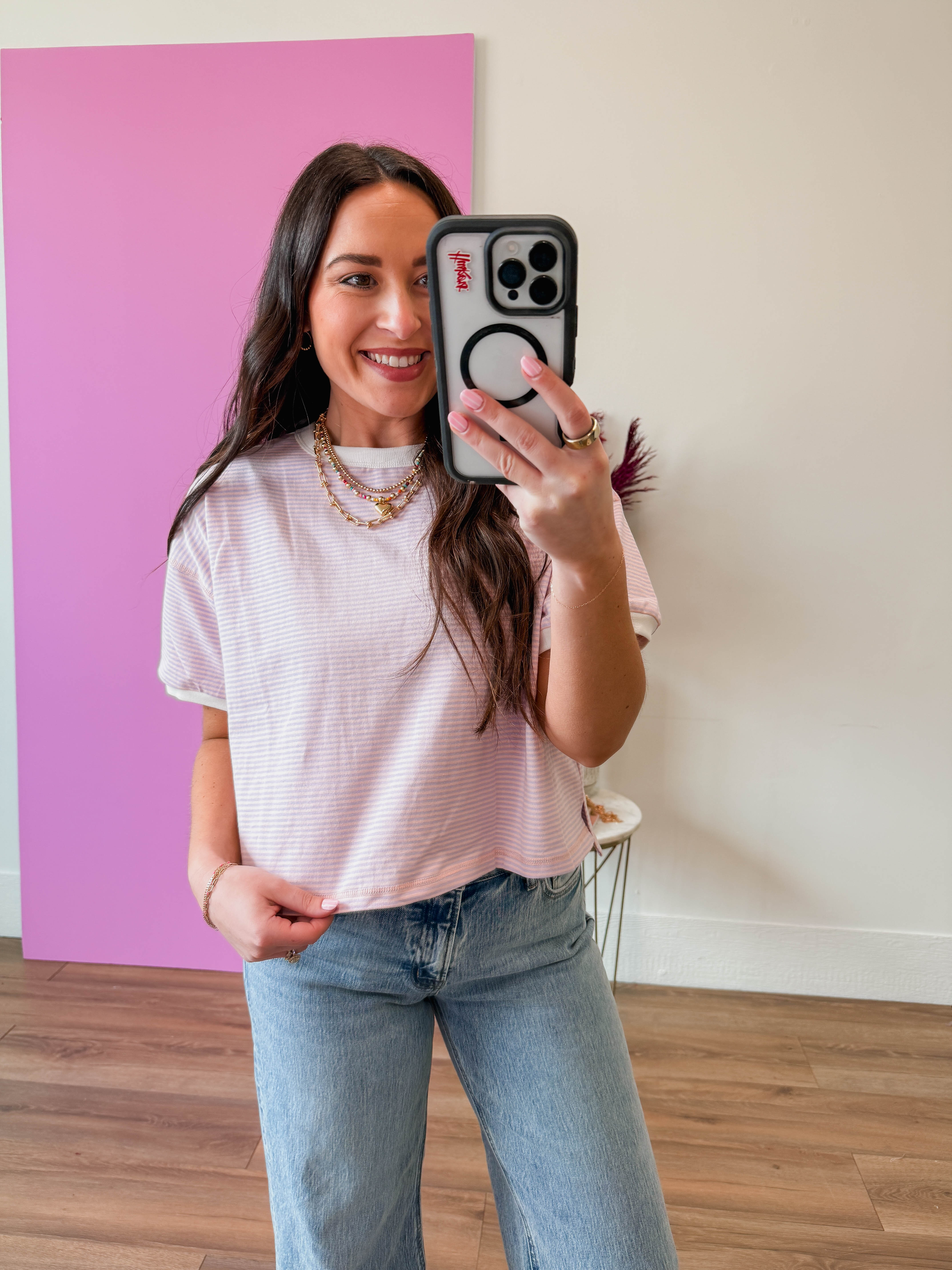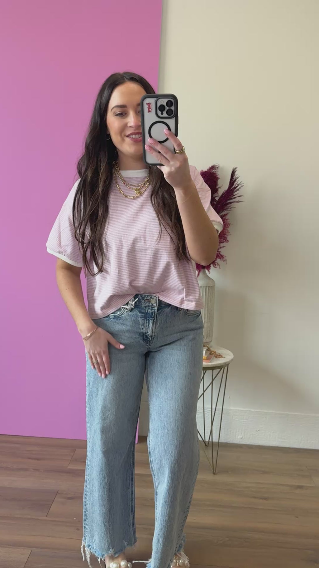 Rock a striped tee that brings instant personality to your warm-weather rotation. With bold lines and a vibrant pop of color, this casual essential pairs effortlessly with everything from shorts to linen pants. Perfect for spring and summer styling, it's the kind of laid-back piece that feels cool without trying.