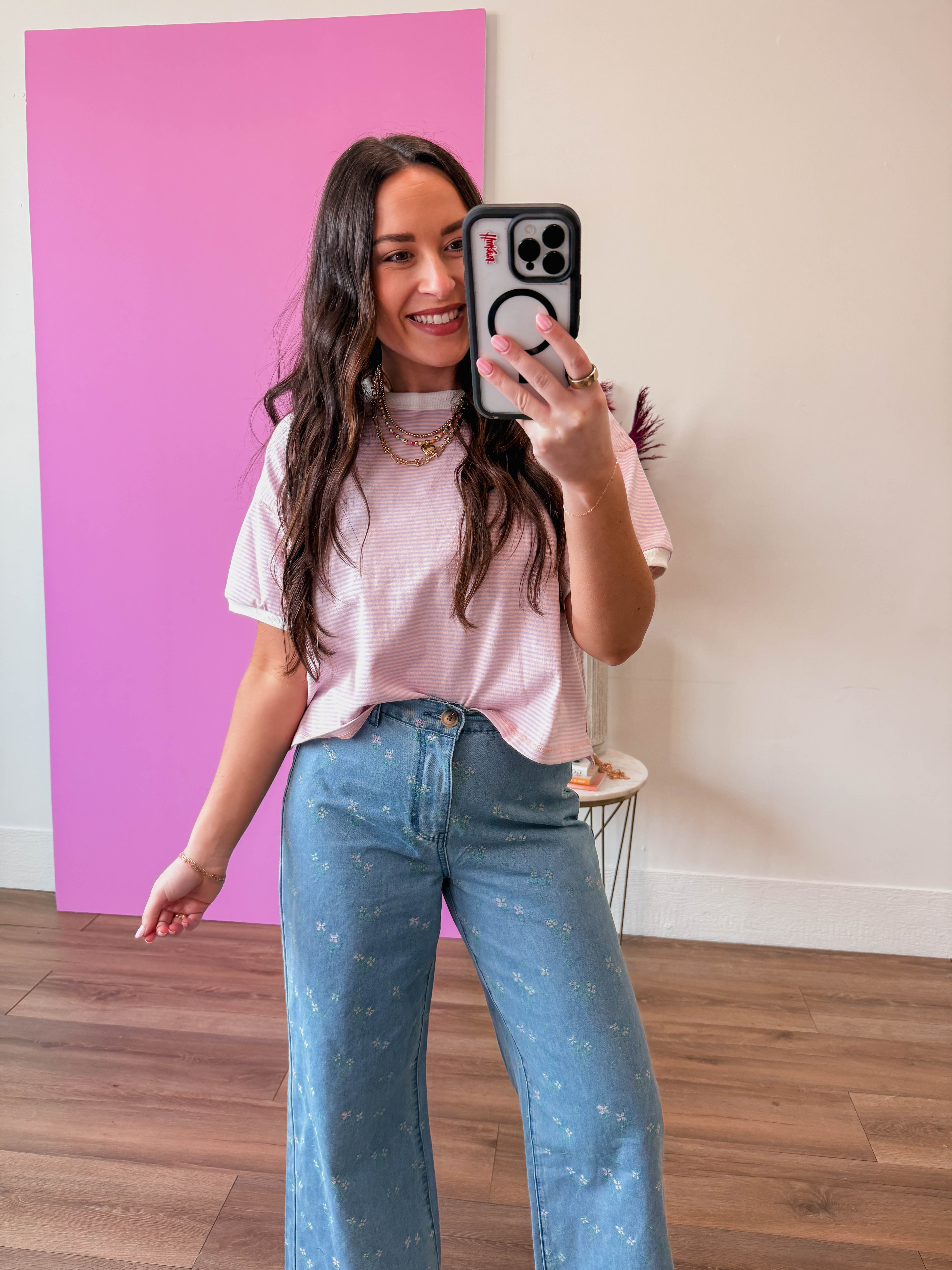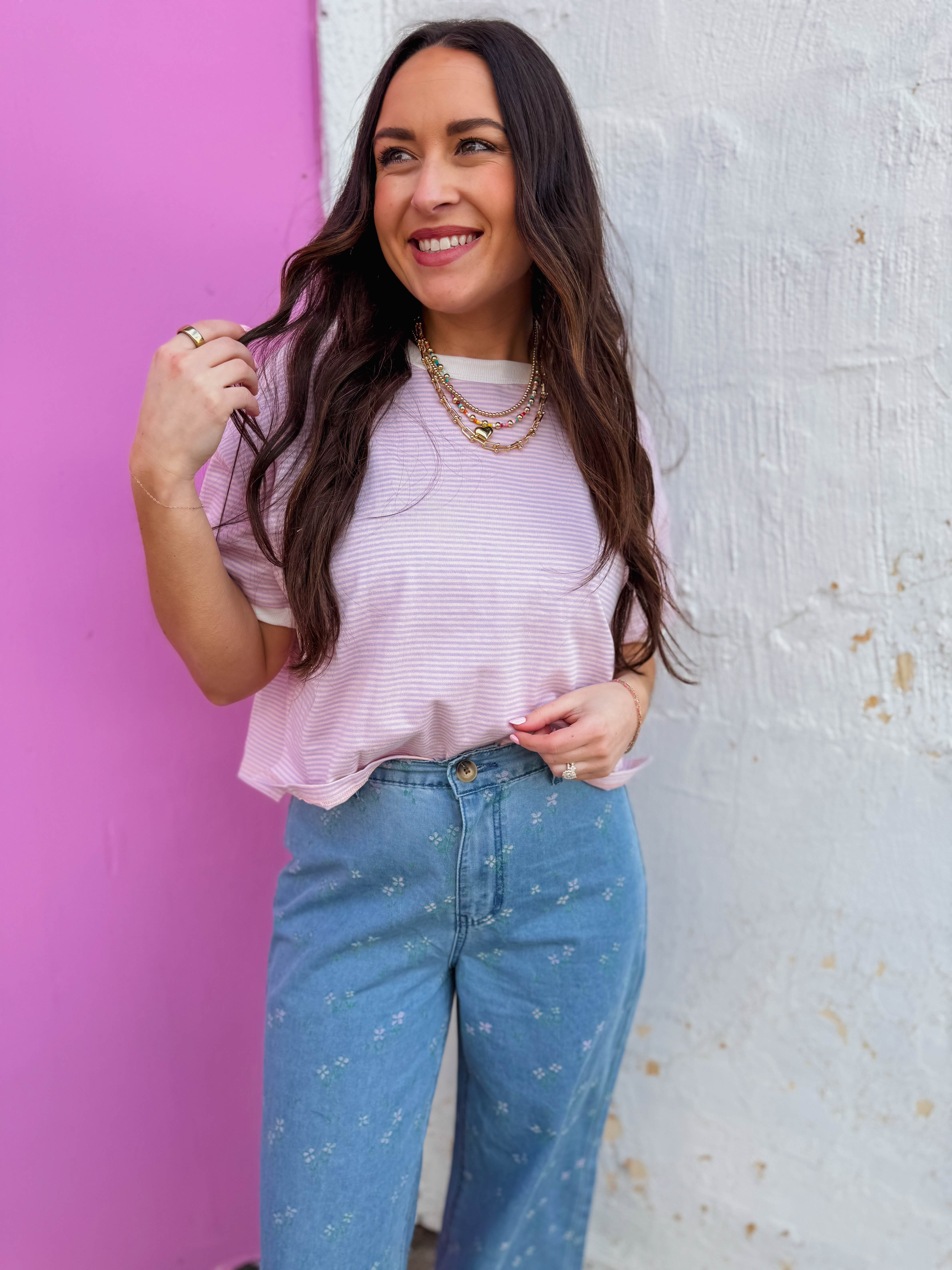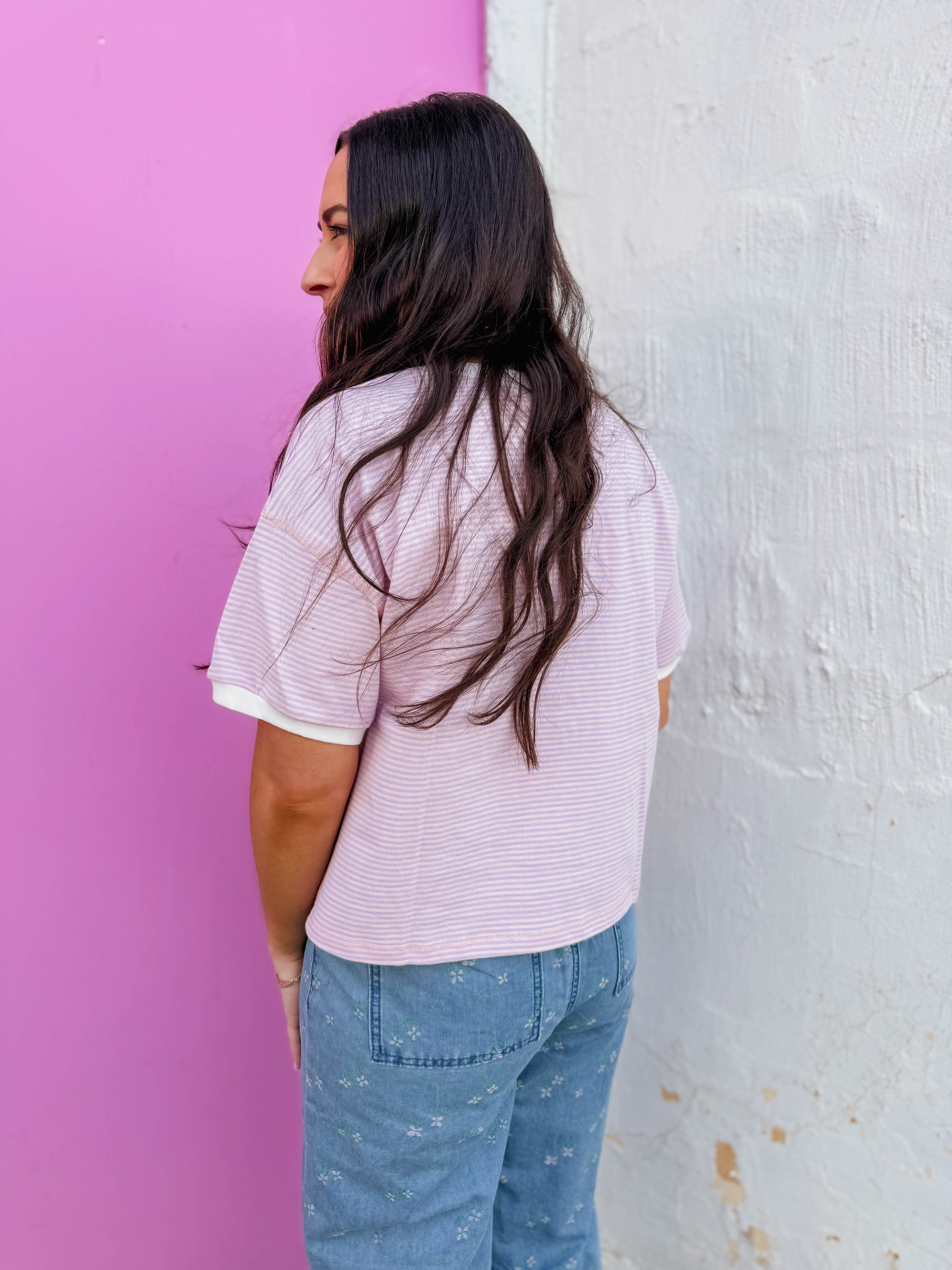 Rock a striped tee that brings instant personality to your warm-weather rotation. With bold lines and a vibrant pop of color, this casual essential pairs effortlessly with everything from shorts to linen pants. Perfect for spring and summer styling, it's the kind of laid-back piece that feels cool without trying.