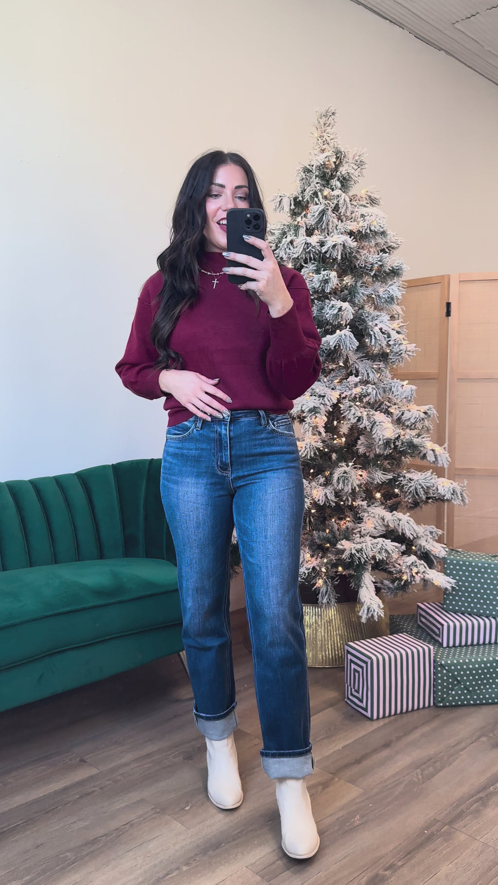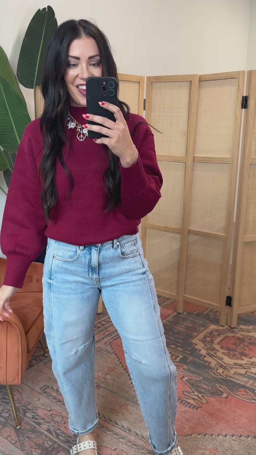 The Karina Sweater is your go-to for effortless style—from workdays to weekends. Featuring a cozy mock neckline, long sleeves, and trendy exposed seams, it’s buttery soft and super versatile. Slip it on and stay comfy all day!