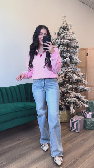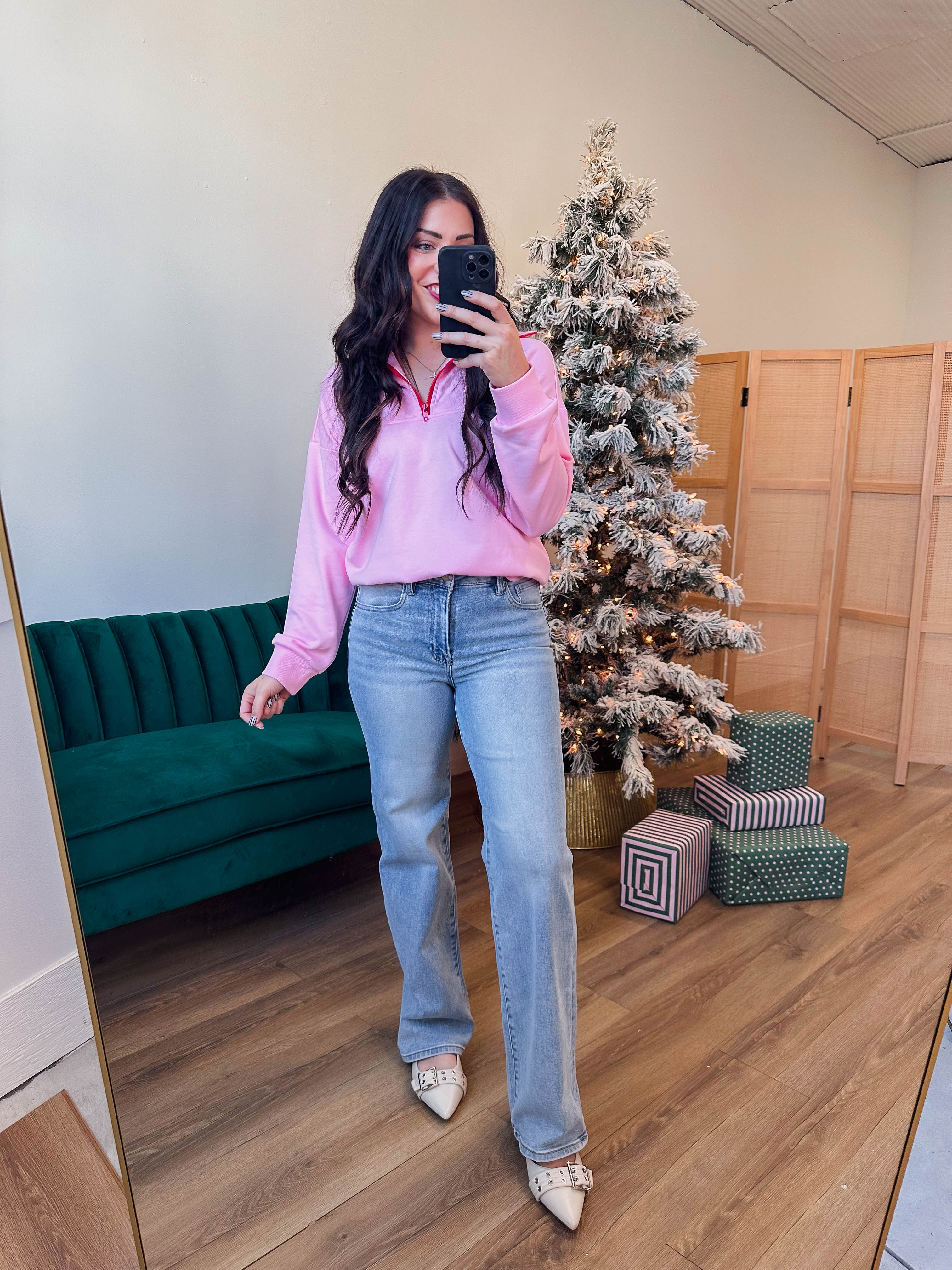 Layer up with this charming quarter zip pullover featuring a crisp collared neckline and long sleeves. The contrast zipper adds a fun pop of color that makes it perfect for year-round styling—dress it up or down for effortless versatility. A playful essential that works as hard as you do.