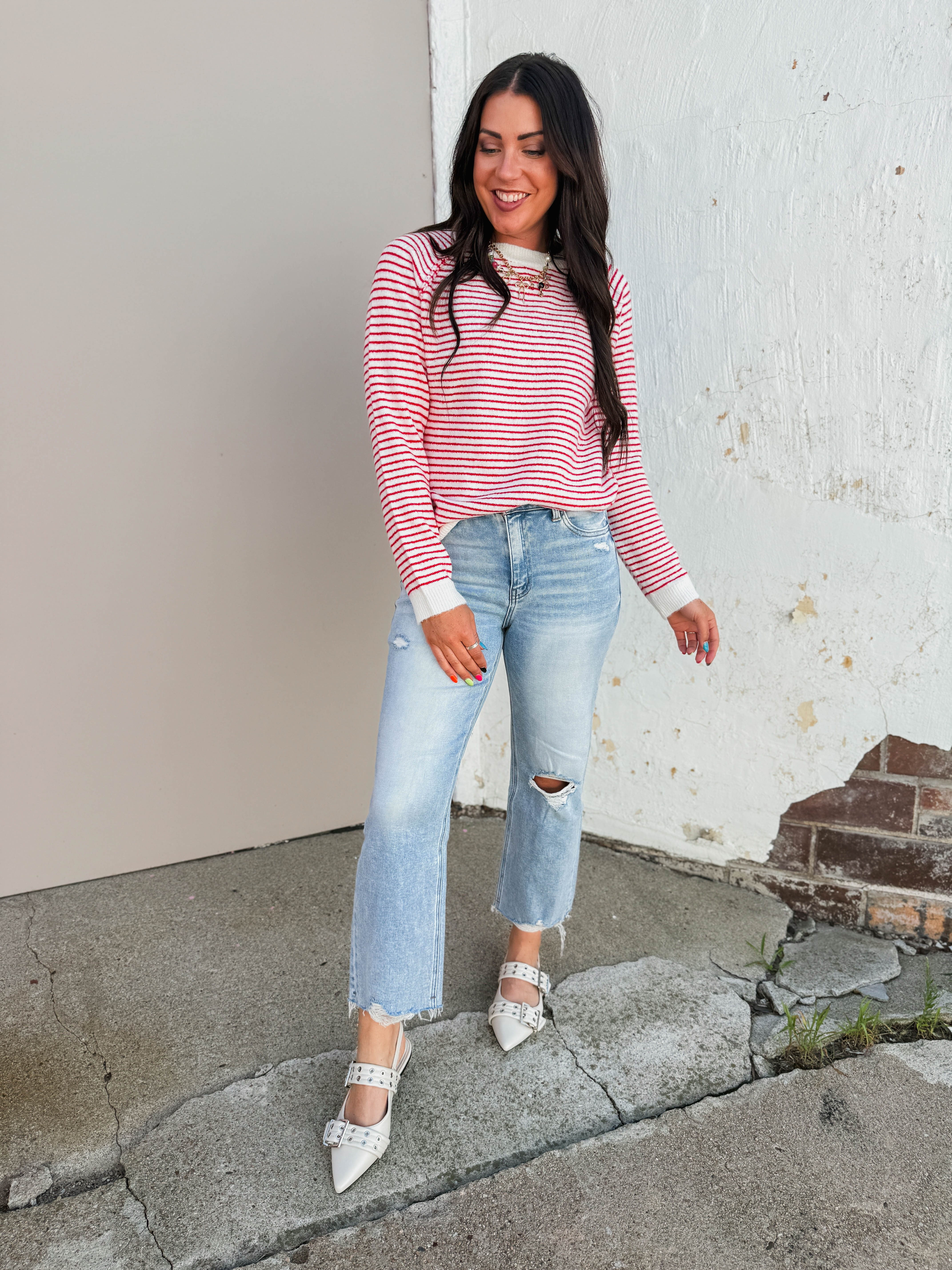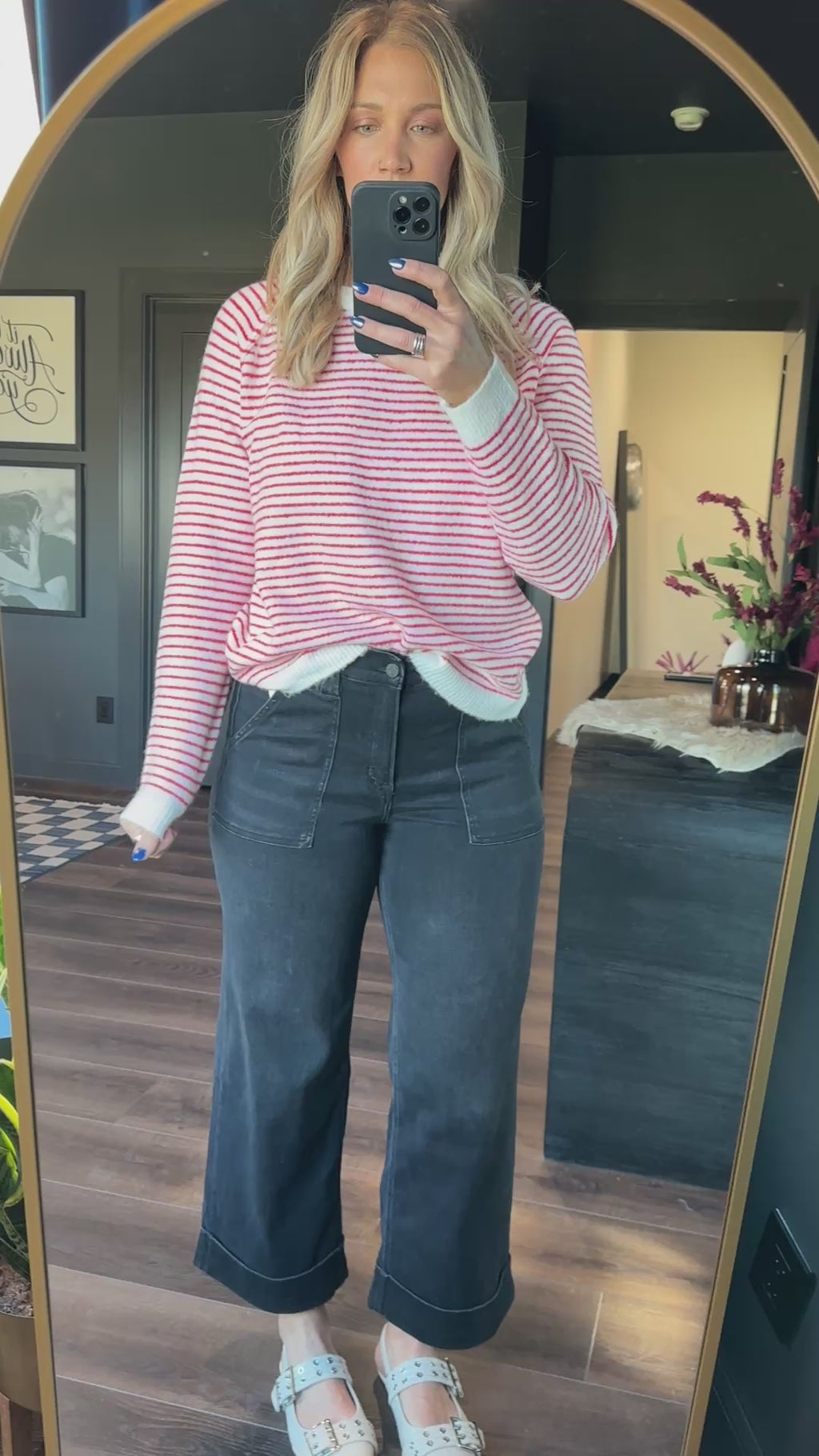The Rochelle Striped Sweater adds a fun pop of color to your look with its crew neckline and long raglan sleeves. Perfect for work to weekend, this color-accented pullover keeps you cozy and stylish all day long.