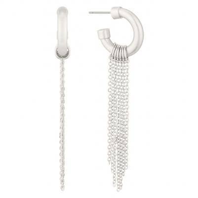 Silver Huggie Hoop with Gold Chain Tassel 2" Earring