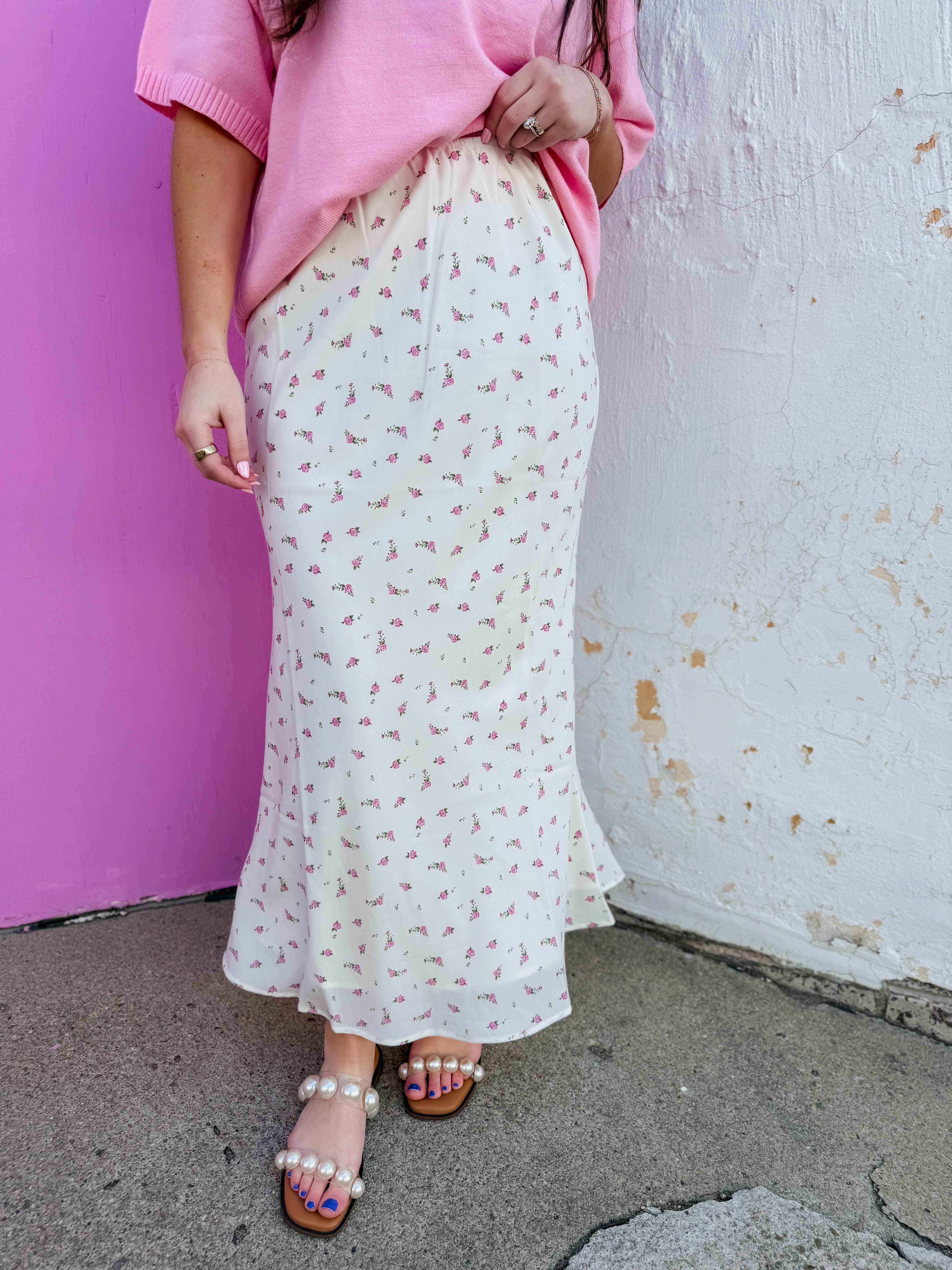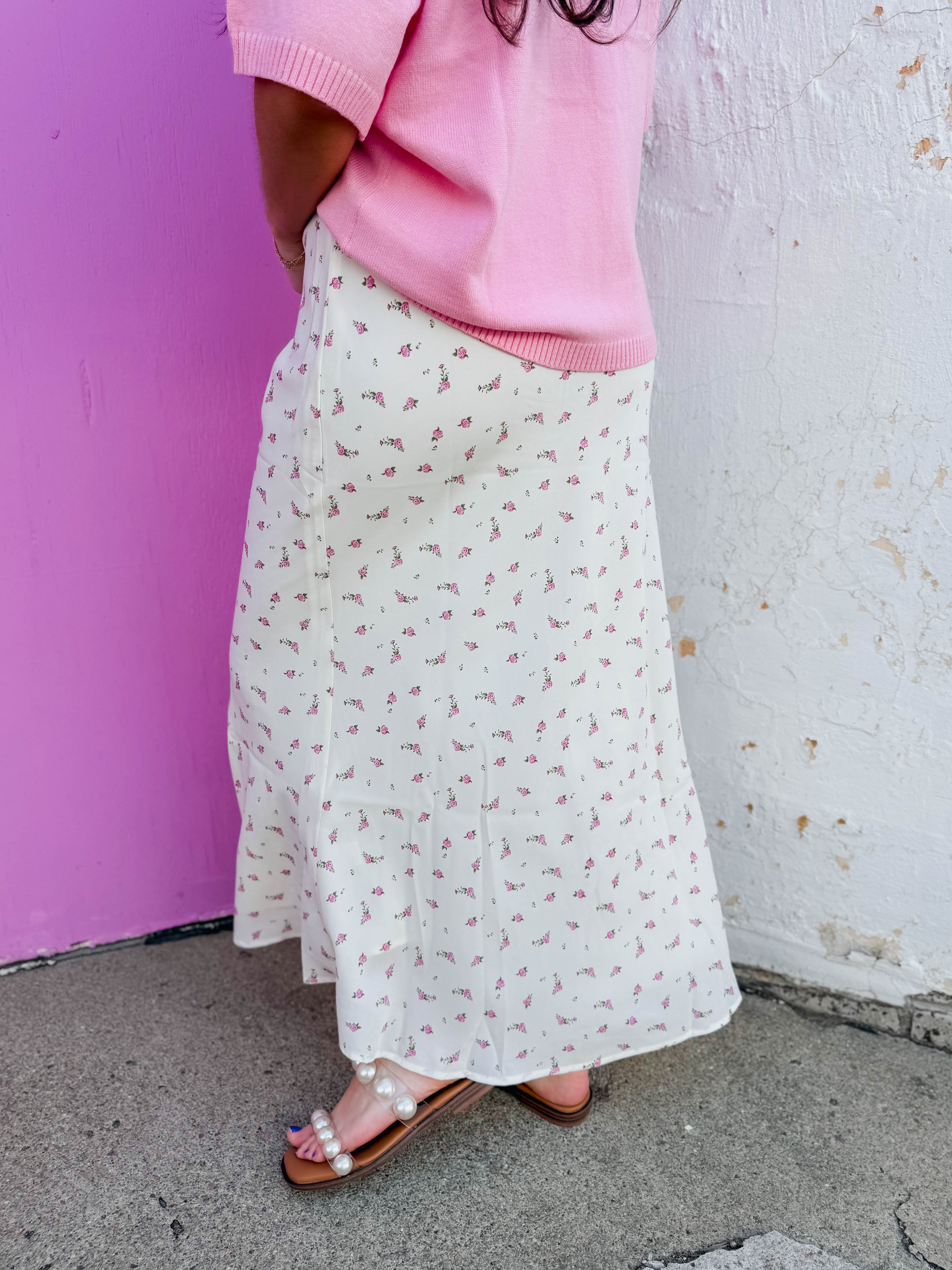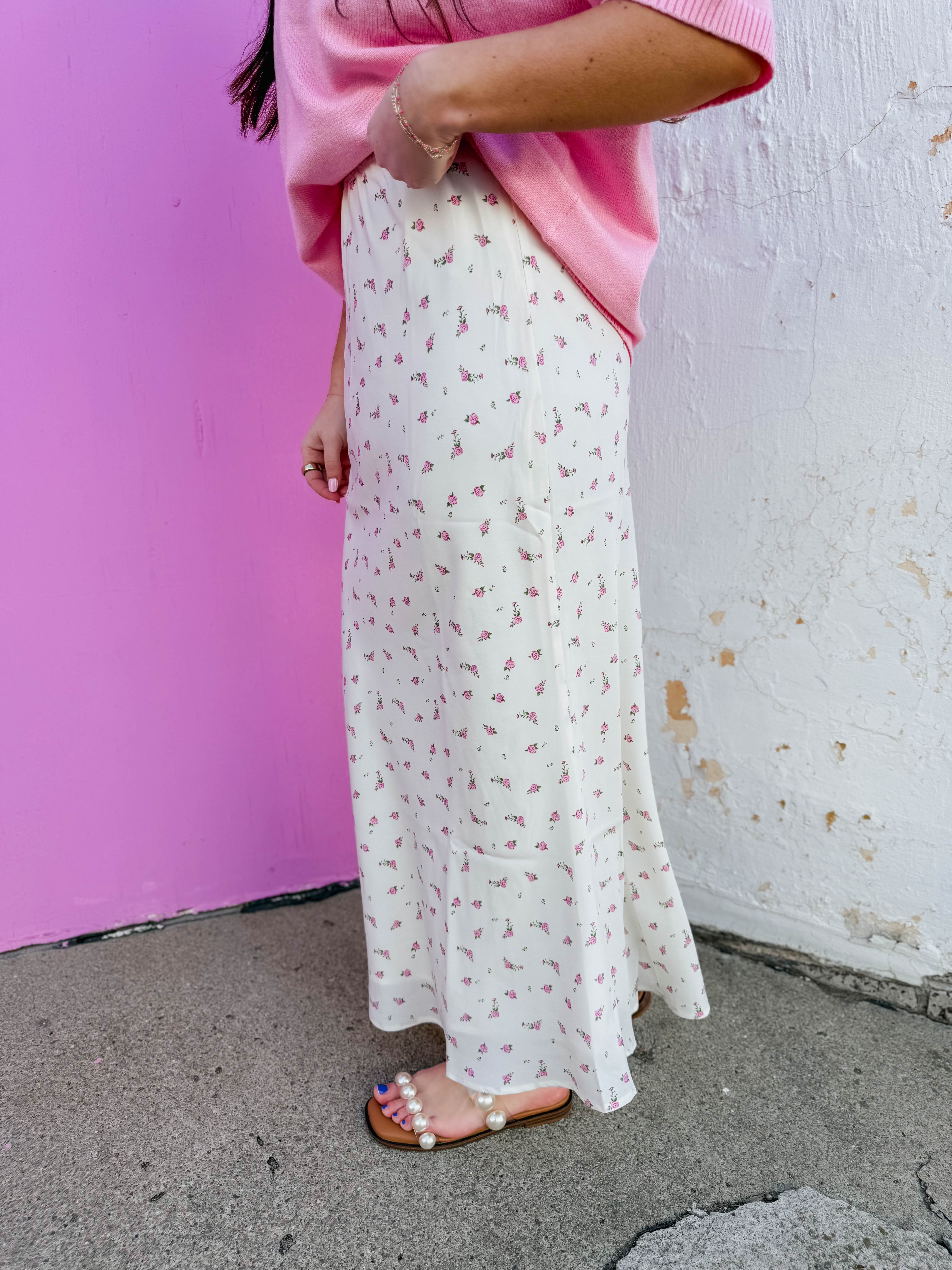 Grace Floral Midi Skirt-Off White