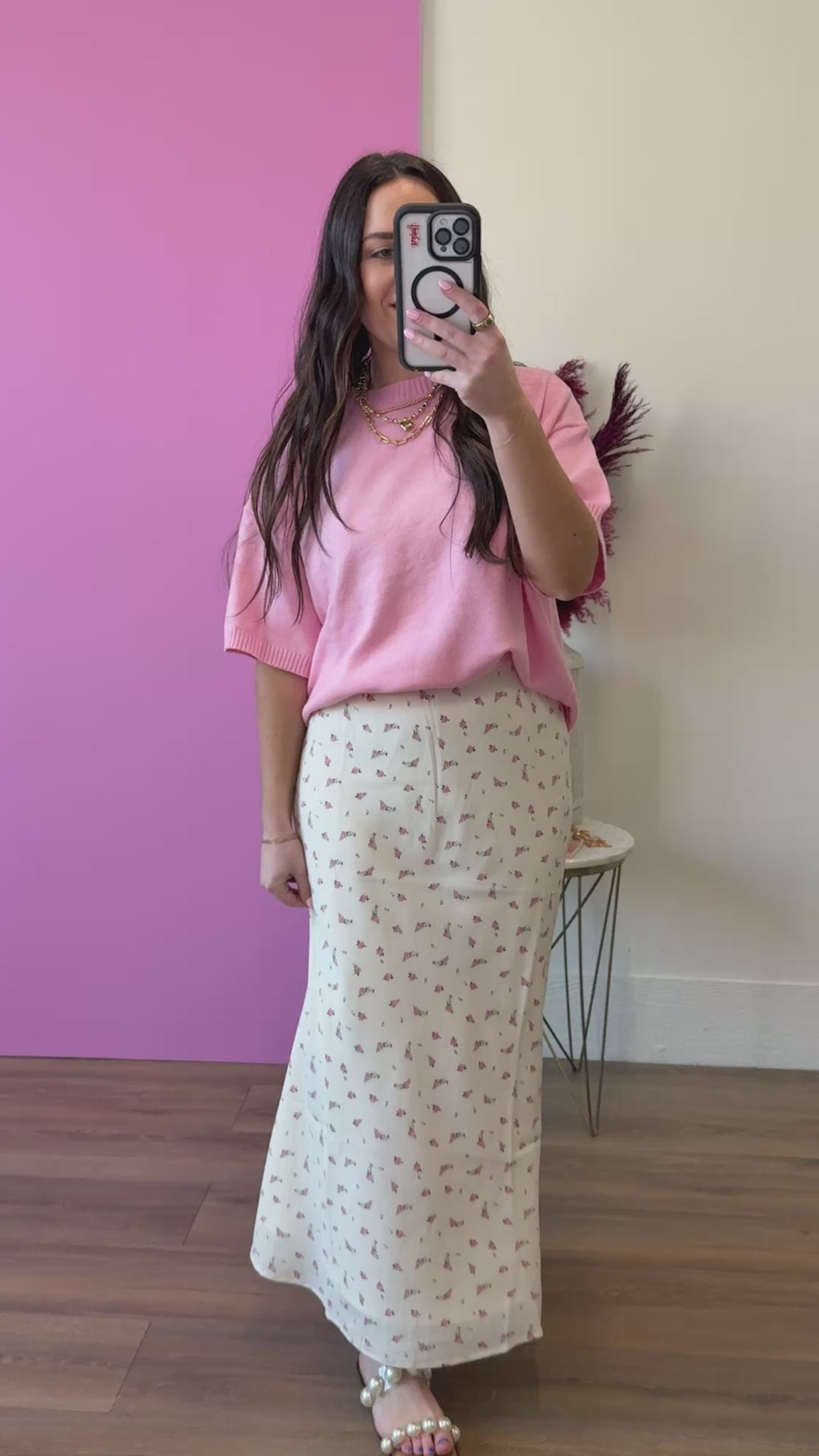 Twirl in this charming midi skirt featuring a delicate ditsy floral pattern that captures effortless romance. Crafted from smooth satin for a luxe feel, it's finished with adorable lace trim that adds just the right touch of whimsy. Perfect for days when you want to feel graceful and carefree.