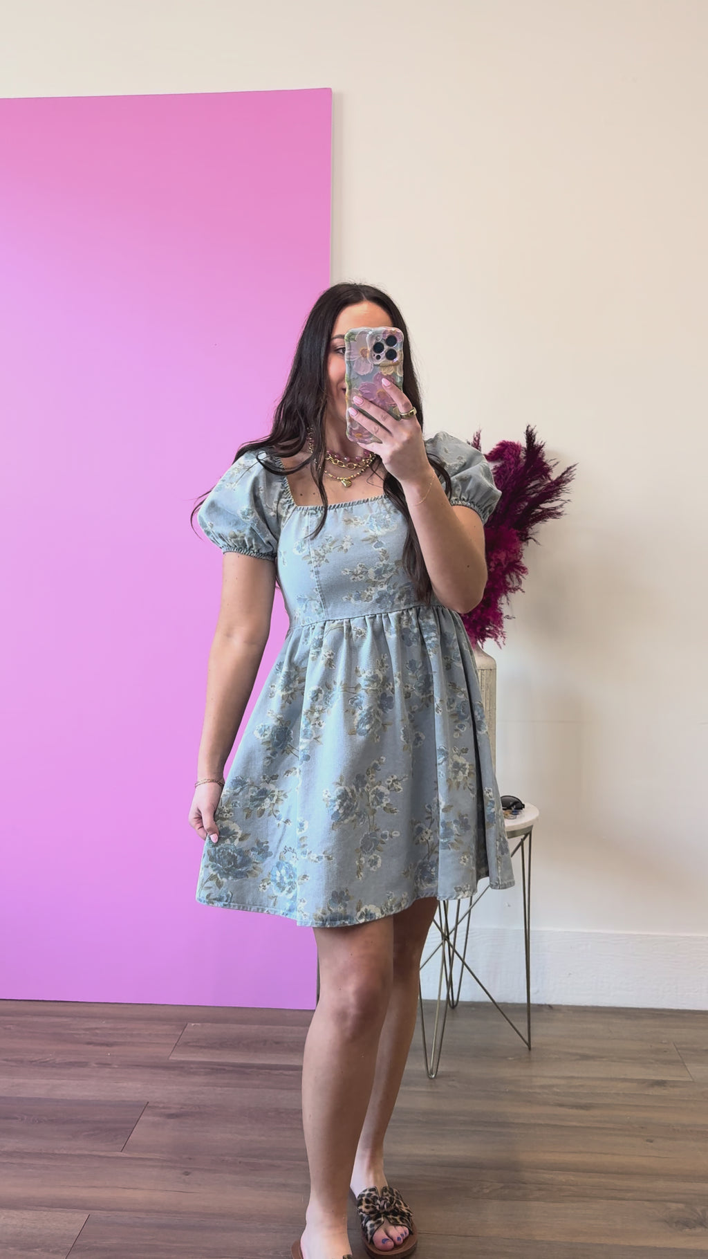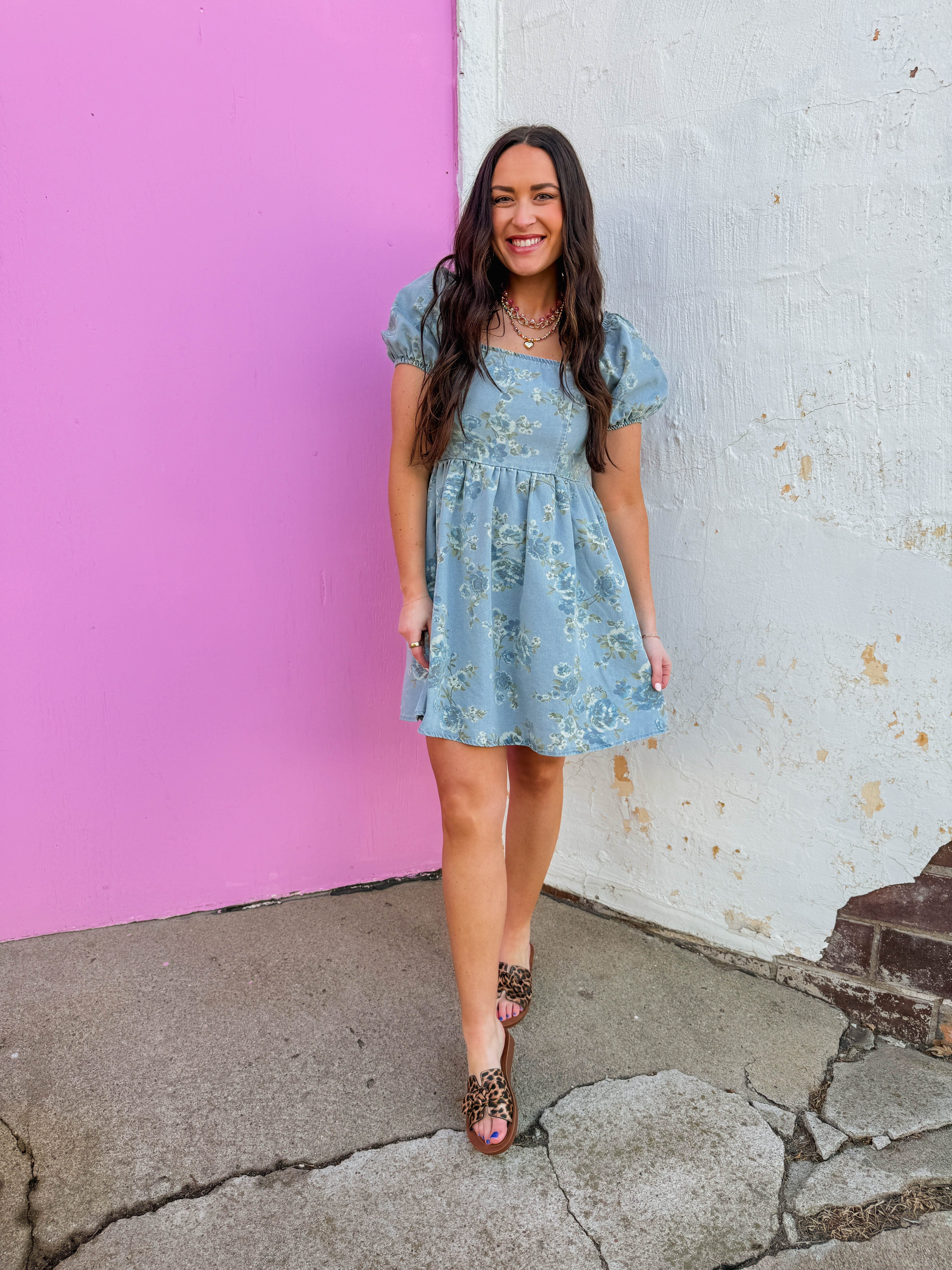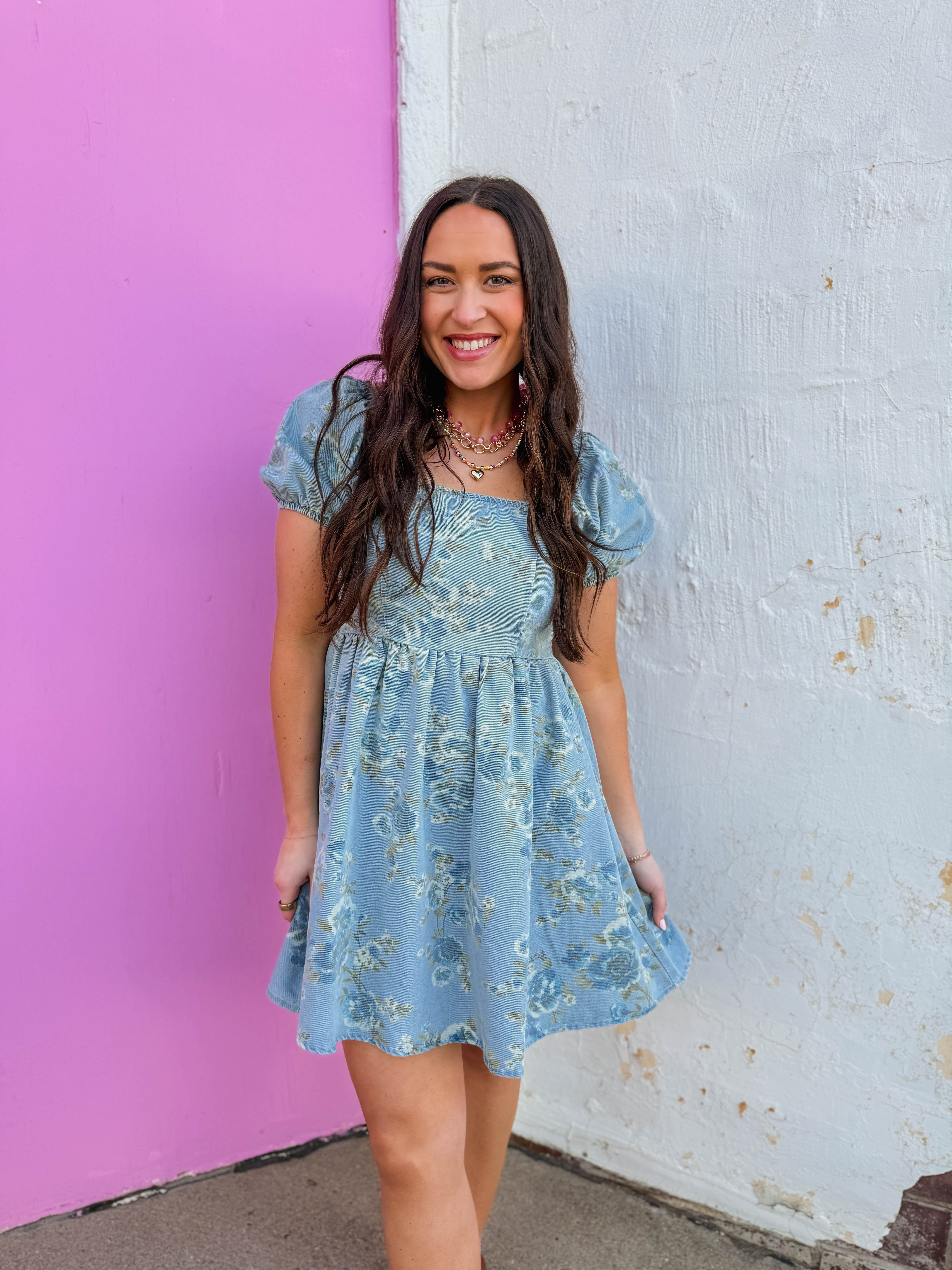 Turn heads at summer events in this charming floral denim mini dress. The delicate print adds a playful touch perfect for concerts, weddings, and celebrations, while the thoughtfully designed silhouette flatters your figure without sacrificing comfort. Lightweight and effortlessly stylish, it's your go-to piece for making memories in style.