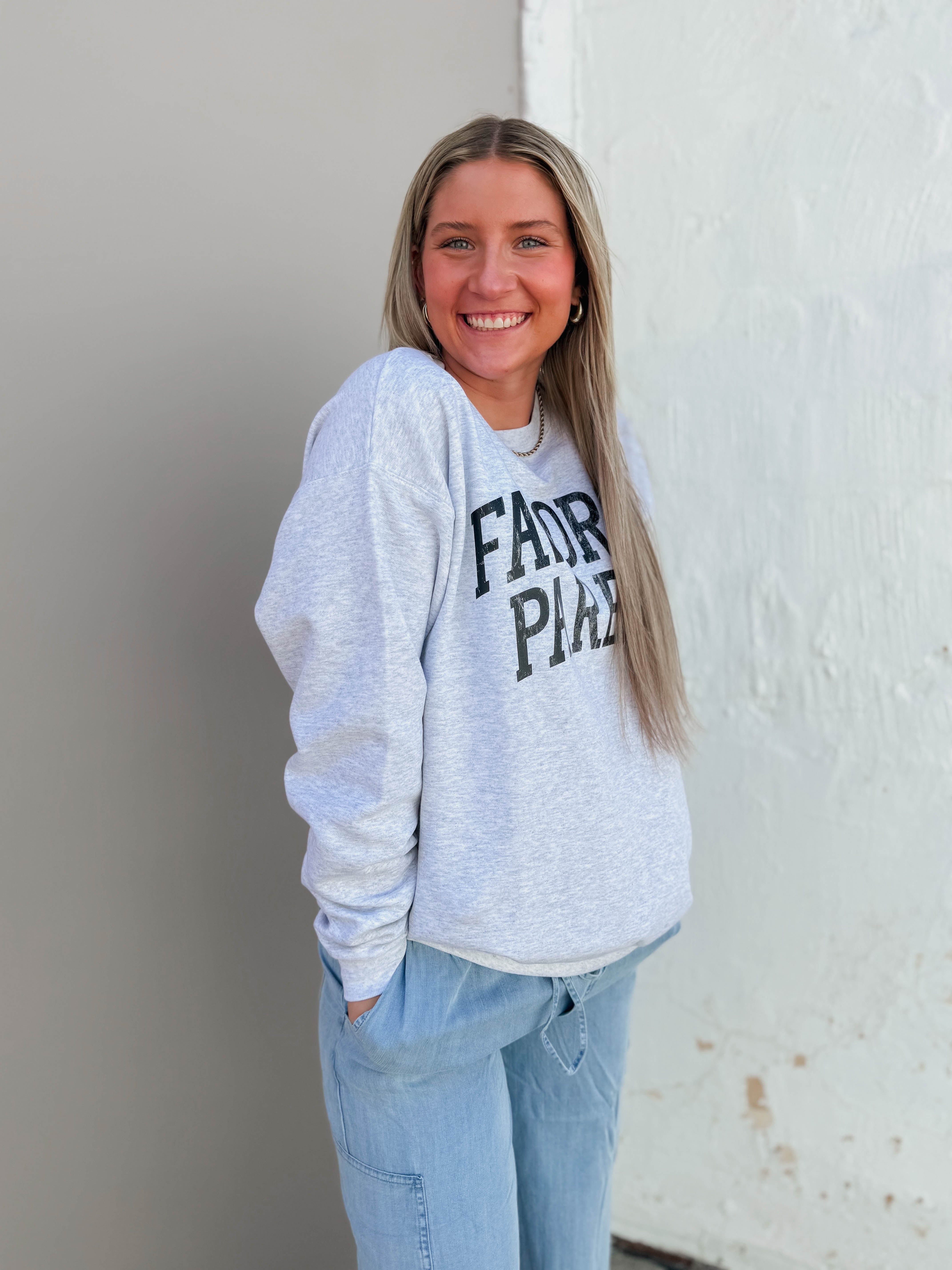 RESTOCK! Stay cozy and cute in the Favorite Parent Crewneck! This ash grey Hanes sweatshirt features a fun graphic, a comfy crew neckline, and fleece lining for extra warmth. Perfect for pairing with denim, leggings, or bikers, it’s a playful must-have for any casual day.