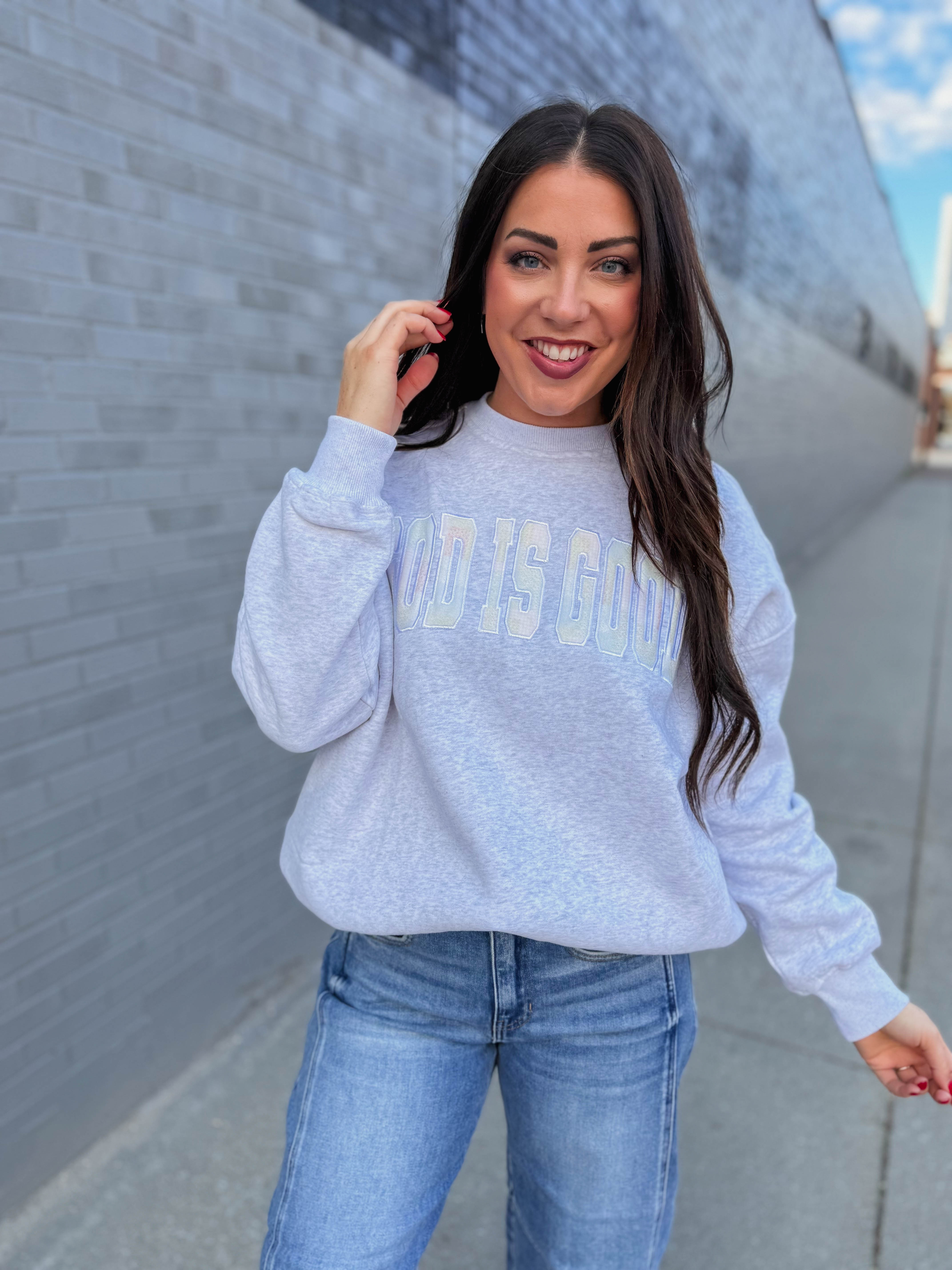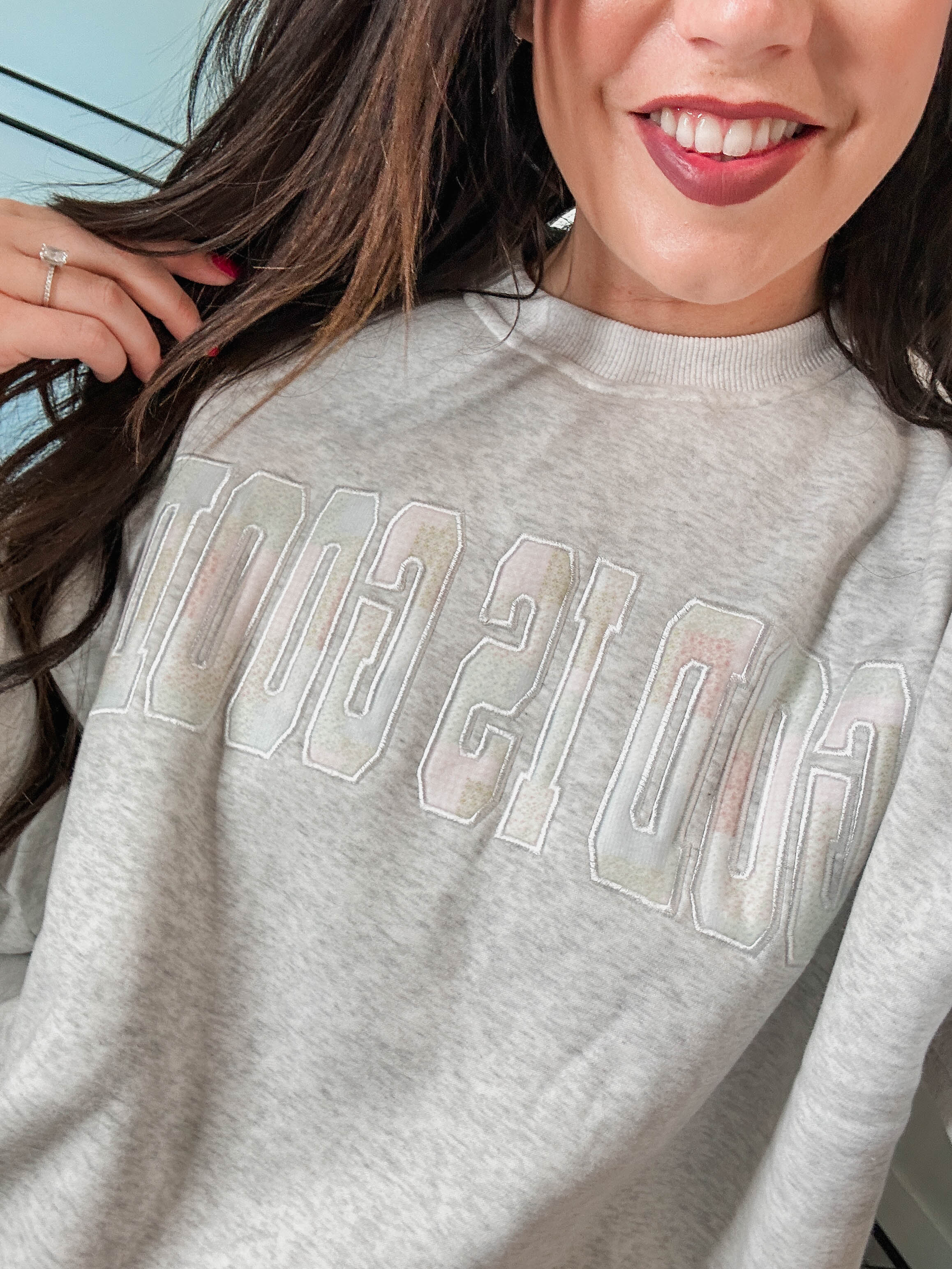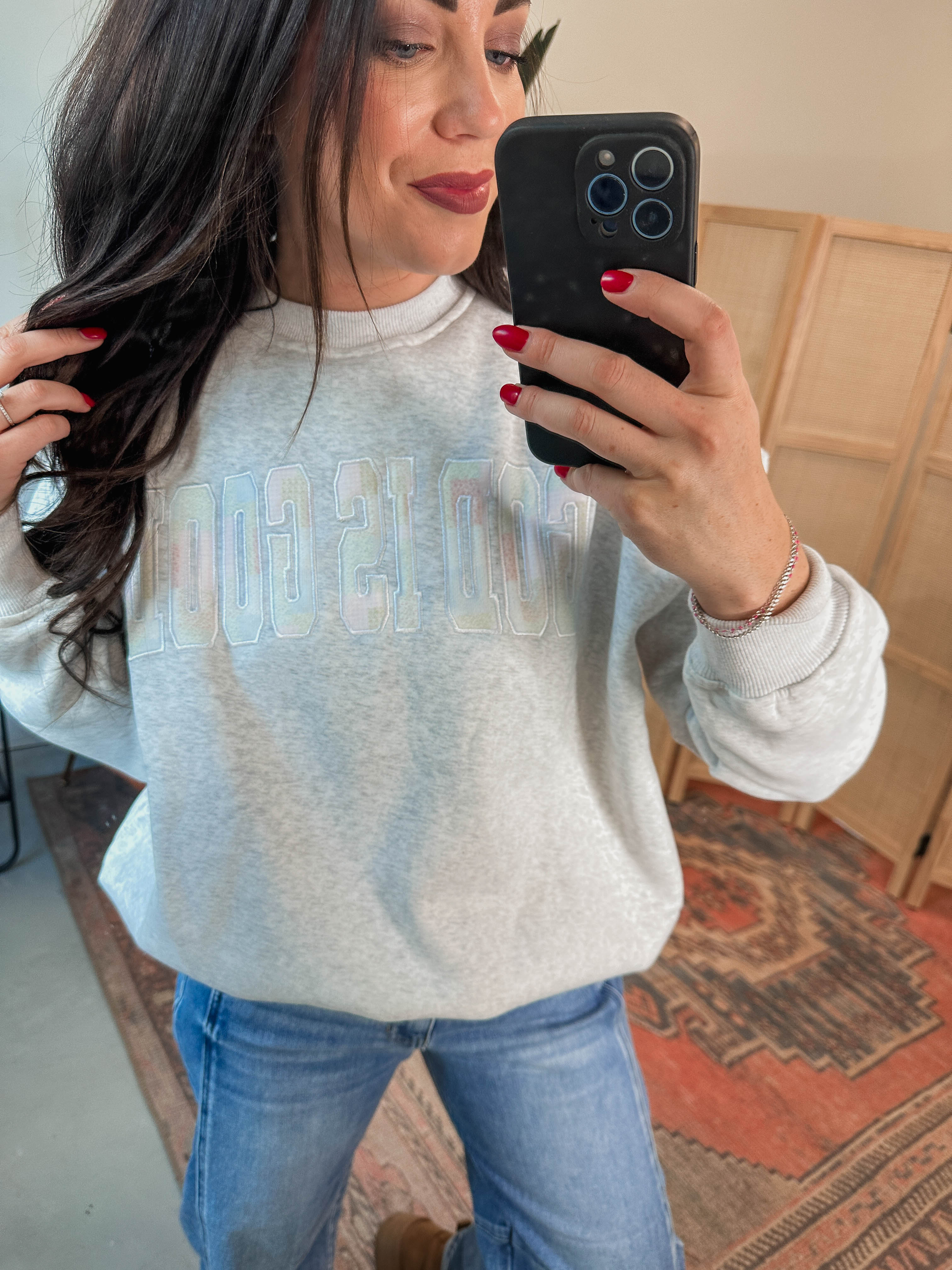 Spread good vibes in this cozy crew sweatshirt featuring a quilted embroidery design that says it all. The relaxed fit keeps things comfy and casual, while long sleeves and a classic crew neckline make it perfect for layering through any season. Whether you're running errands or hanging with friends, this graphic sweatshirt brings a little positivity to your everyday look.
