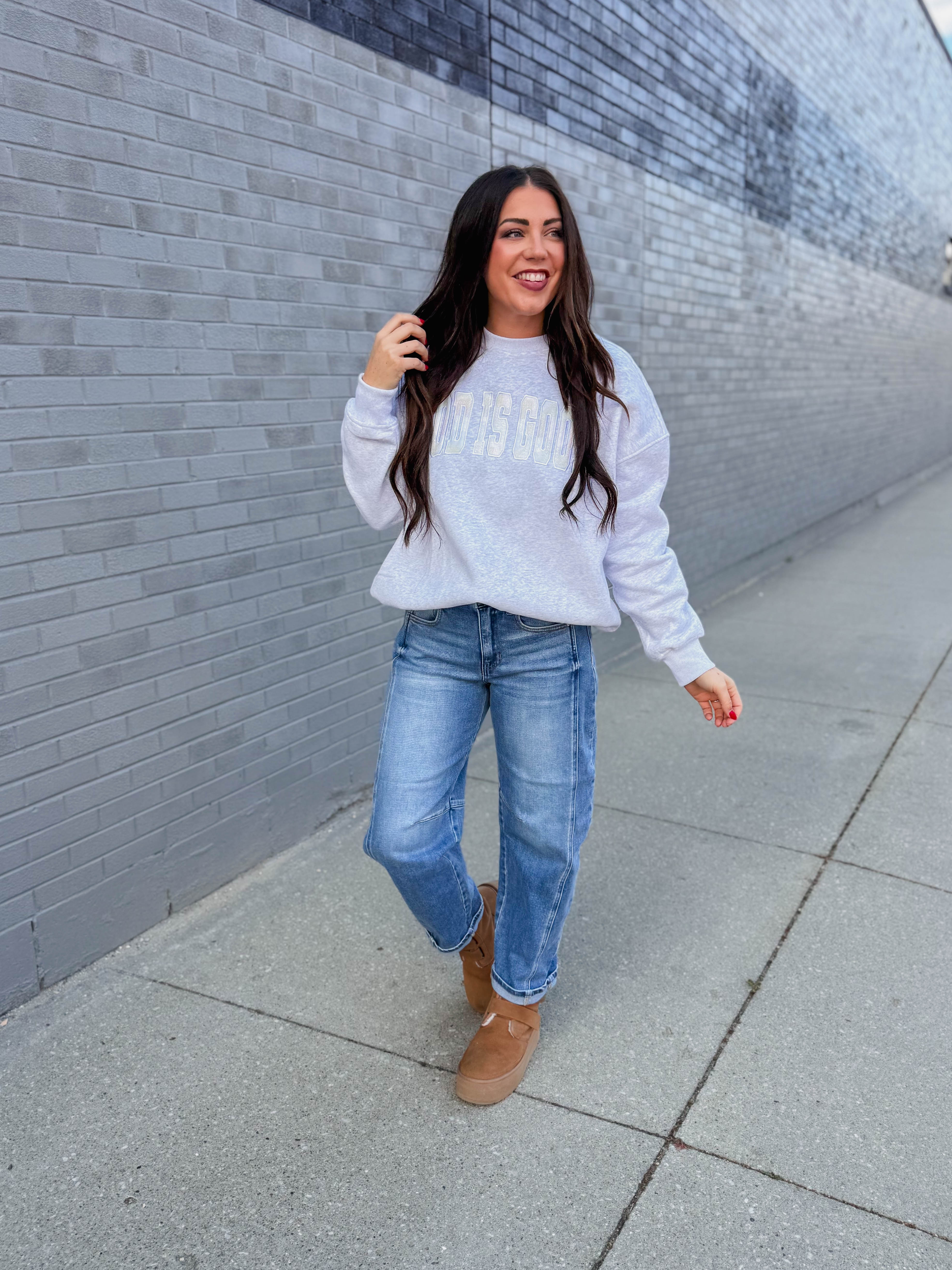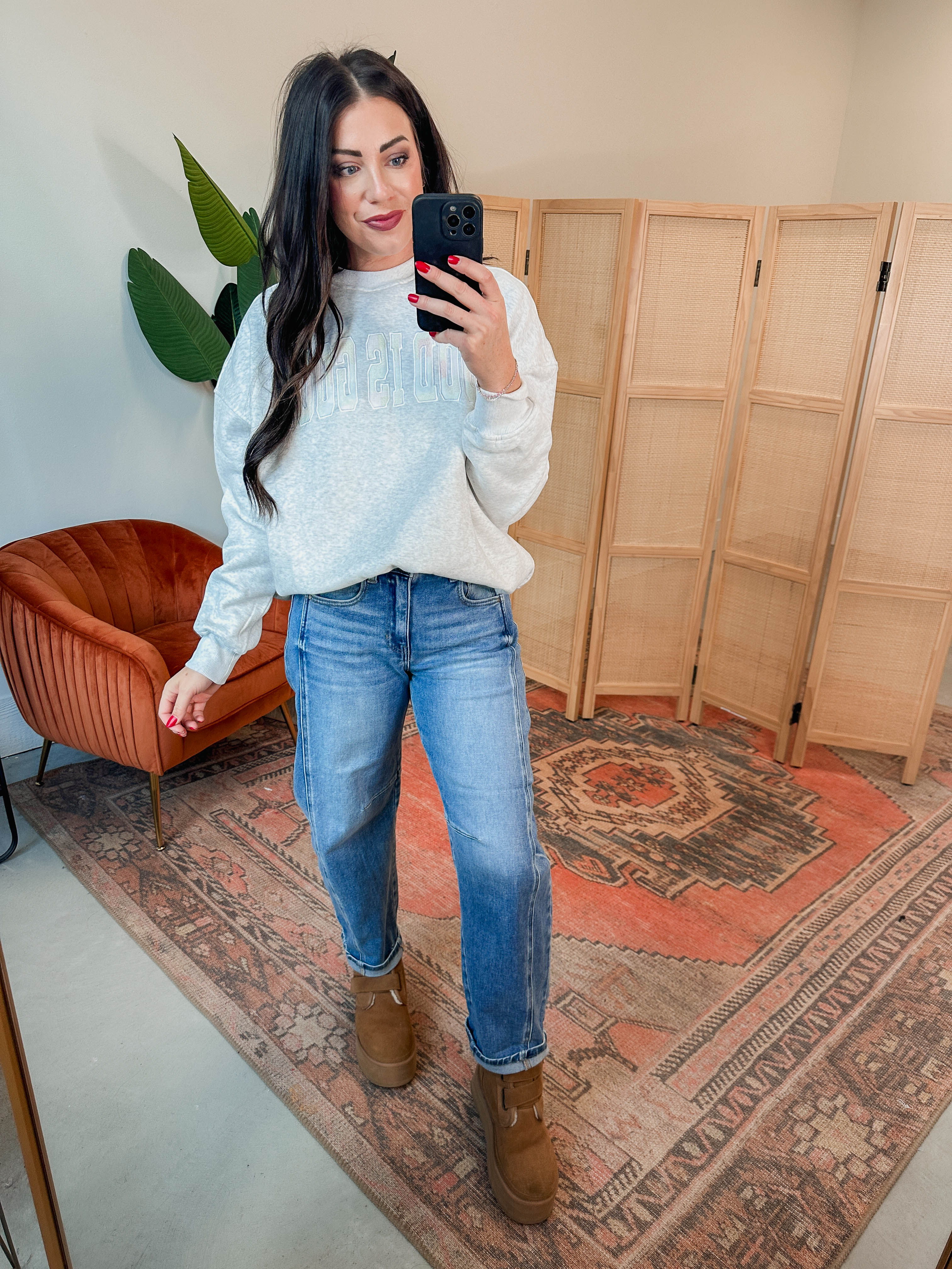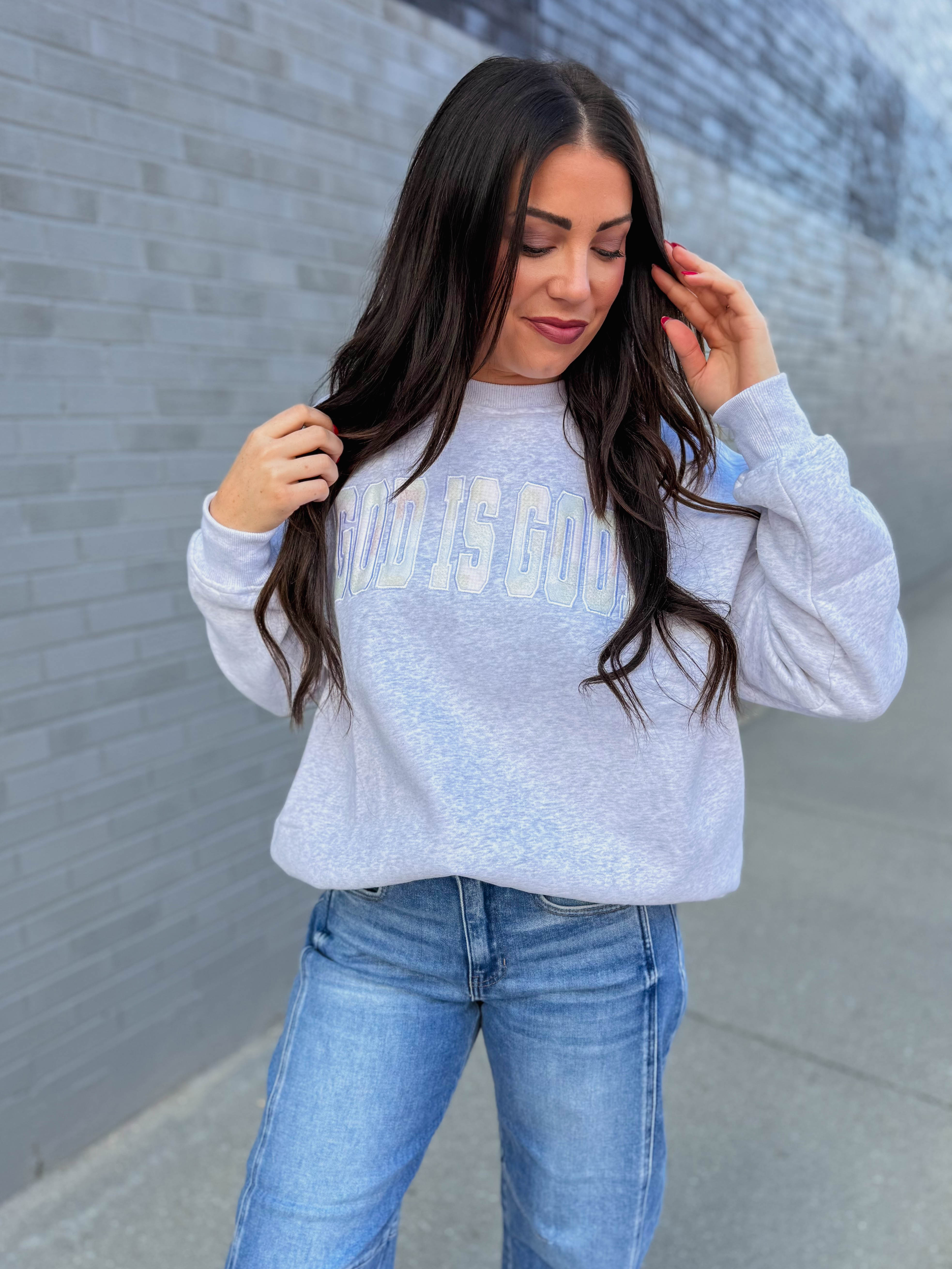 Spread good vibes in this cozy crew sweatshirt featuring a quilted embroidery design that says it all. The relaxed fit keeps things comfy and casual, while long sleeves and a classic crew neckline make it perfect for layering through any season. Whether you're running errands or hanging with friends, this graphic sweatshirt brings a little positivity to your everyday look.