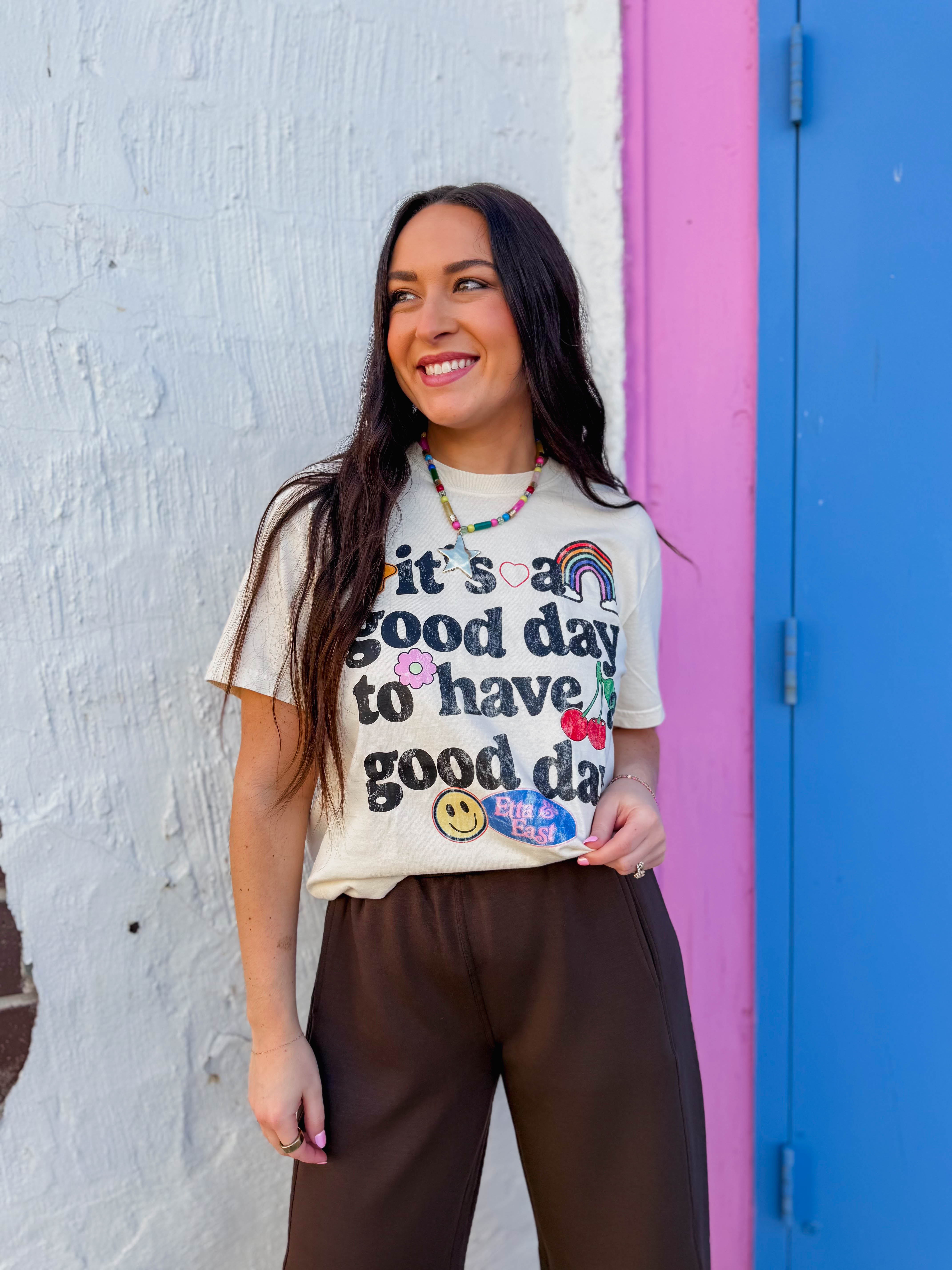 RESTOCK! Stay cheerful all day in the Good Day Tee! Featuring a fun "It's A Good Day" graphic, this comfy Comfort Colors crew neck with short sleeves offers a relaxed unisex fit—perfect for sunny summer vibes.