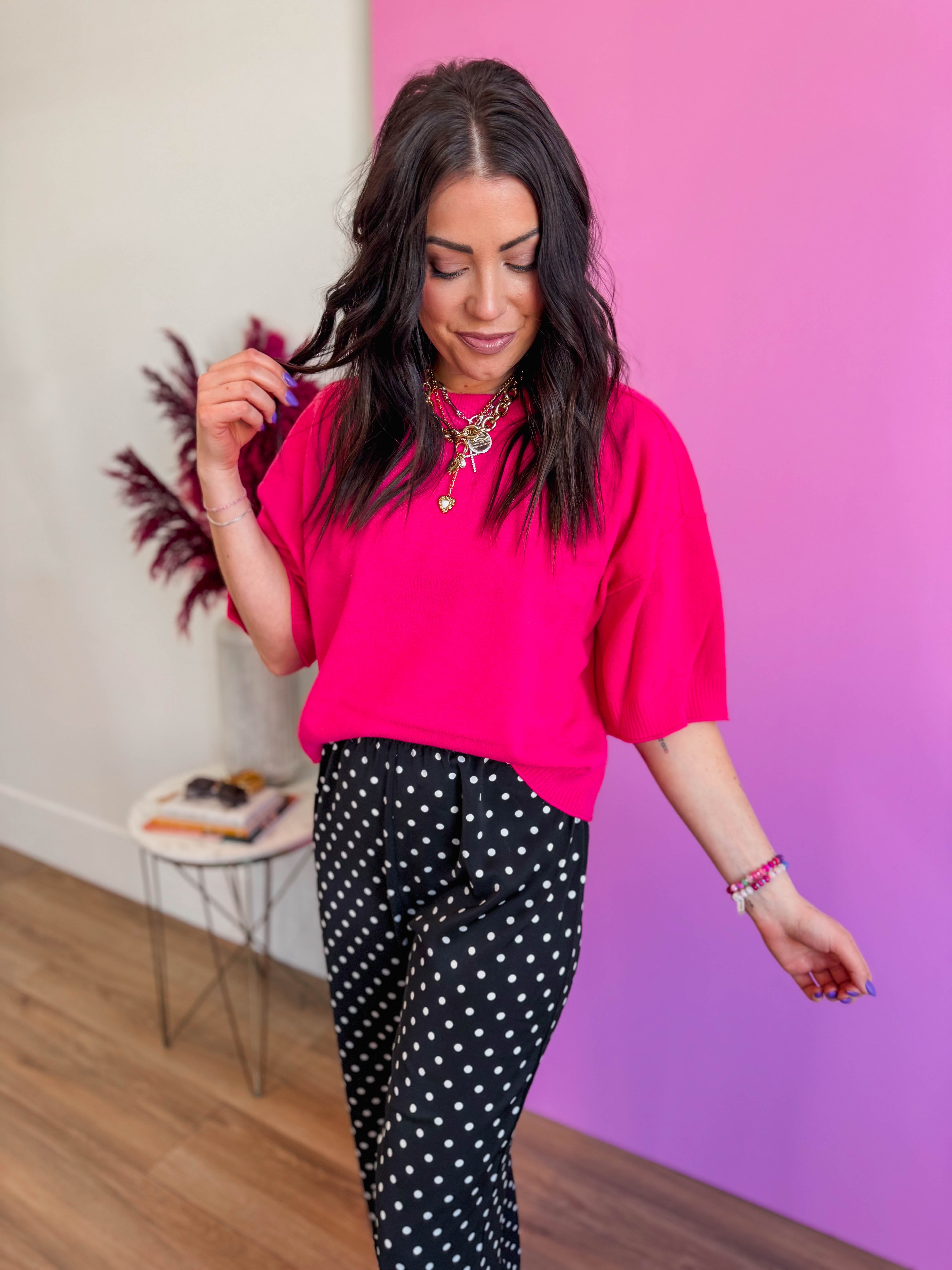 Effortless style meets everyday versatility with the Cassie Knit Top. This pullover sweater features a relaxed round neckline and statement 3/4 wide sleeves that transition seamlessly from office to weekend. Exposed seam details add an unexpected design twist, while ribbed hems keep everything polished. Available in a vibrant pop of color that brings instant personality to your wardrobe.