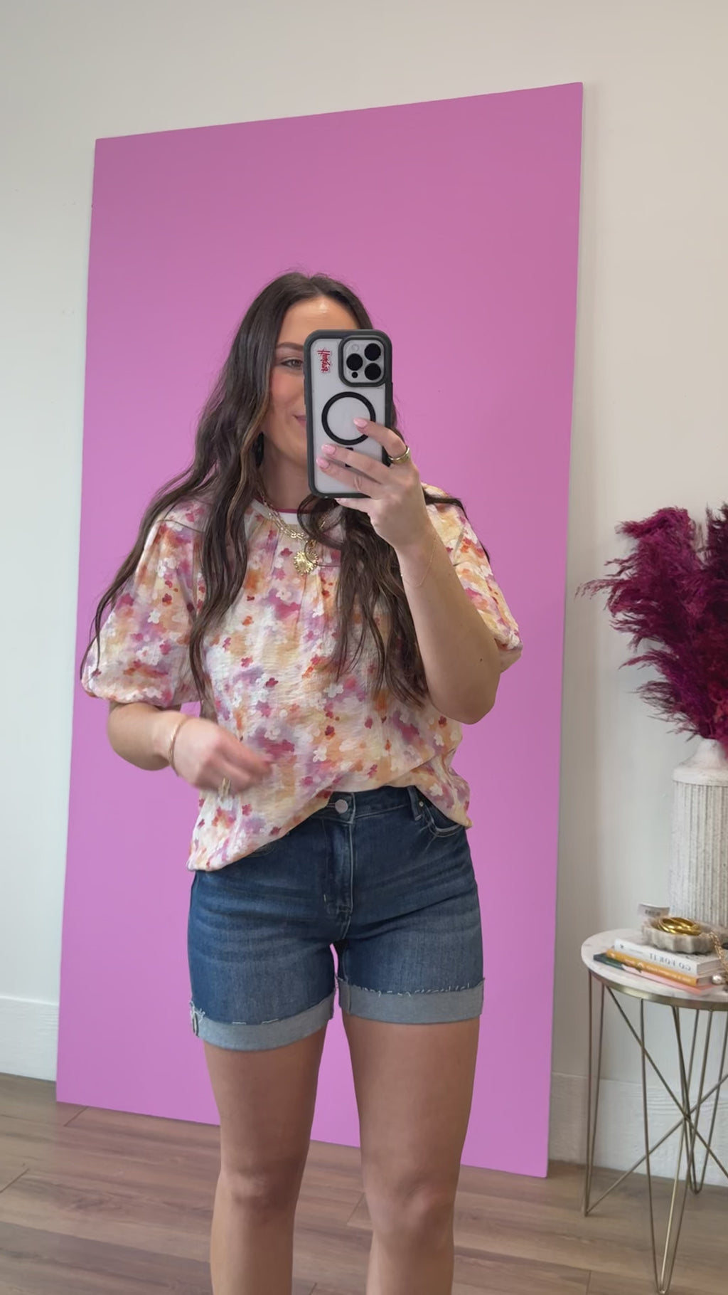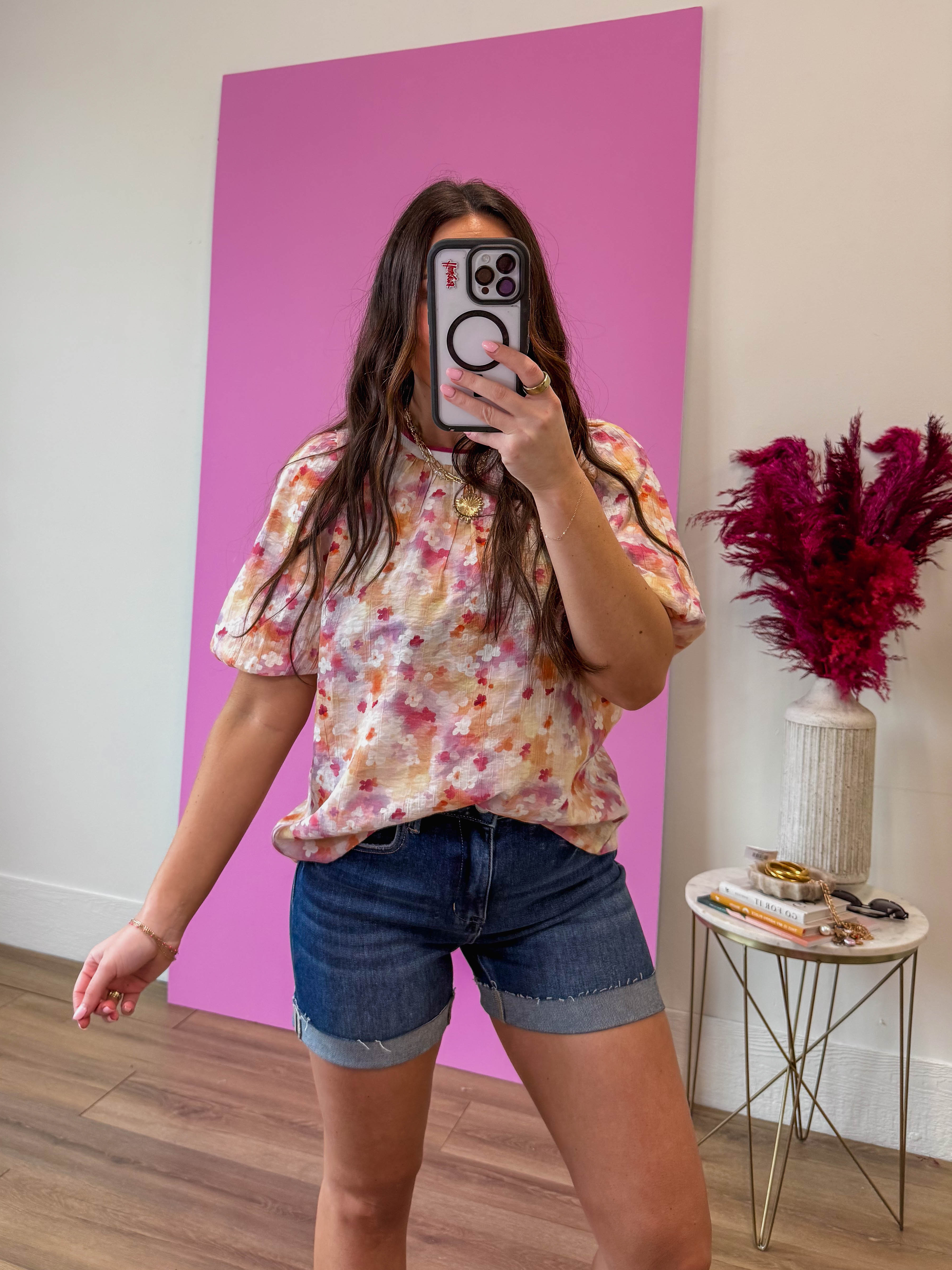 Presley Floral Top-Pink/Wine