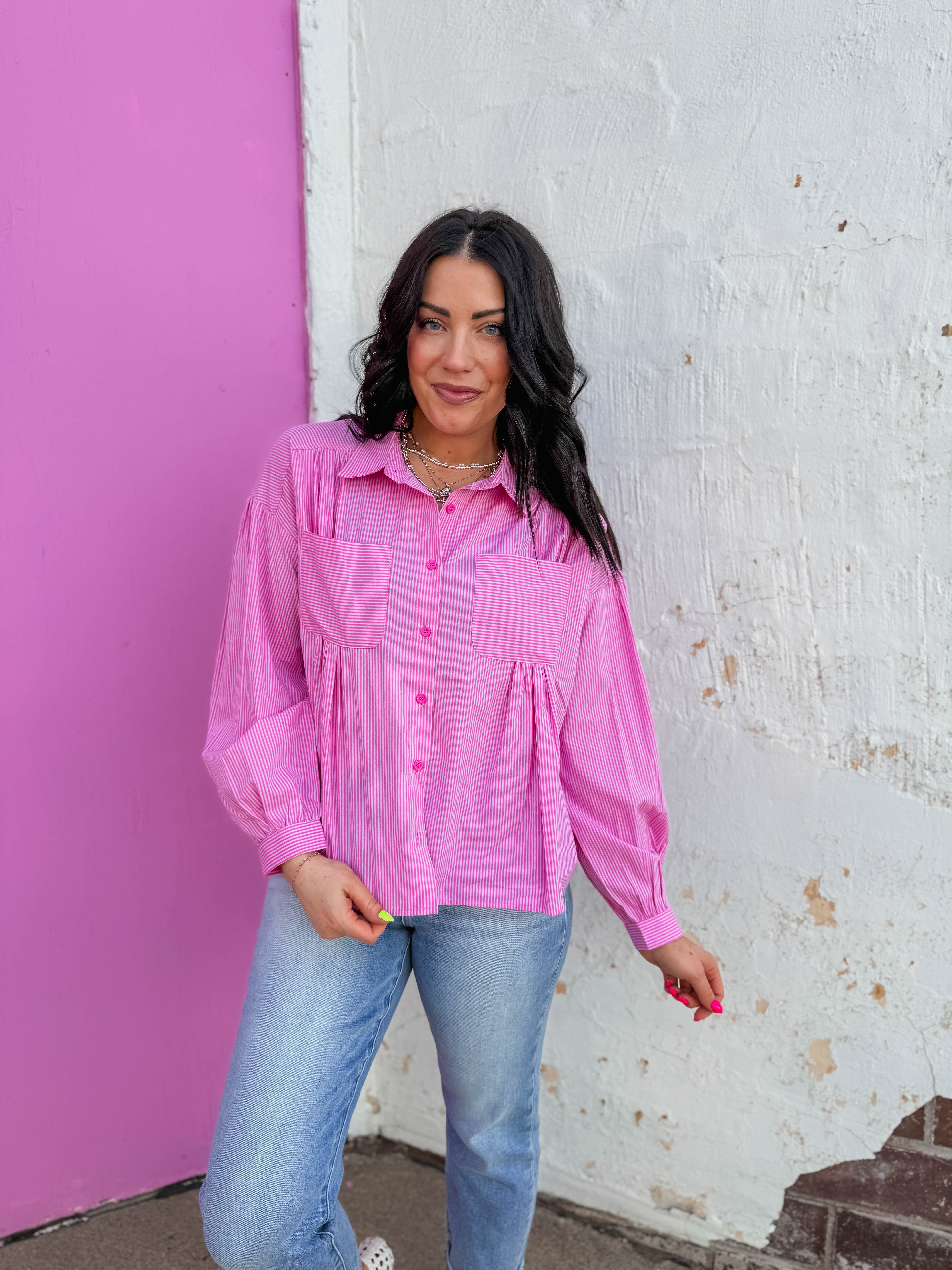 Pretty In Pink Striped Button Down