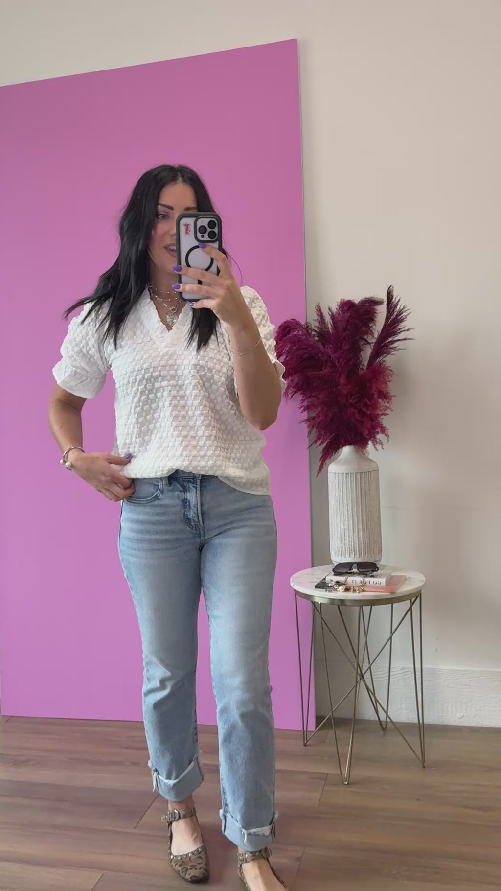 Meet your new go-to: the Susannah Top. This playful blouse transitions seamlessly from desk to dinner with its charming ruffled V-neckline and short sleeves. Elastic cuffs keep things neat while the textured fabric adds just enough visual interest to feel special. Chic, uncomplicated, and ready for whatever your day throws at you.