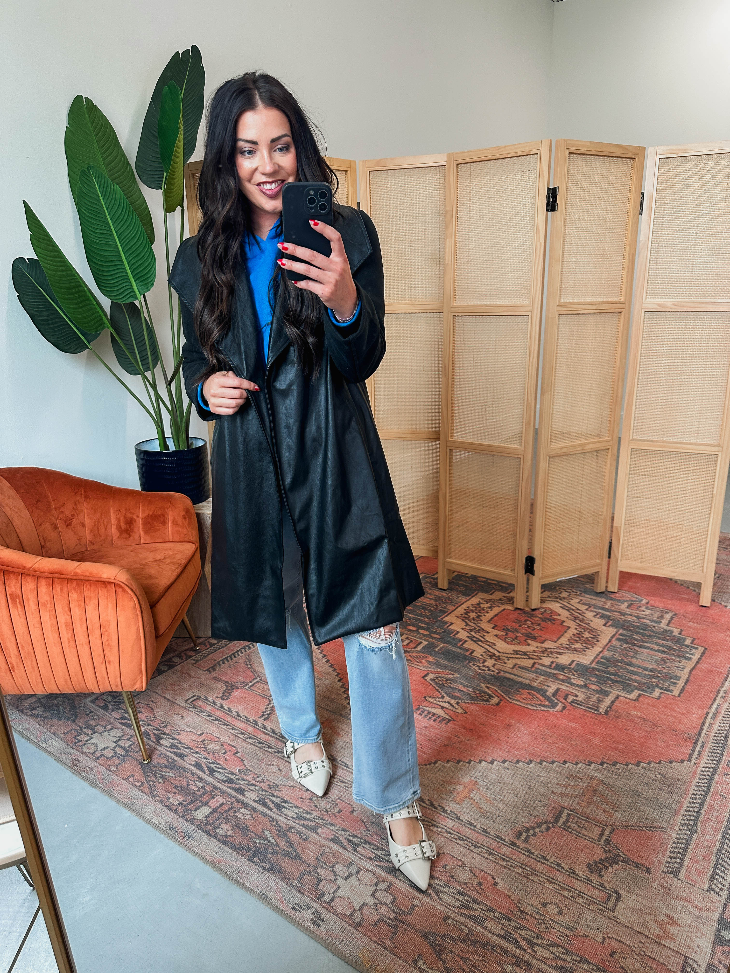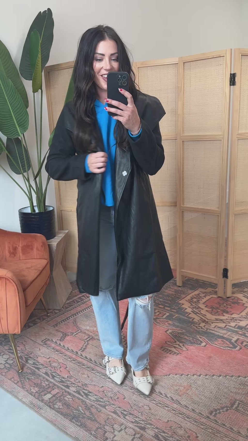 The Bentley Leather Jacket blends faux leather with a cool mixed texture design, perfect for fall and winter. Featuring a collared neckline and a fun front tie closure, it adds a playful edge to any look—whether you’re dressing up or keeping it casual.