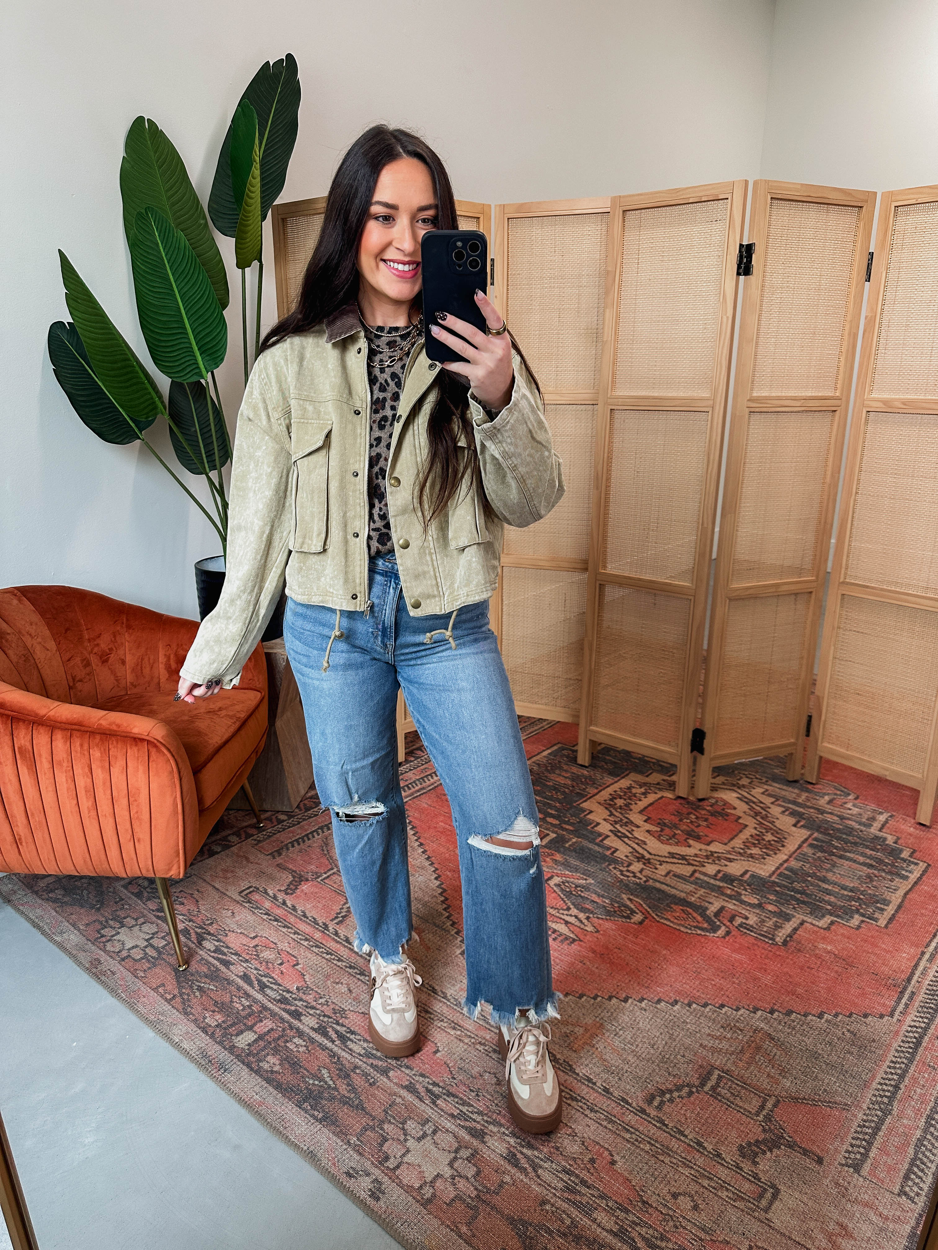 The Elliot Jacket is your new fall fave—denim with a cozy corduroy contrast for extra charm. Featuring a collared neckline, button front, and dual pockets, plus a drawcord waist to keep things snug and stylish. Perfect for crisp autumn days!