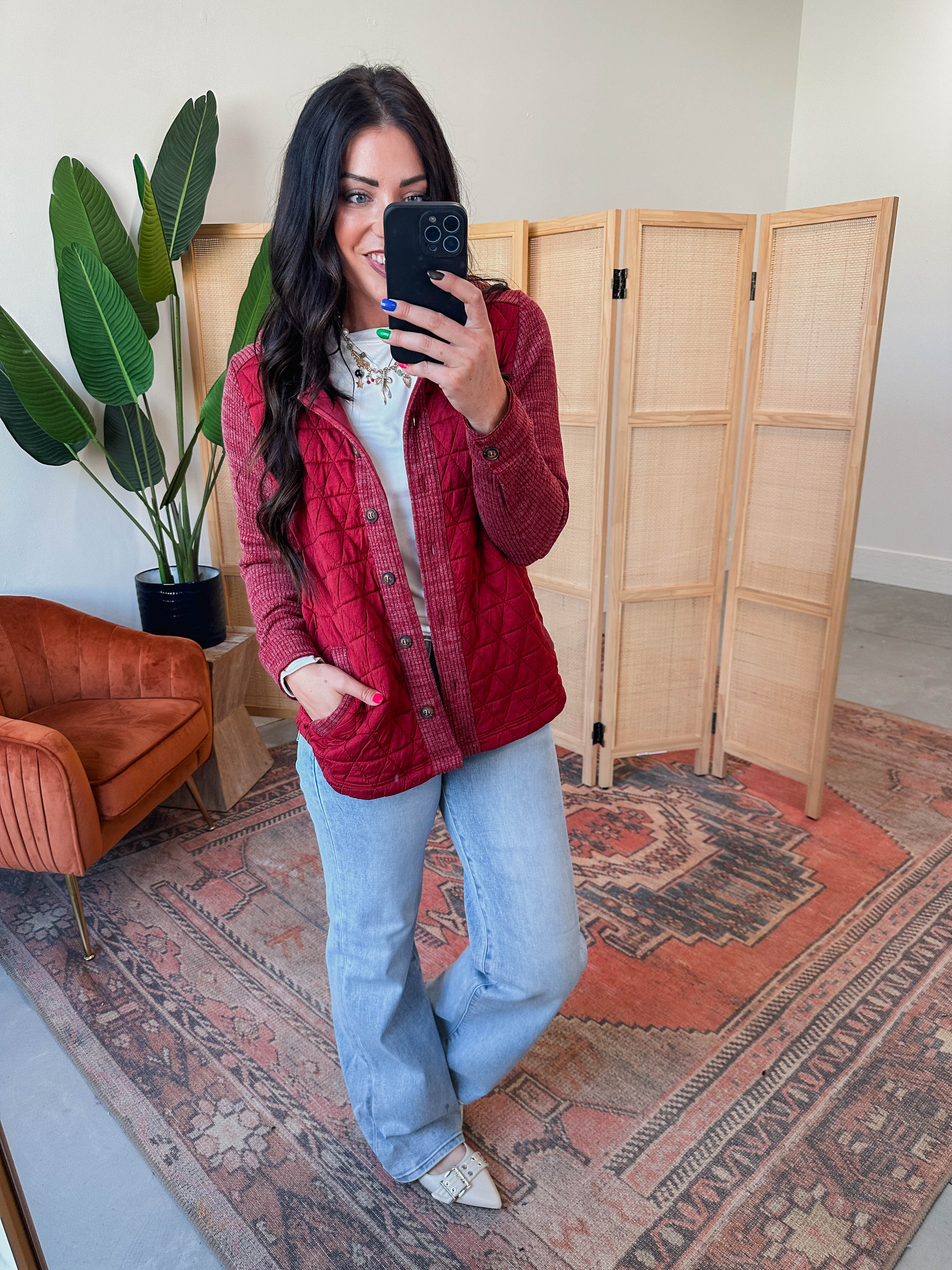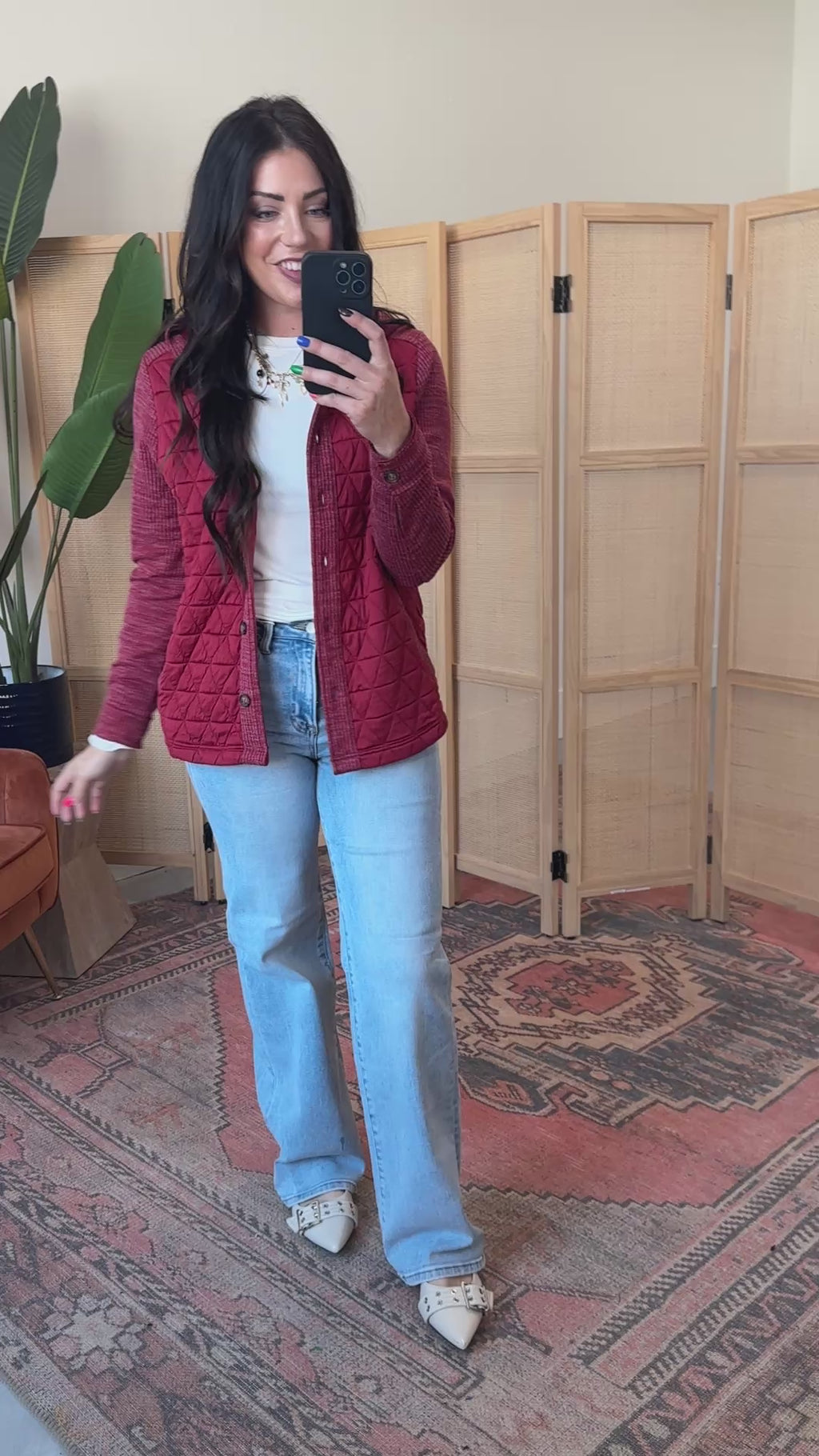 The Greta Quilted Jacket blends cozy quilted and slub knits for a textured look. With long sleeves, button front, and handy side pockets, it’s the perfect go-anywhere layer from work to weekend.