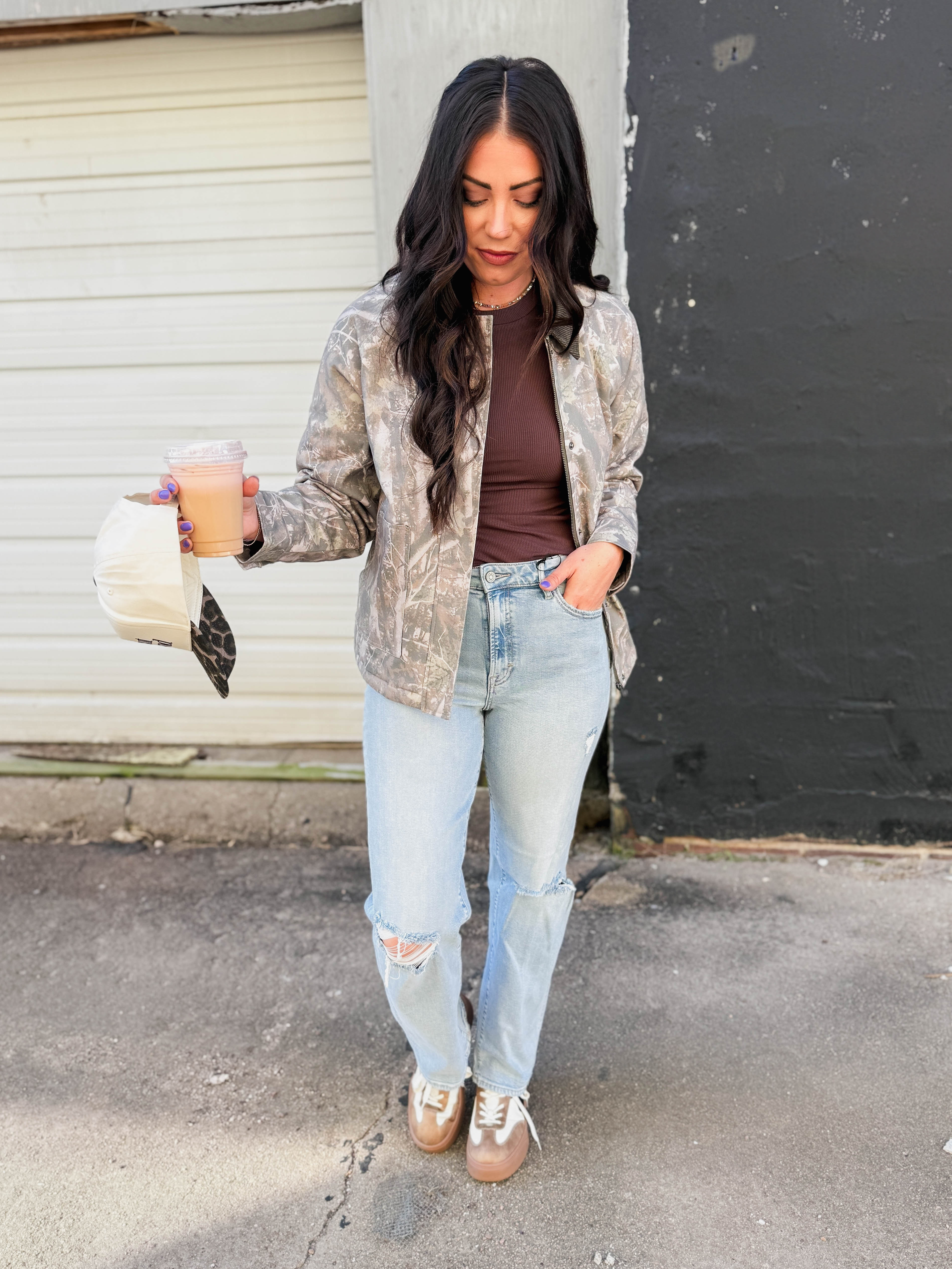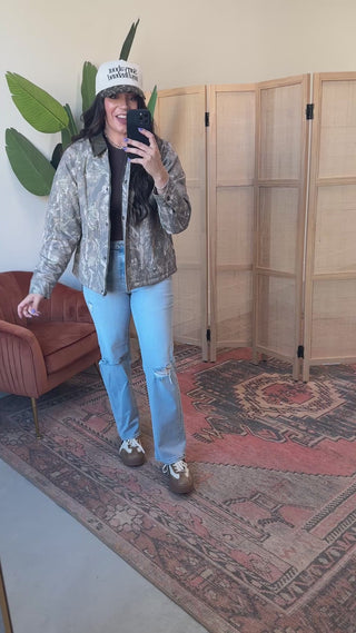 Add a bold edge to your look with Thread & Supply's Korie Jacket! Featuring a trendy camo print, a classic collared neckline, and a puffer style, this jacket zips up front and includes handy side pockets for all your essentials.