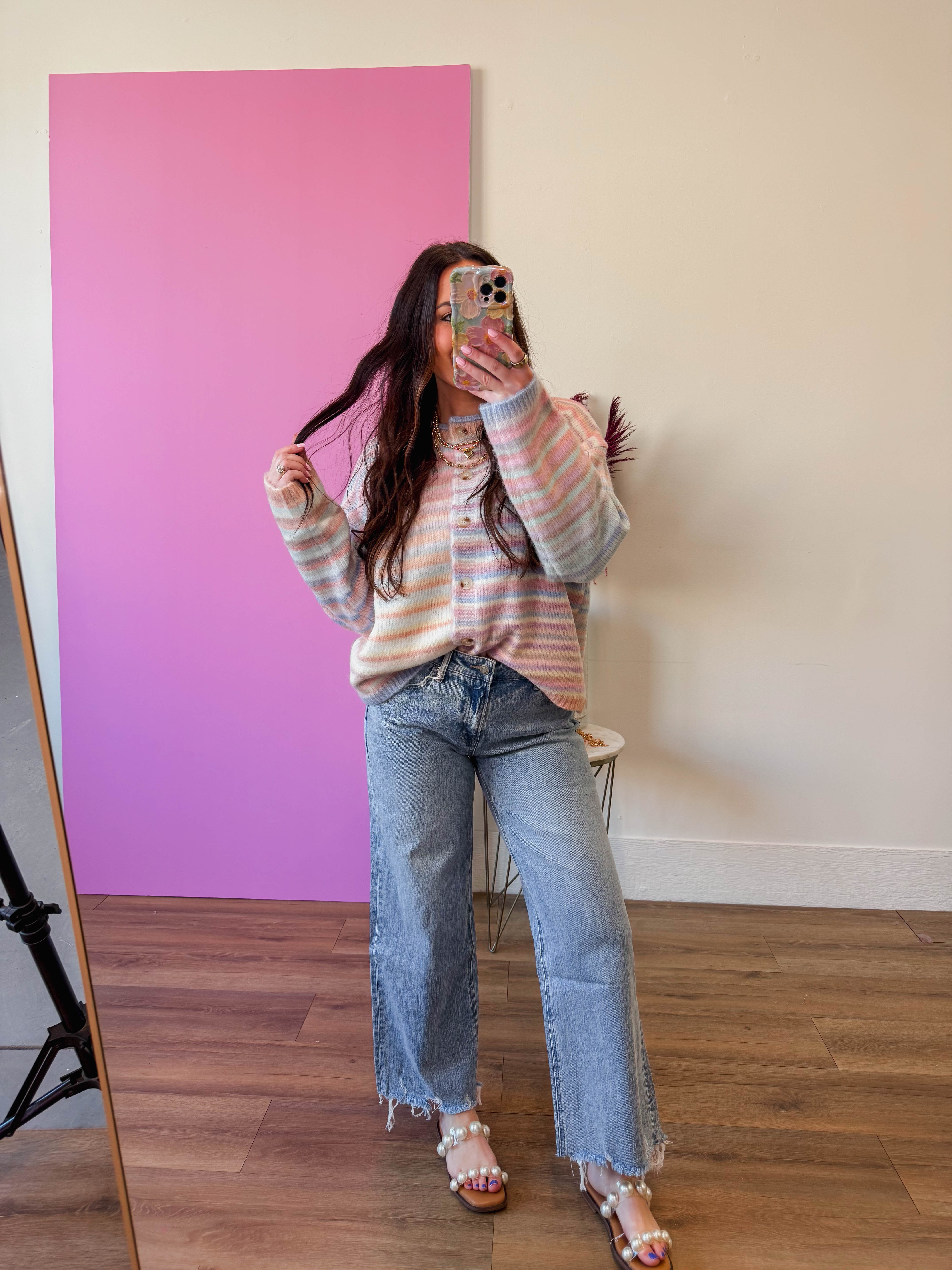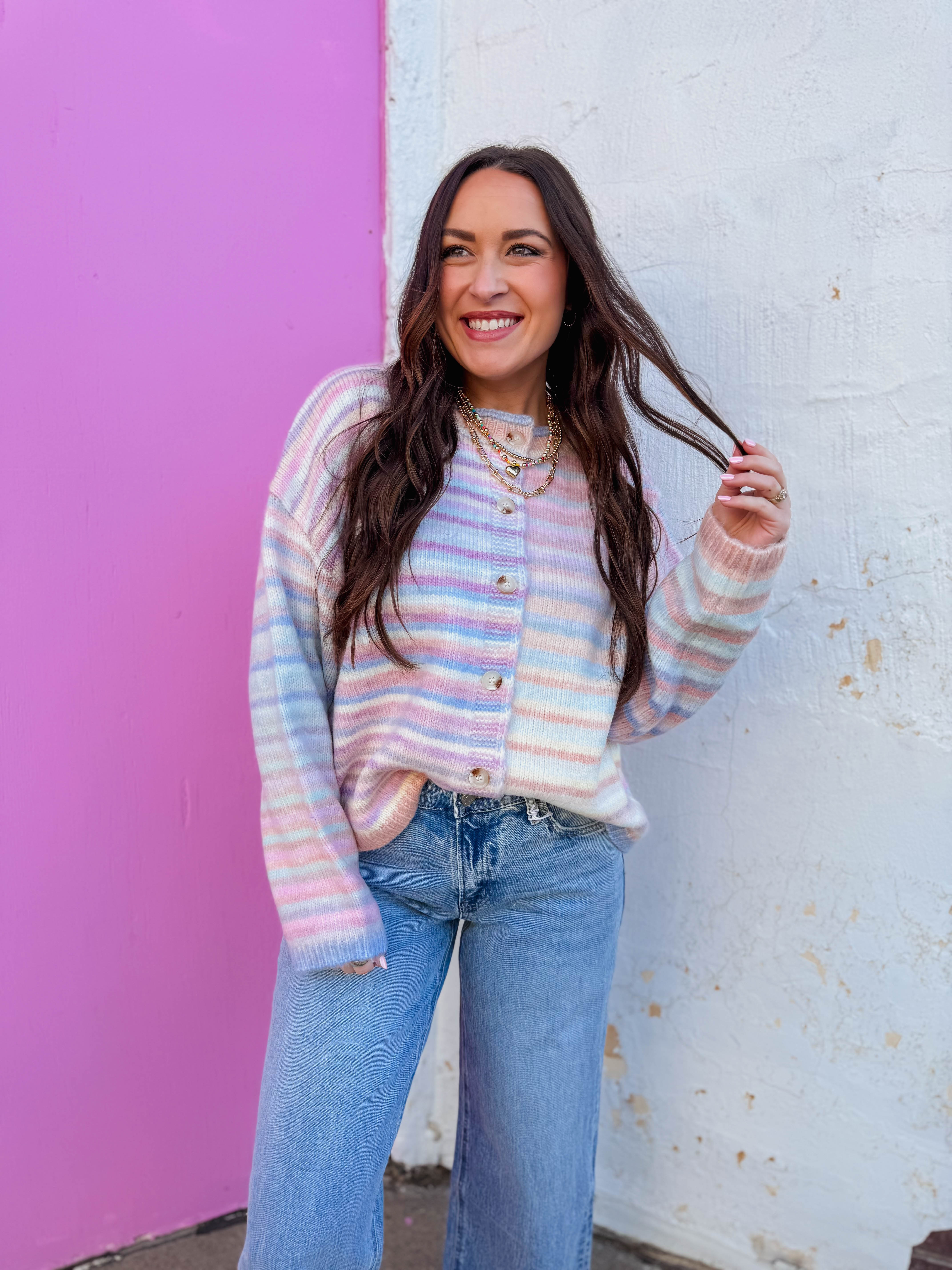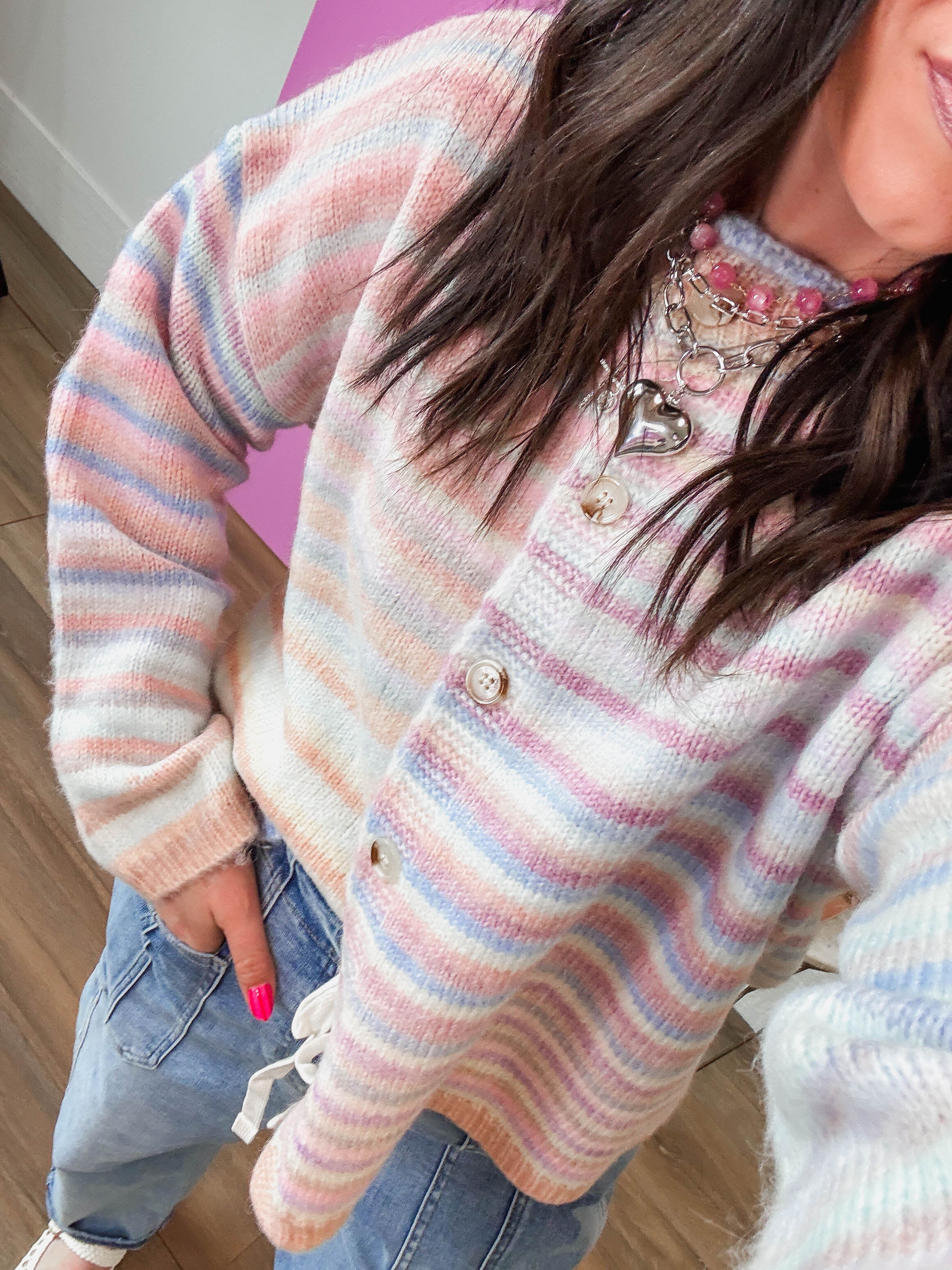 Over The Rainbow Cardigan-Bubblegum/Mint