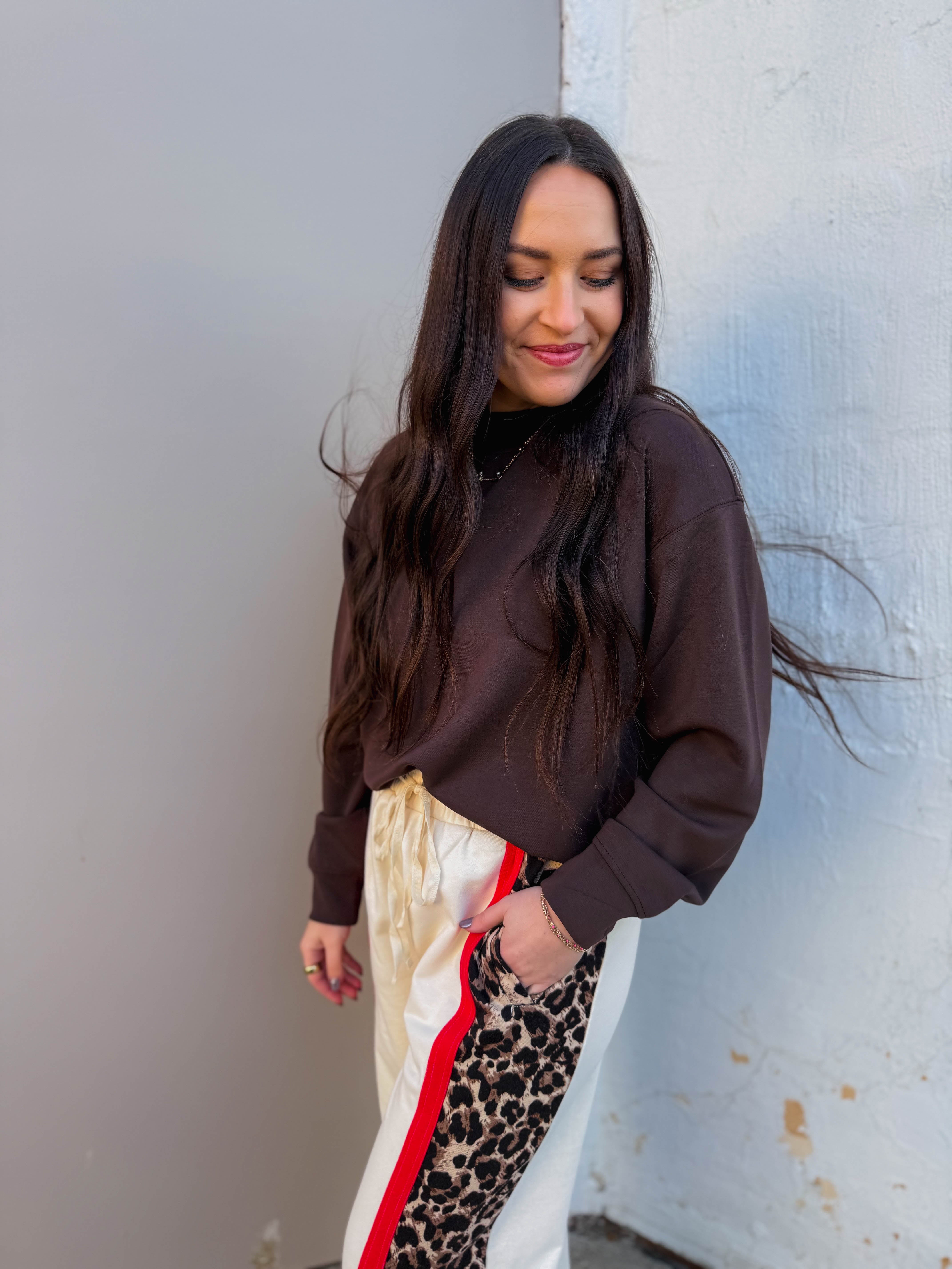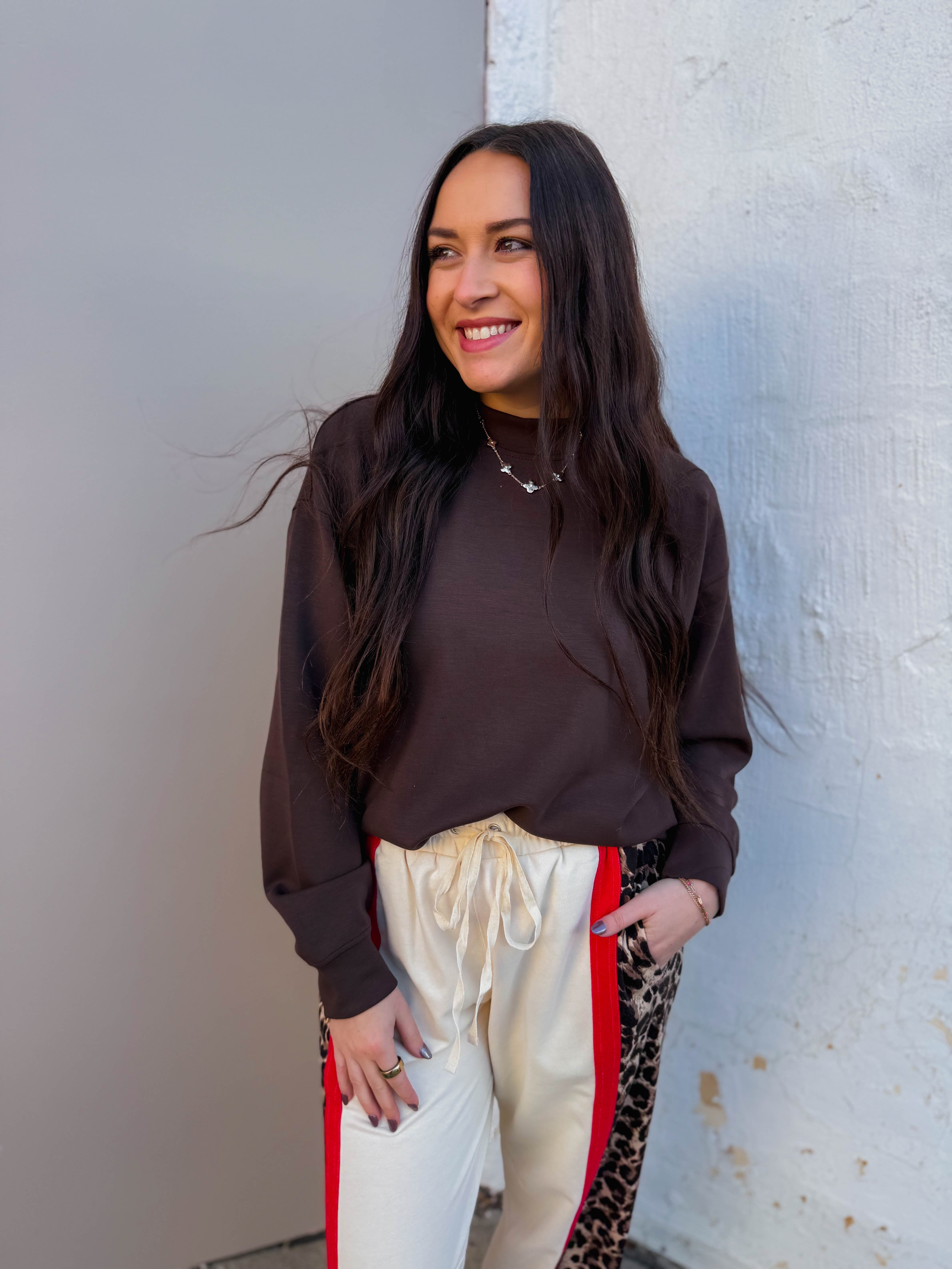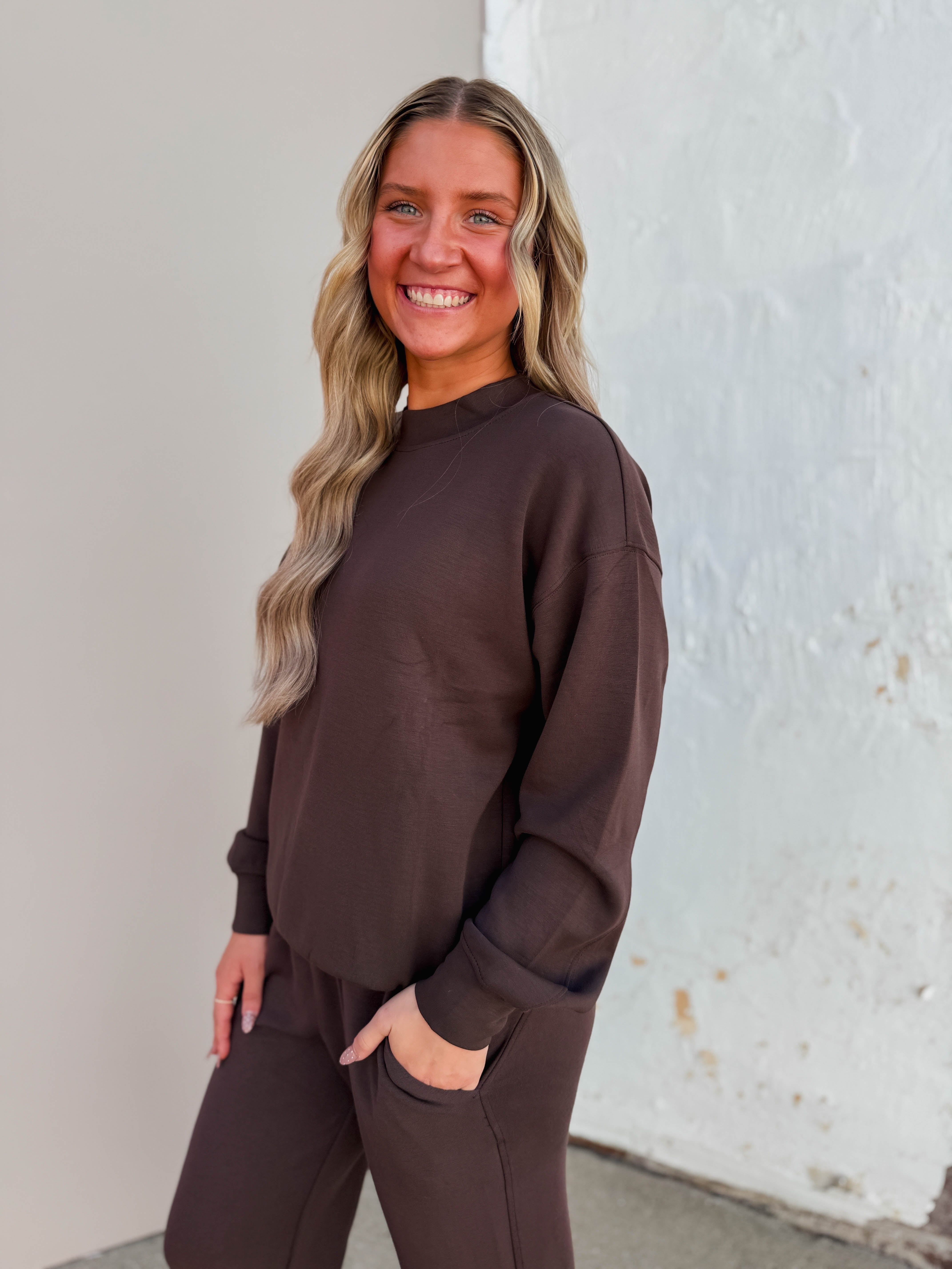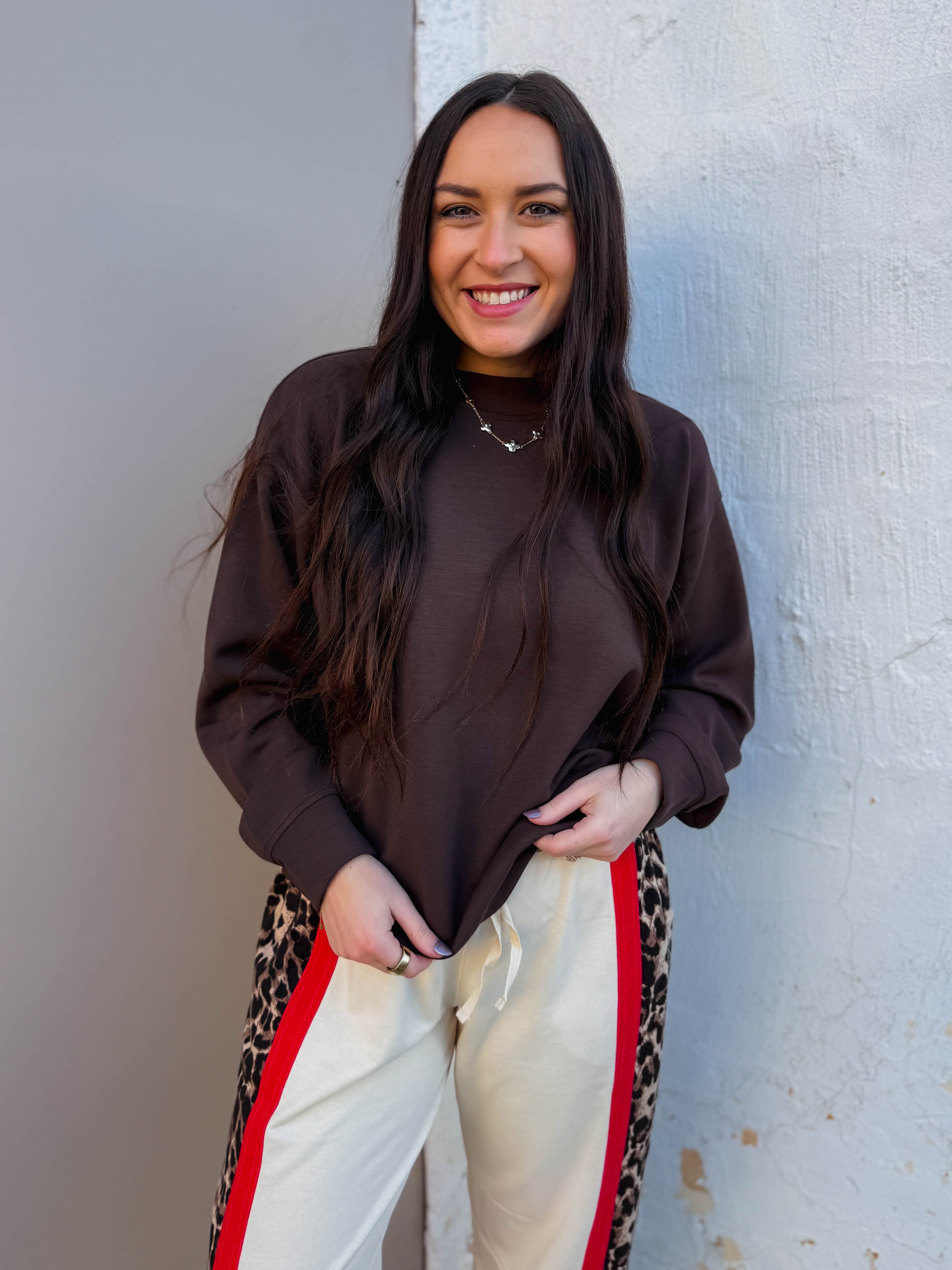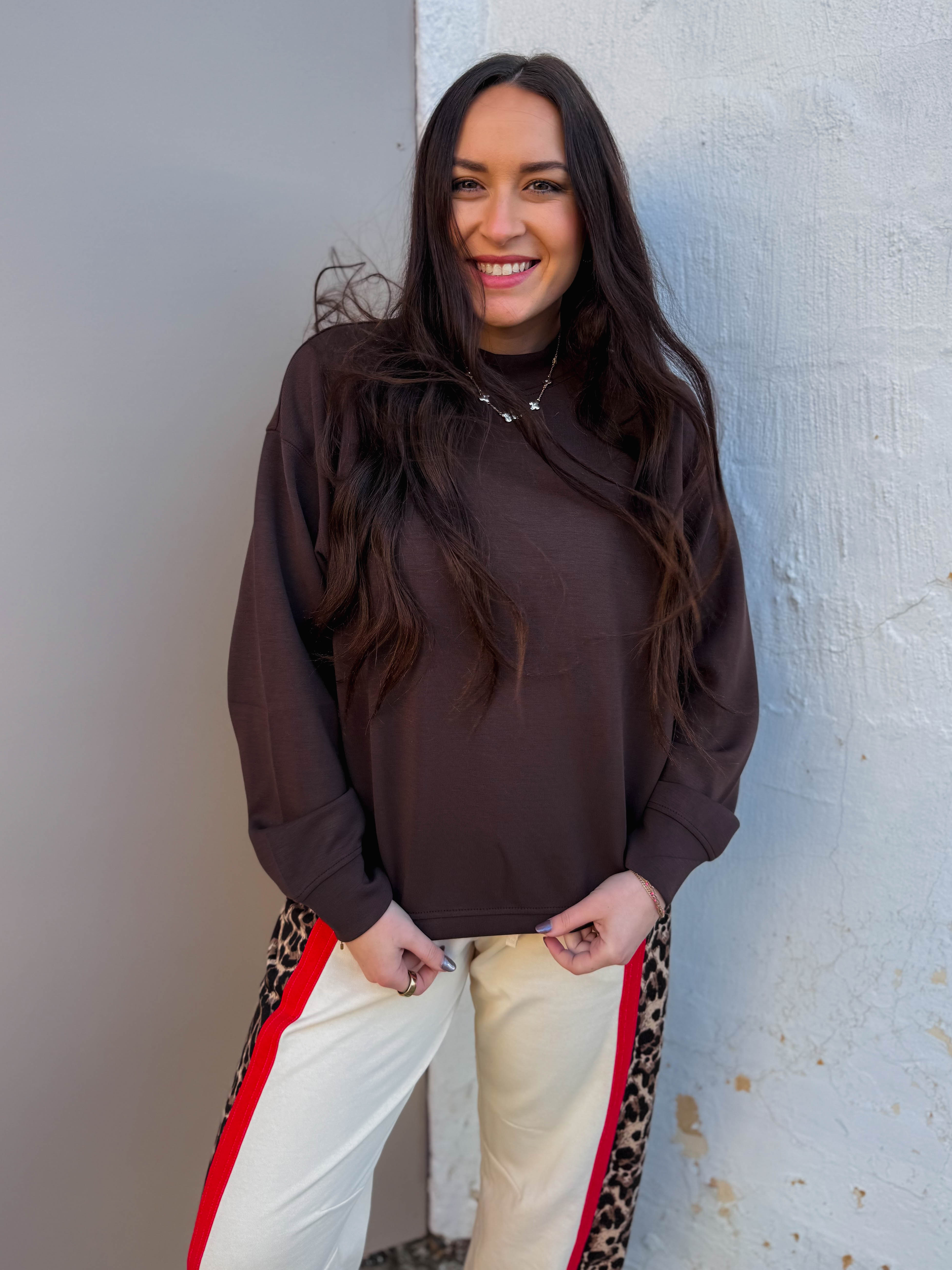 RESTOCK! Stay cozy and stylish on the go with the Logan Pullover! Made from silky-smooth, lightweight scuba fabric, it offers a relaxed fit and chic mock neckline. Seamed details add subtle flair, making it perfect for travel or everyday adventures.