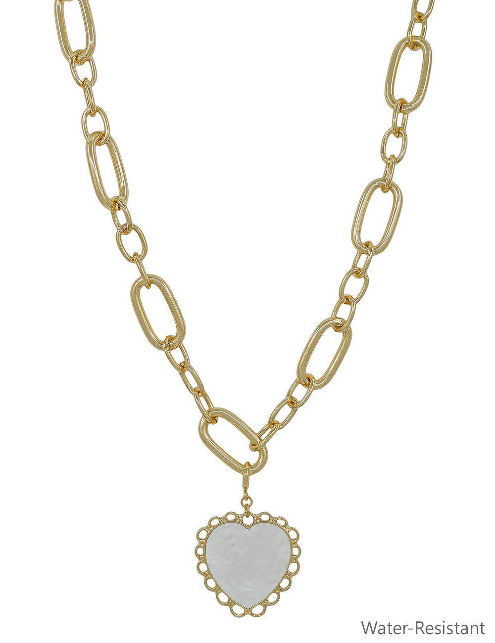 Gold Chunky Oval Link Chain with 1.5" Mother of Pearl Heart Charm Necklace