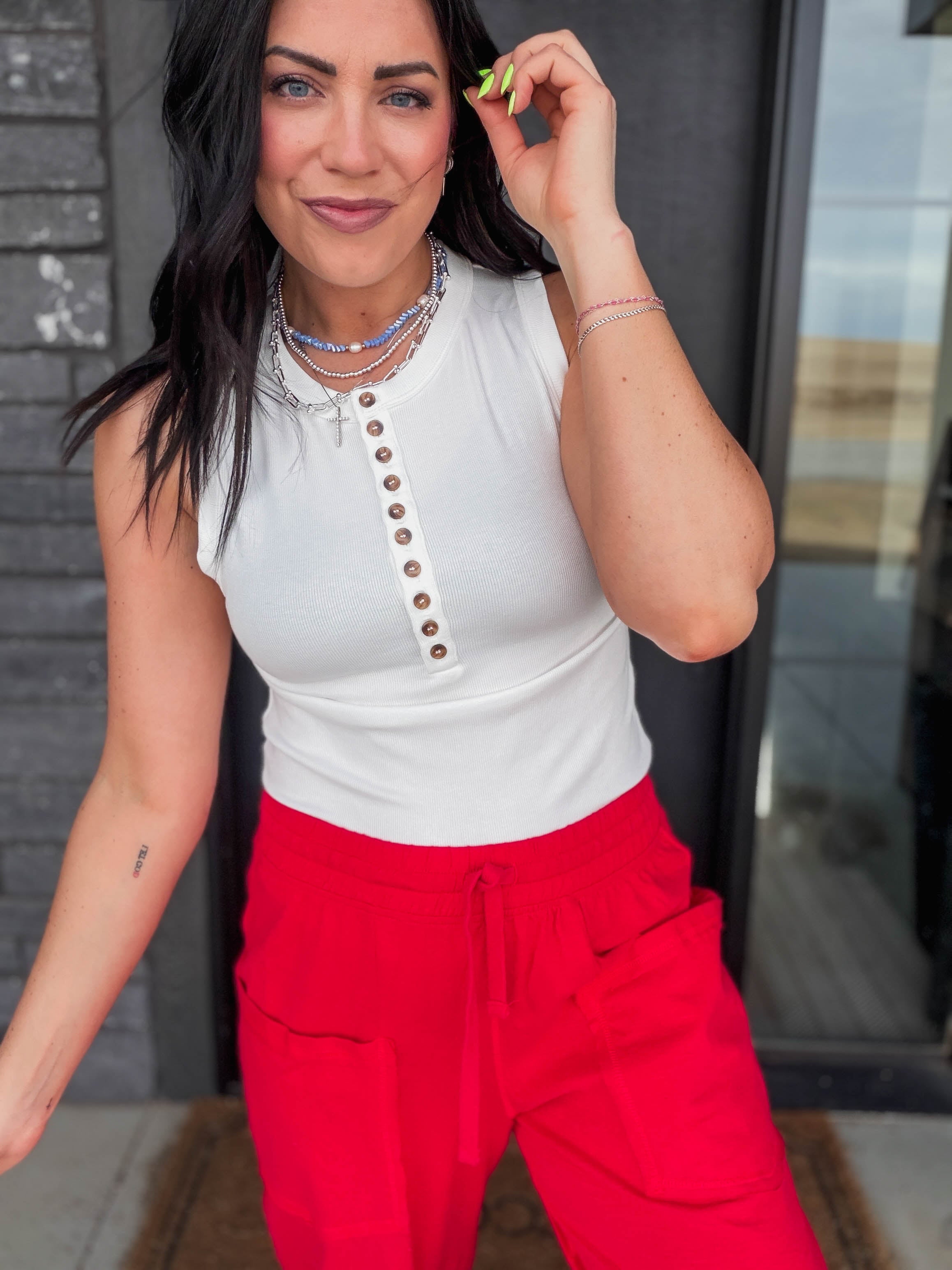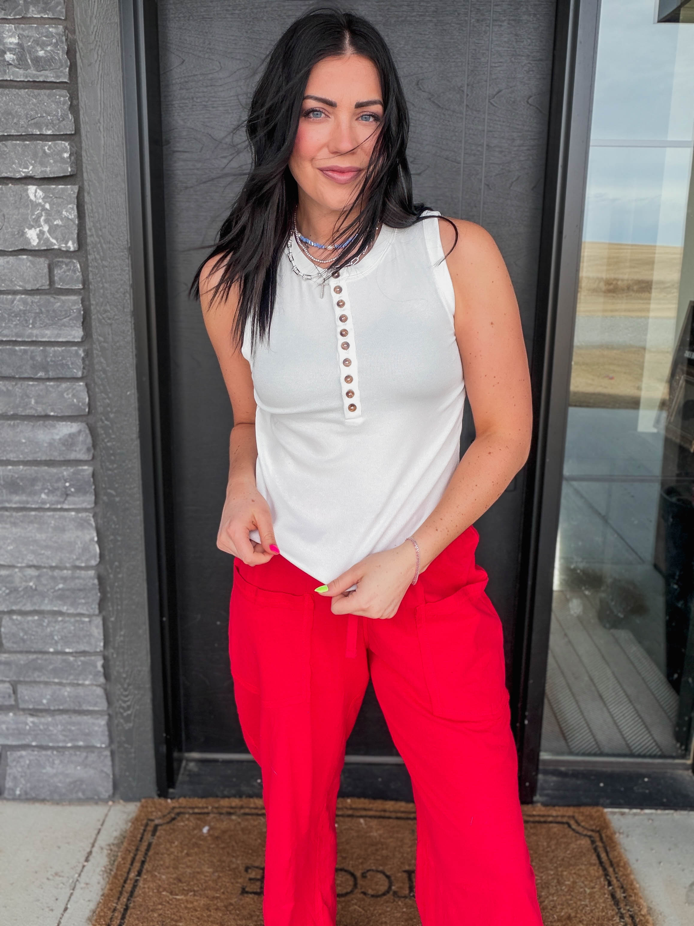 Master minimalist style with this henley ribbed knit tank top, a foundation piece that works with everything. The ribbed fabric adds subtle visual interest while maintaining a clean aesthetic. The henley neckline brings charm and pairs effortlessly with layering pieces or stands alone for simple elegance. Soft and comfortable for all-day wear, this tank works equally well under jackets, cardigans, or button-ups, or worn solo with your favorite bottoms. A timeless basic that delivers quality and style season after season.