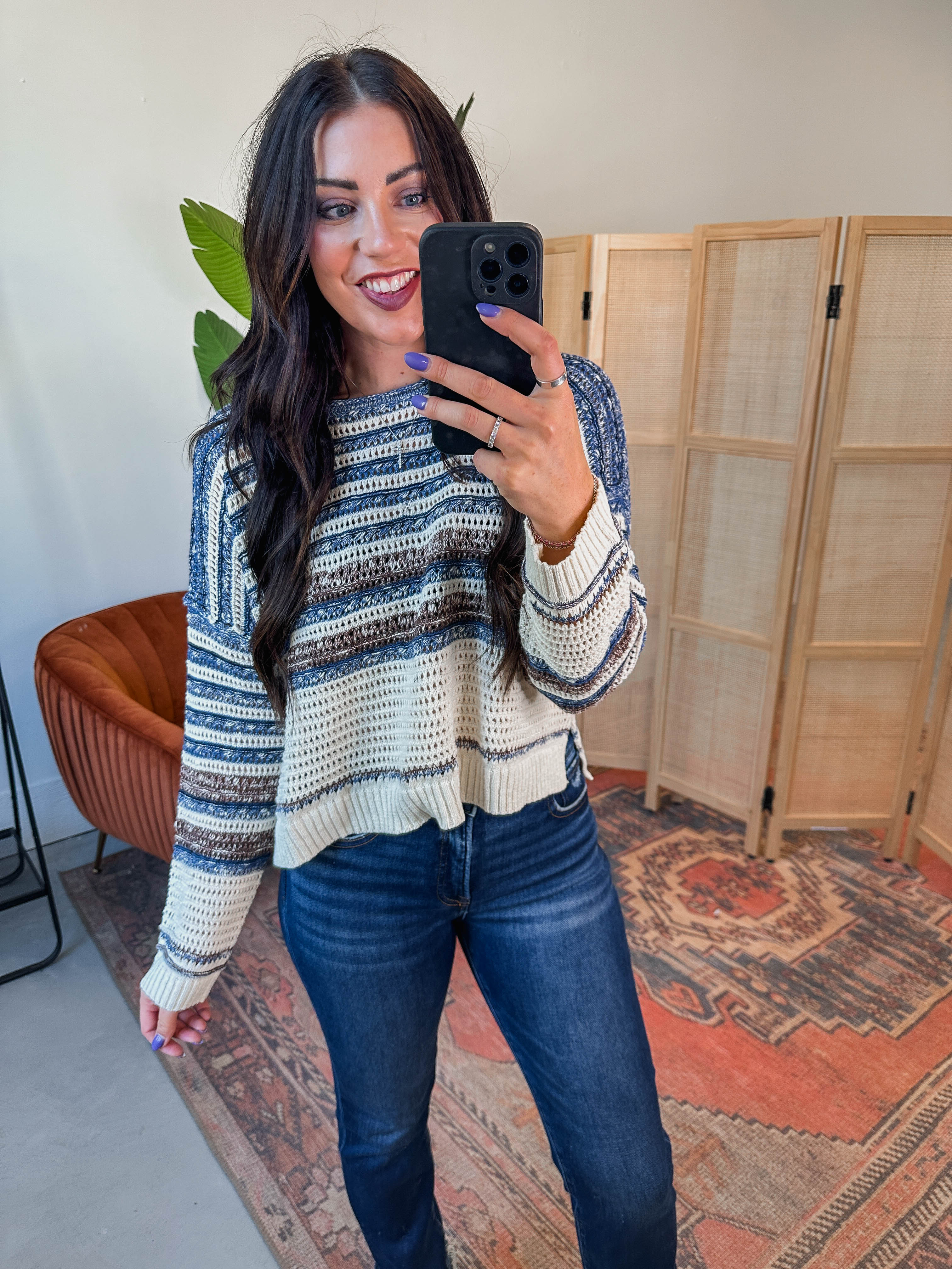 The Beckett Sweater brings fun to your wardrobe with its multicolor stripes and relaxed fit. Featuring a cozy round neckline and long sleeves, it’s perfect for breezy days from work to weekend adventures. Stay comfy and colorful all day long!