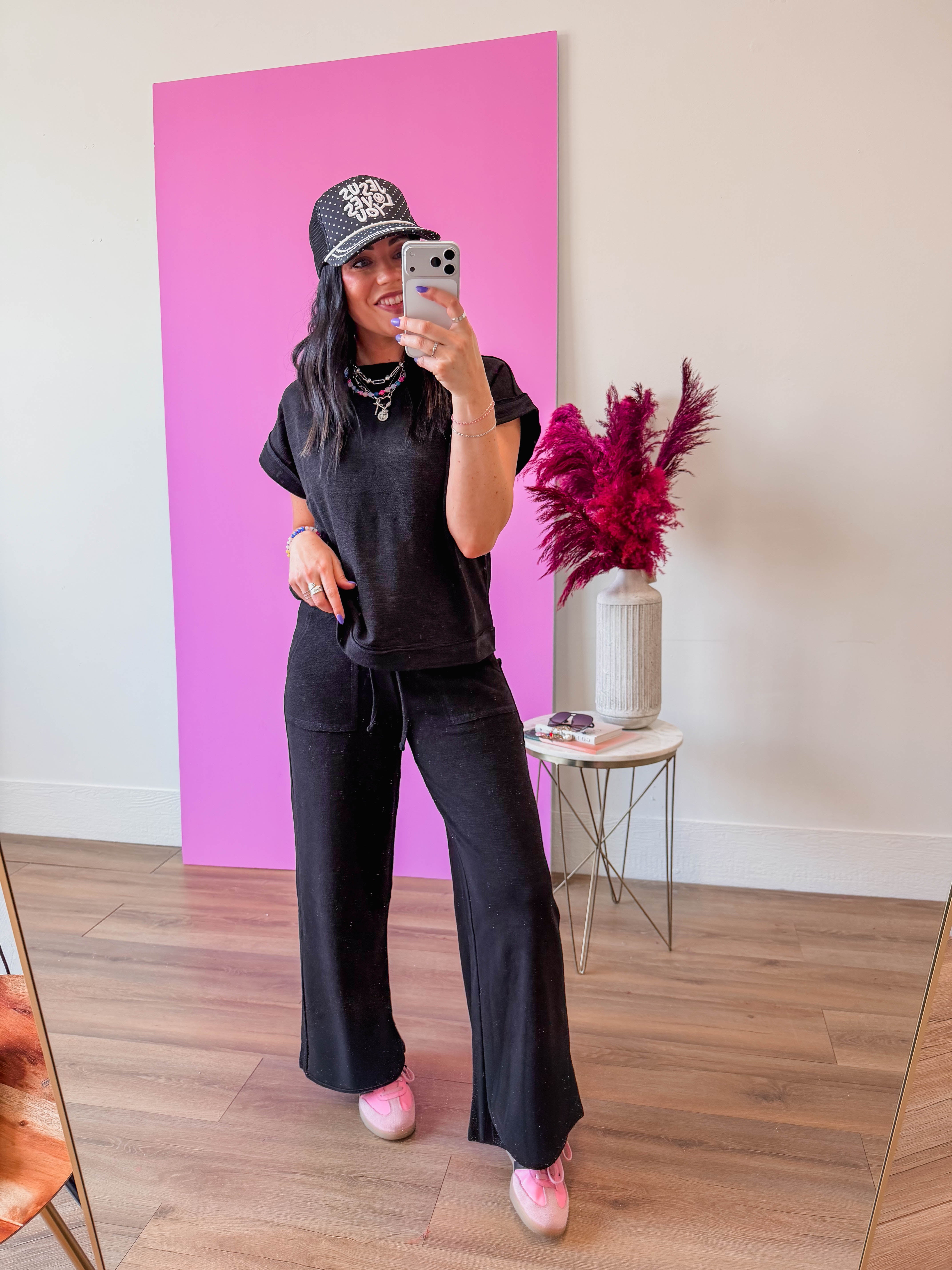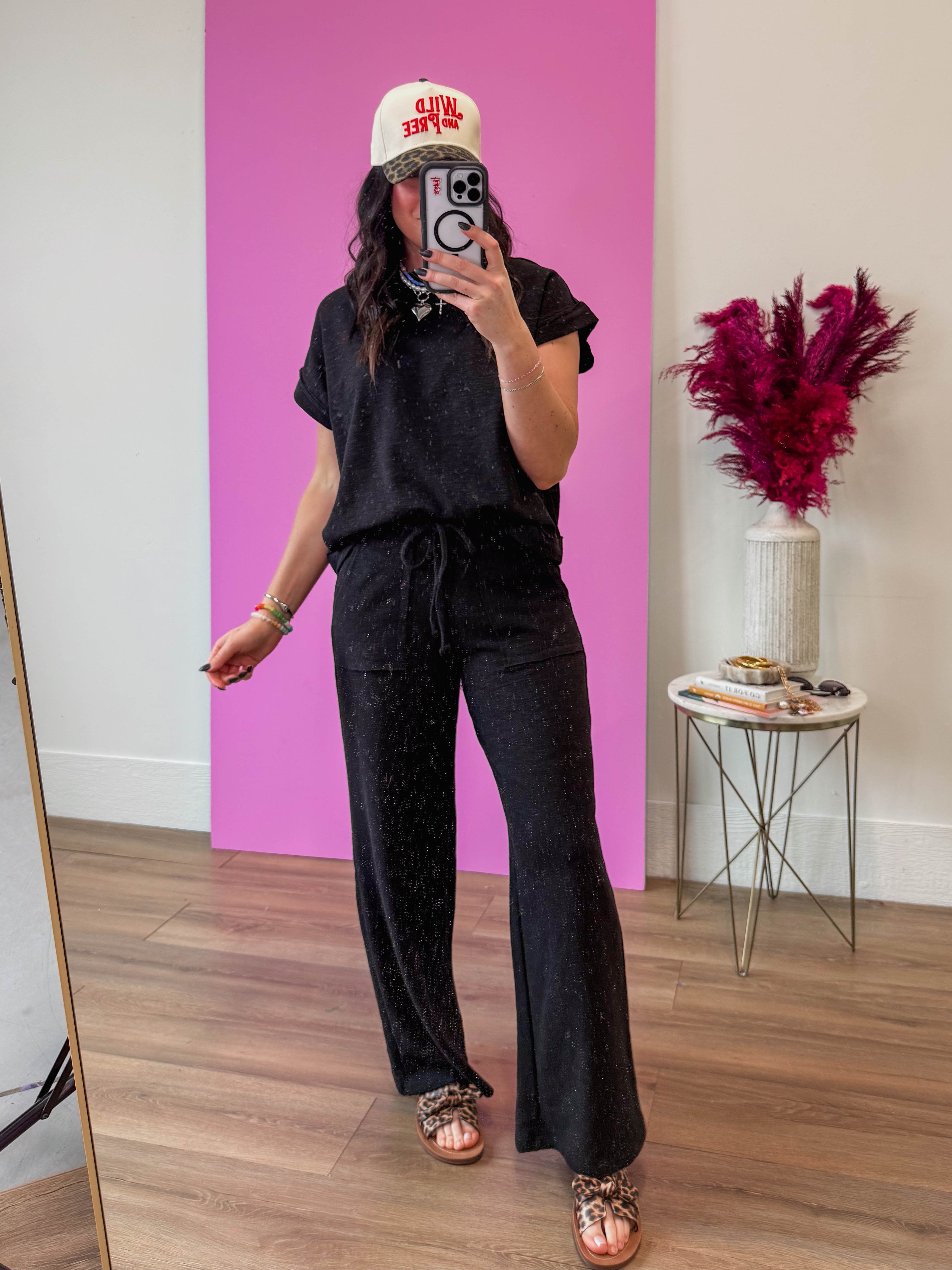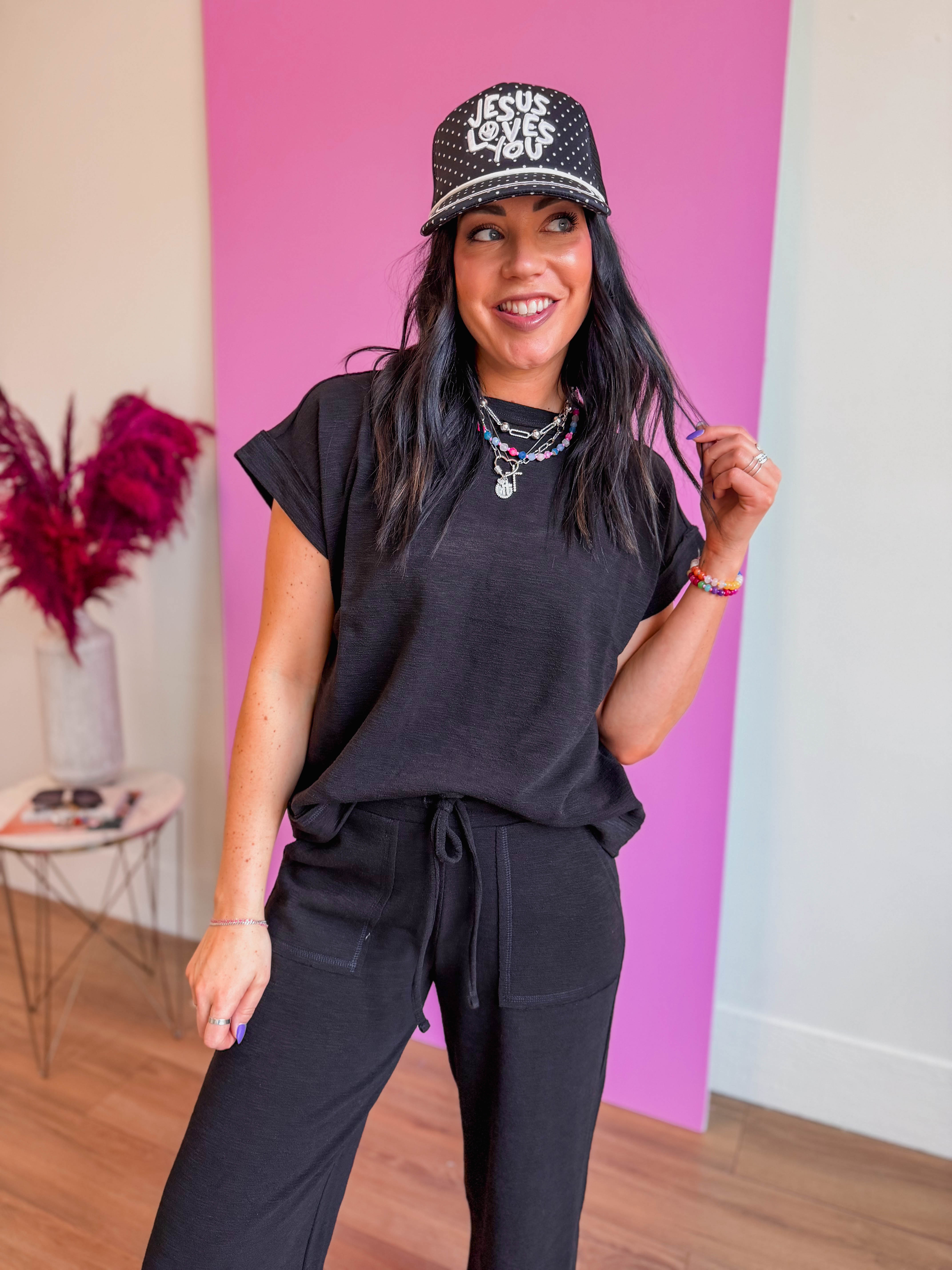Slip into comfort with our Easy Living Lounge Set, crafted from soft cotton slub material that's perfect for laid-back days. Whether you're running errands or relaxing at home, this effortless set moves with you. Style it your way—throw on a trucker hat, sneakers, and your favorite jewelry to elevate the look from cozy to cool. Grab-and-go ease meets everyday style.