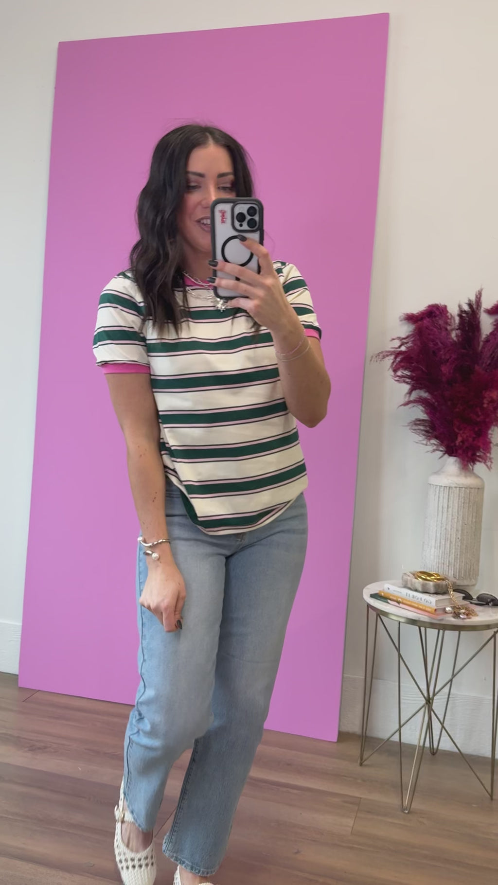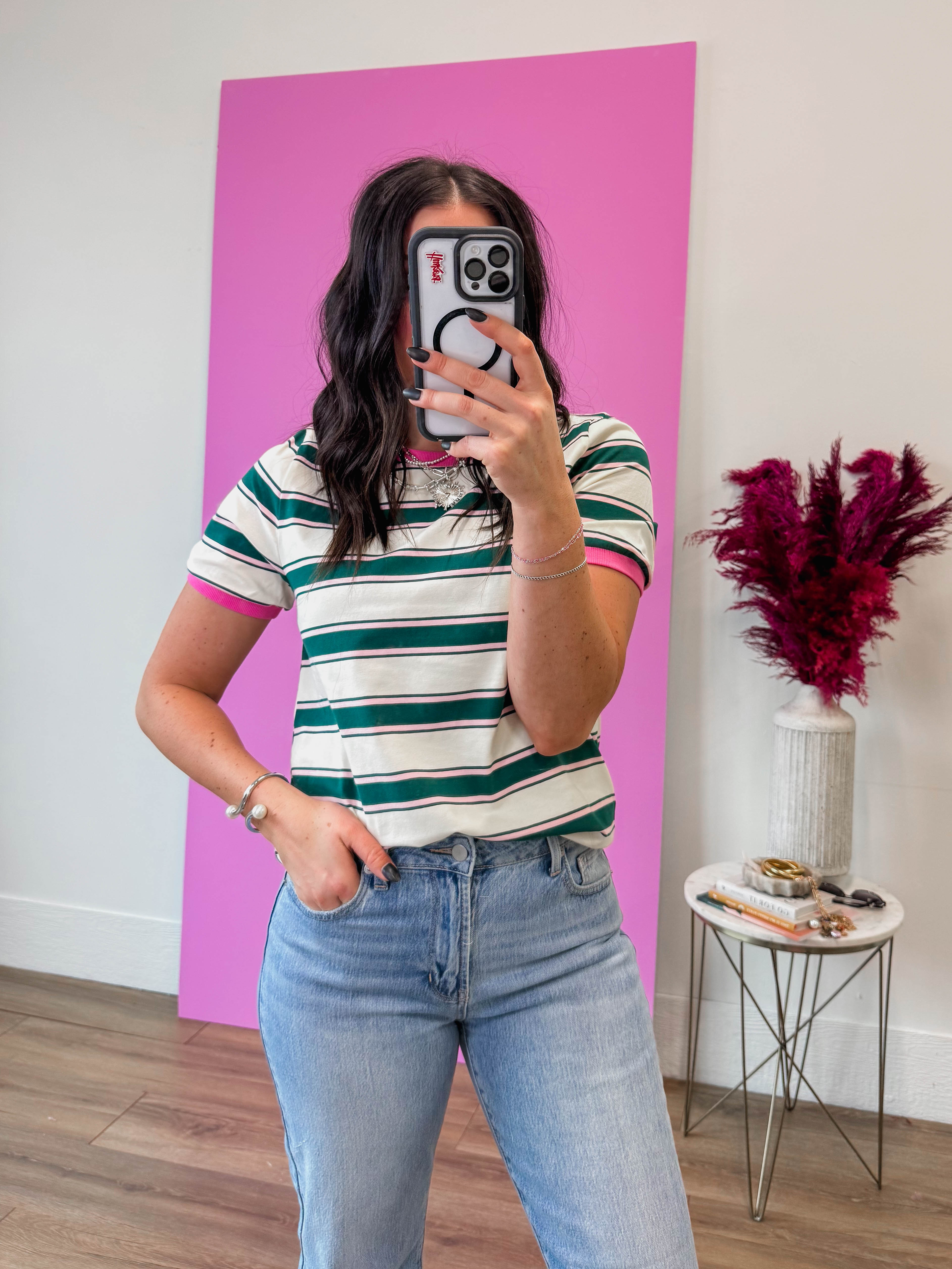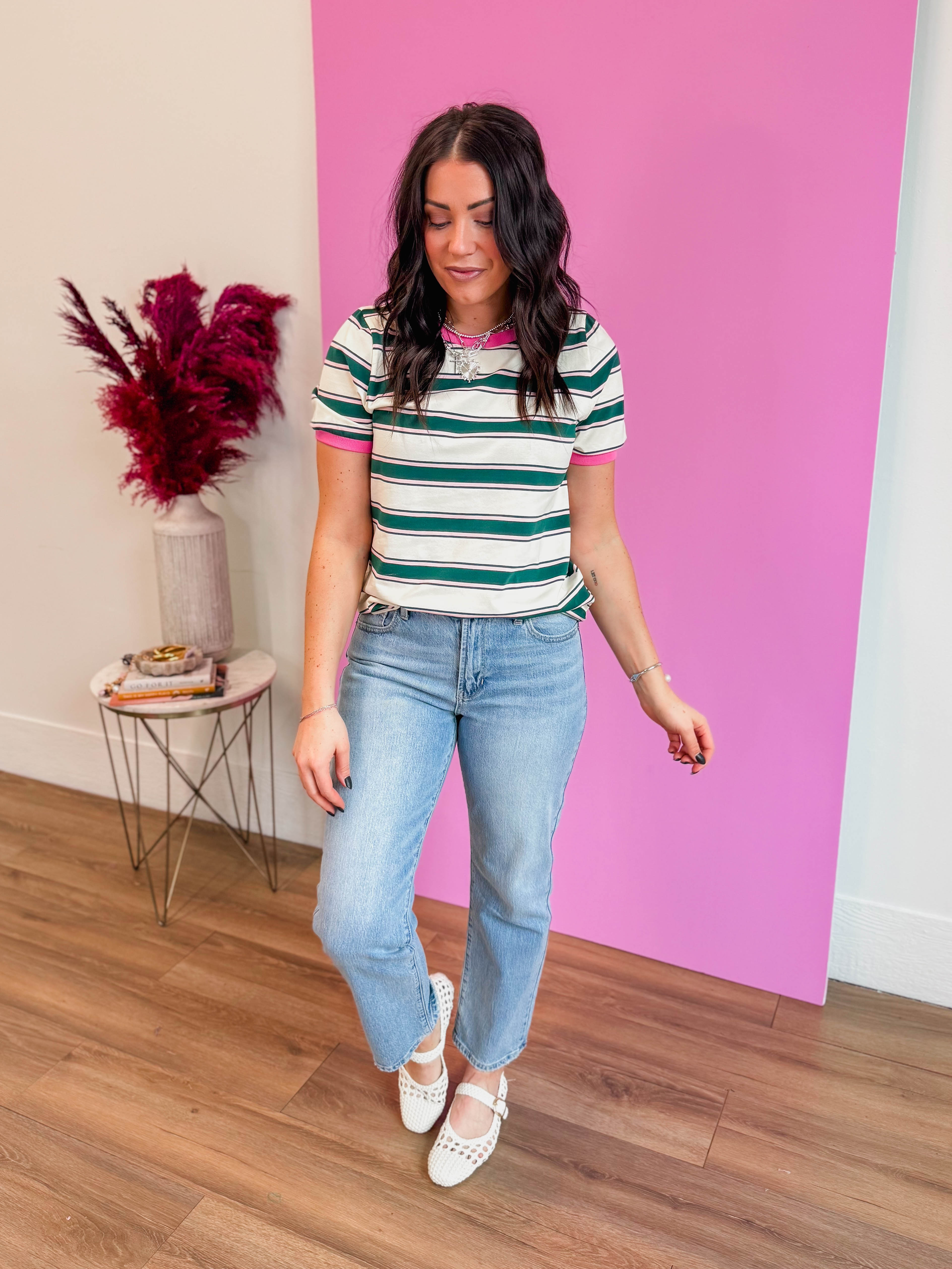 Emma Striped Tee-Green/Pink