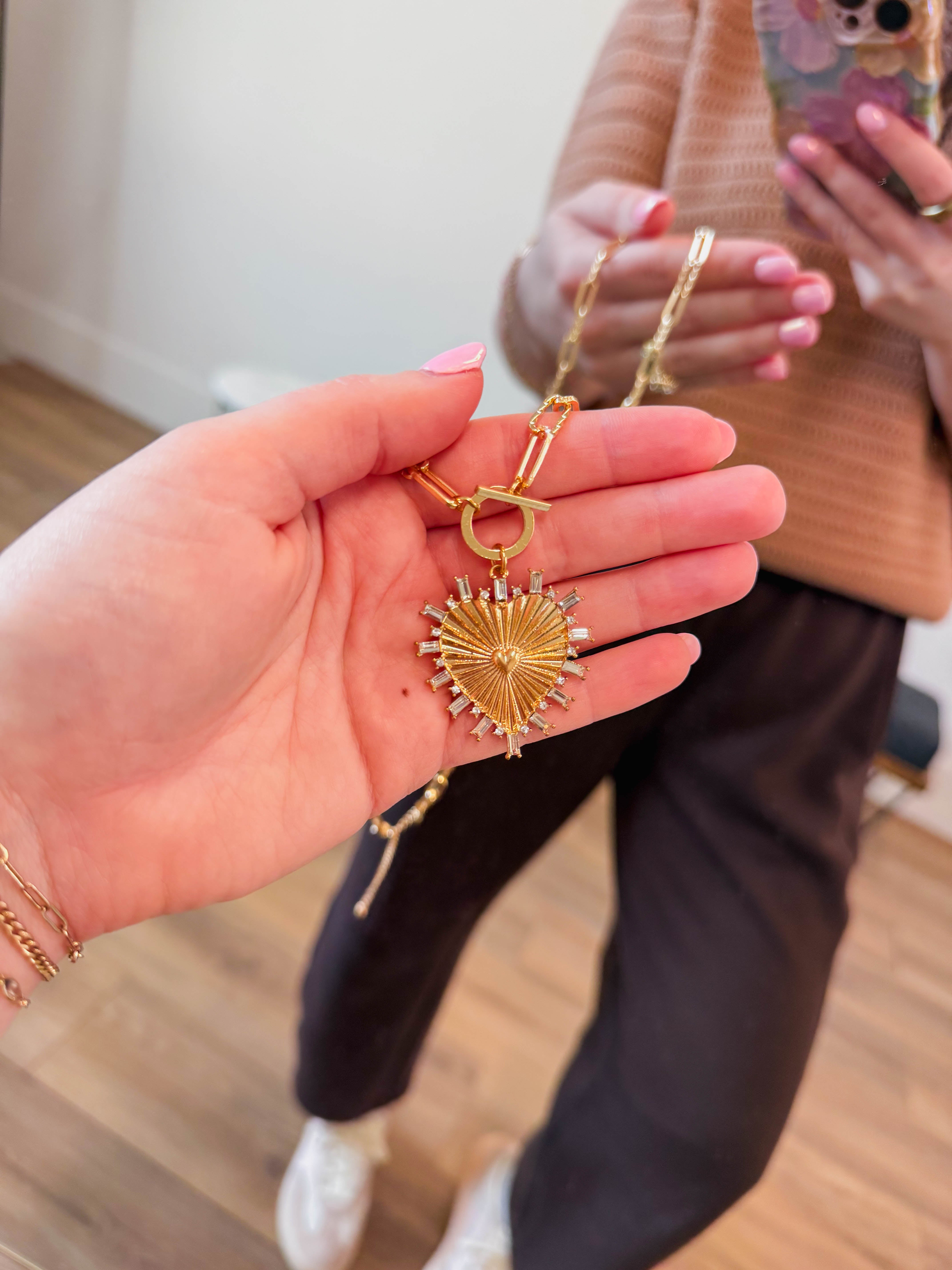 Gold Chain with Rhinestone Studded Heart Charm 16"-18" Necklace