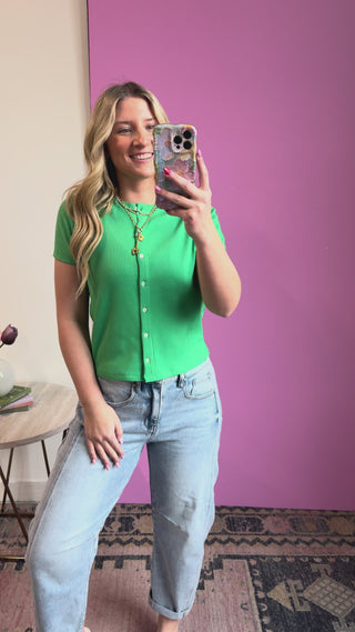 Maya Ribbed Button Down Tee-Green