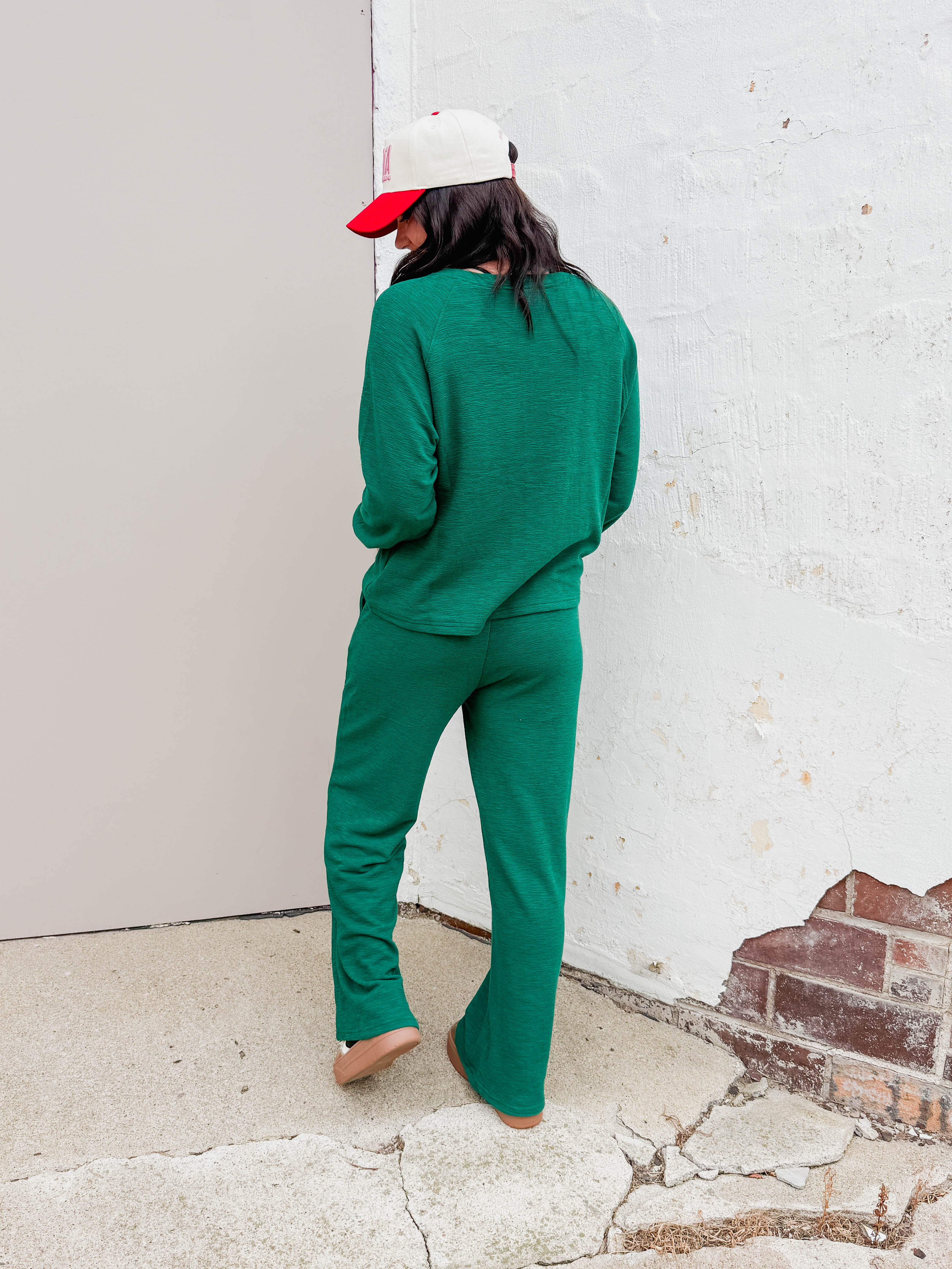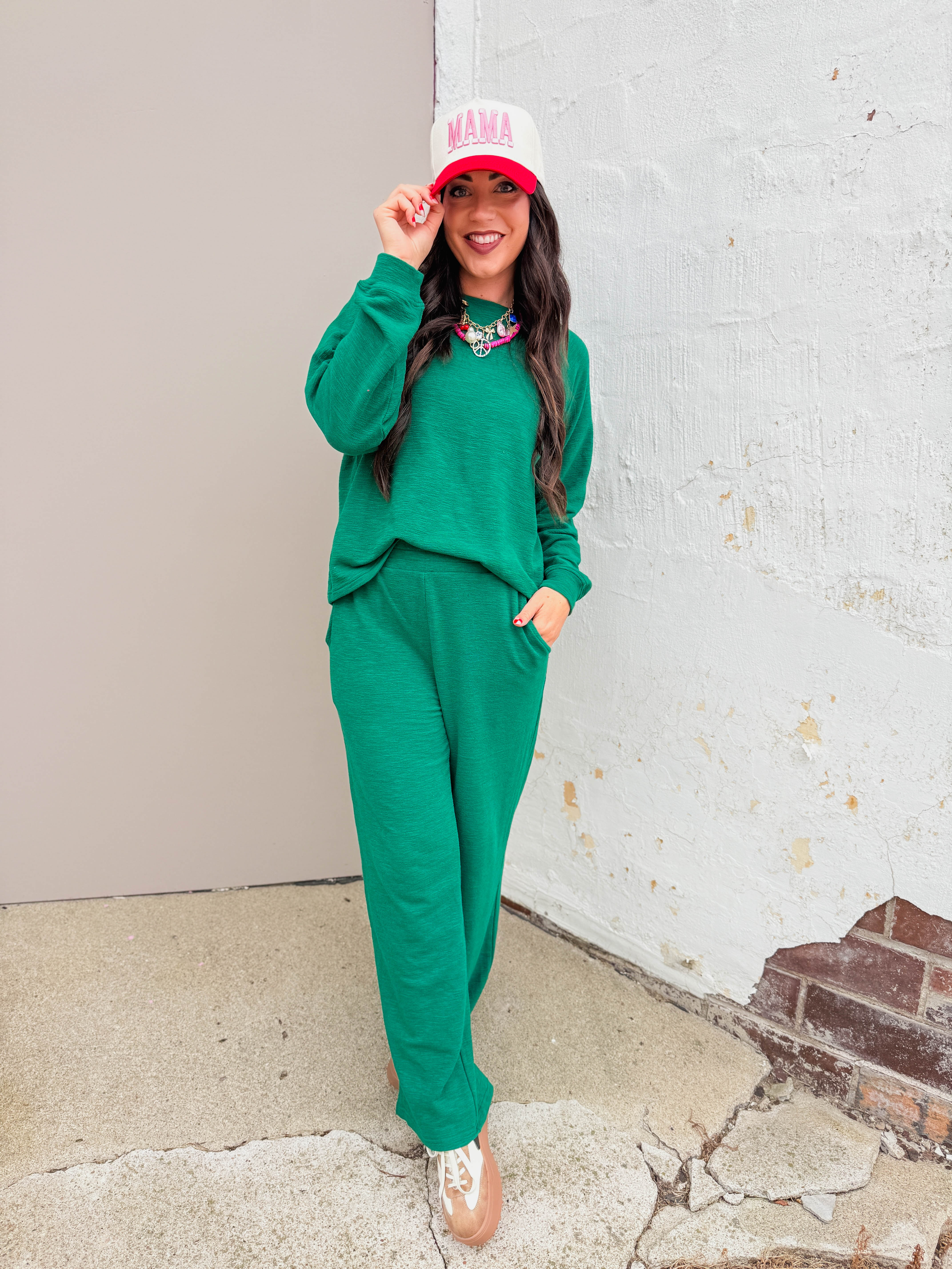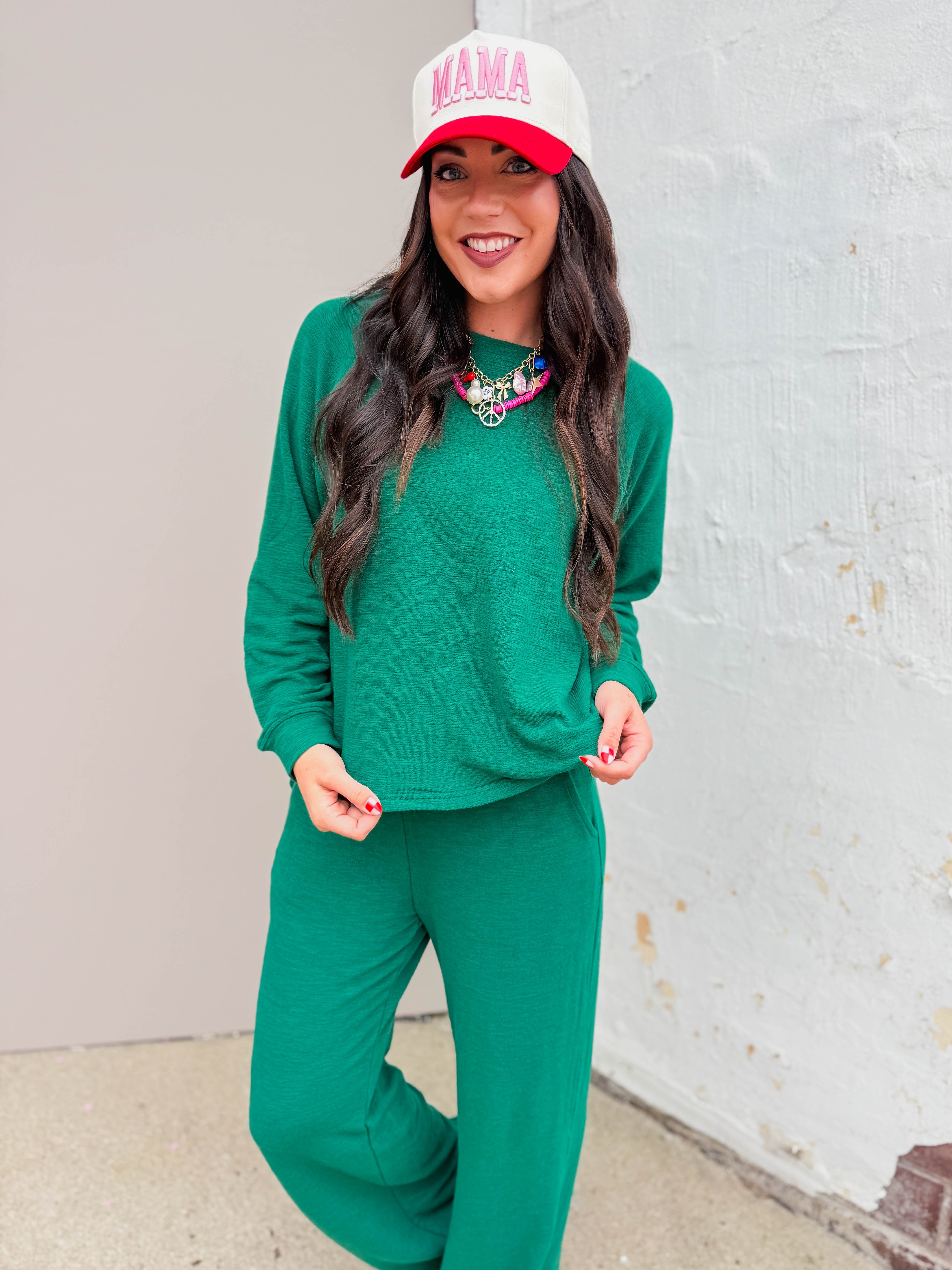 The Olivia Lounge Set is a new look of our best selling Kinzee set! It's tall girl friendly, super comfy and so versatile! It's the perfect throw and go ensemble, it is easy to mix and match with all of your faves and you can go more neutral with the brown or add a fun pop of color with the gorgeous green! This will be your new comfortable bestie this fall and winter!