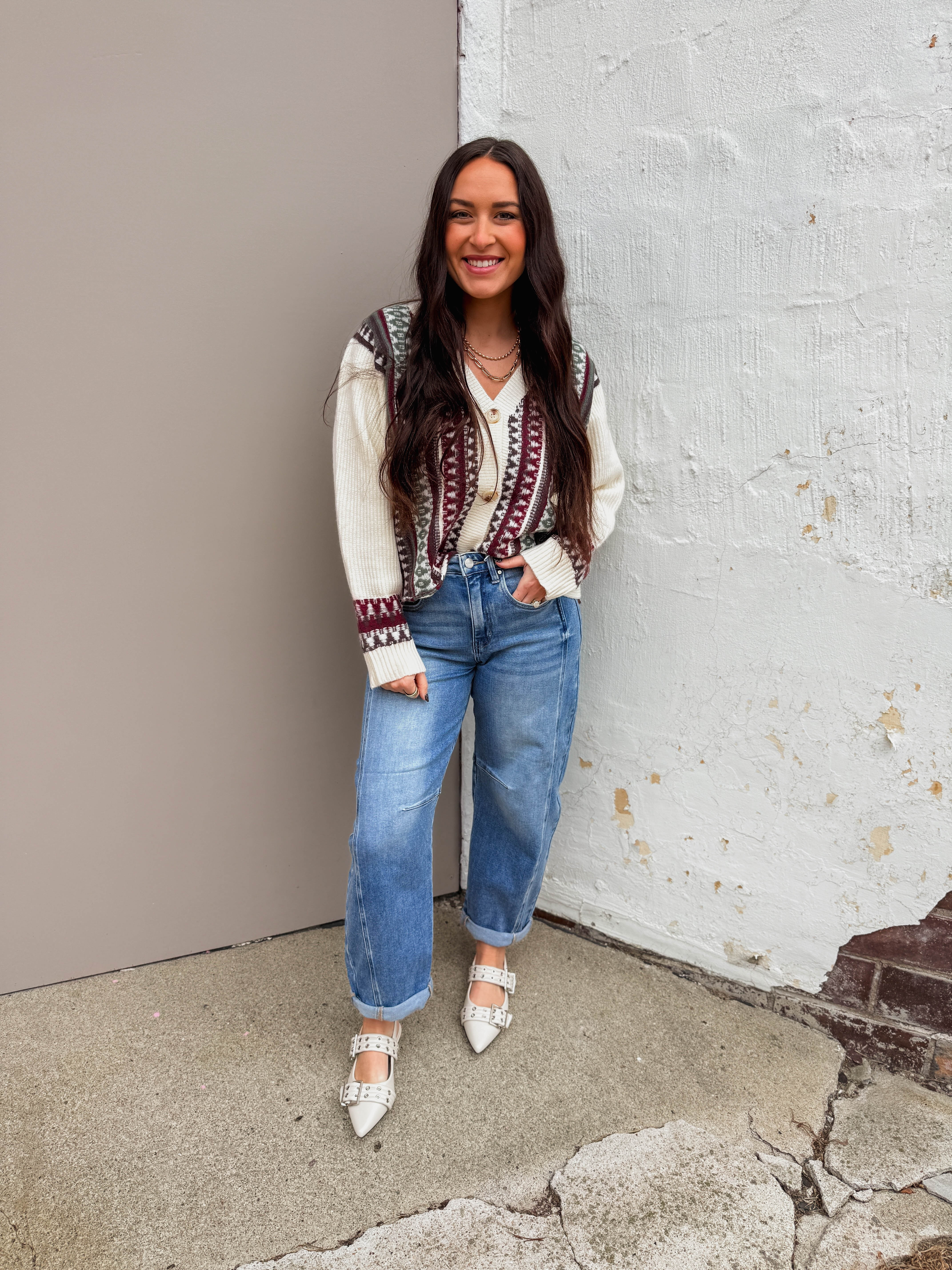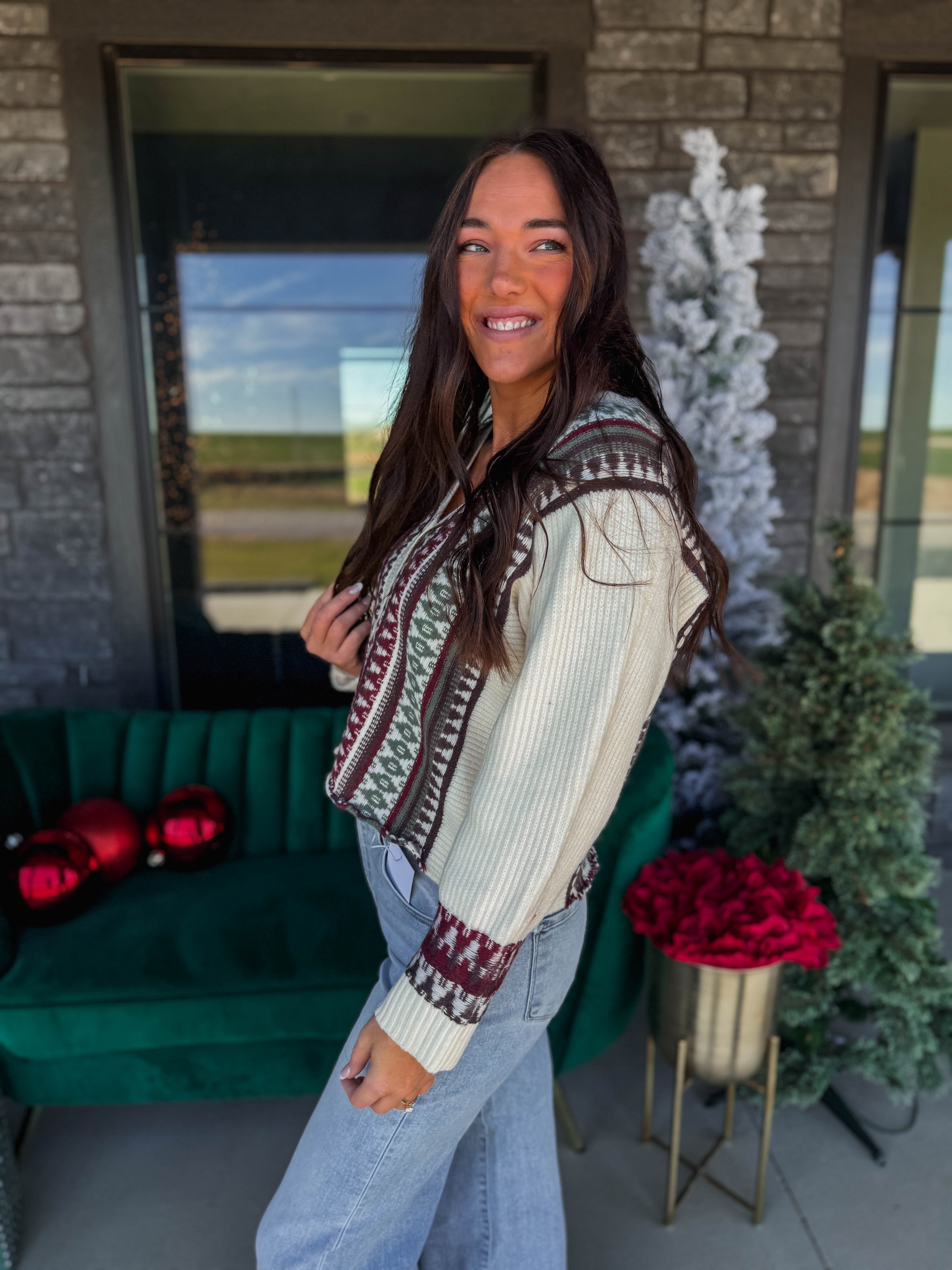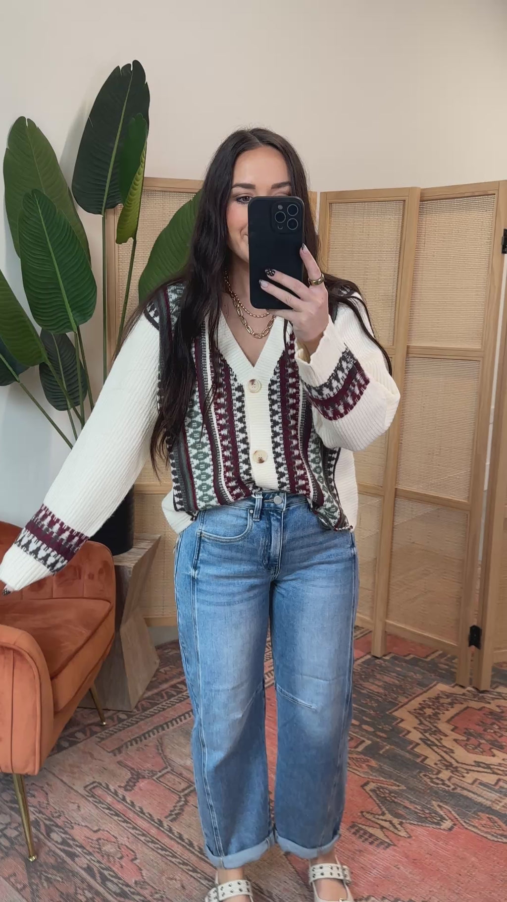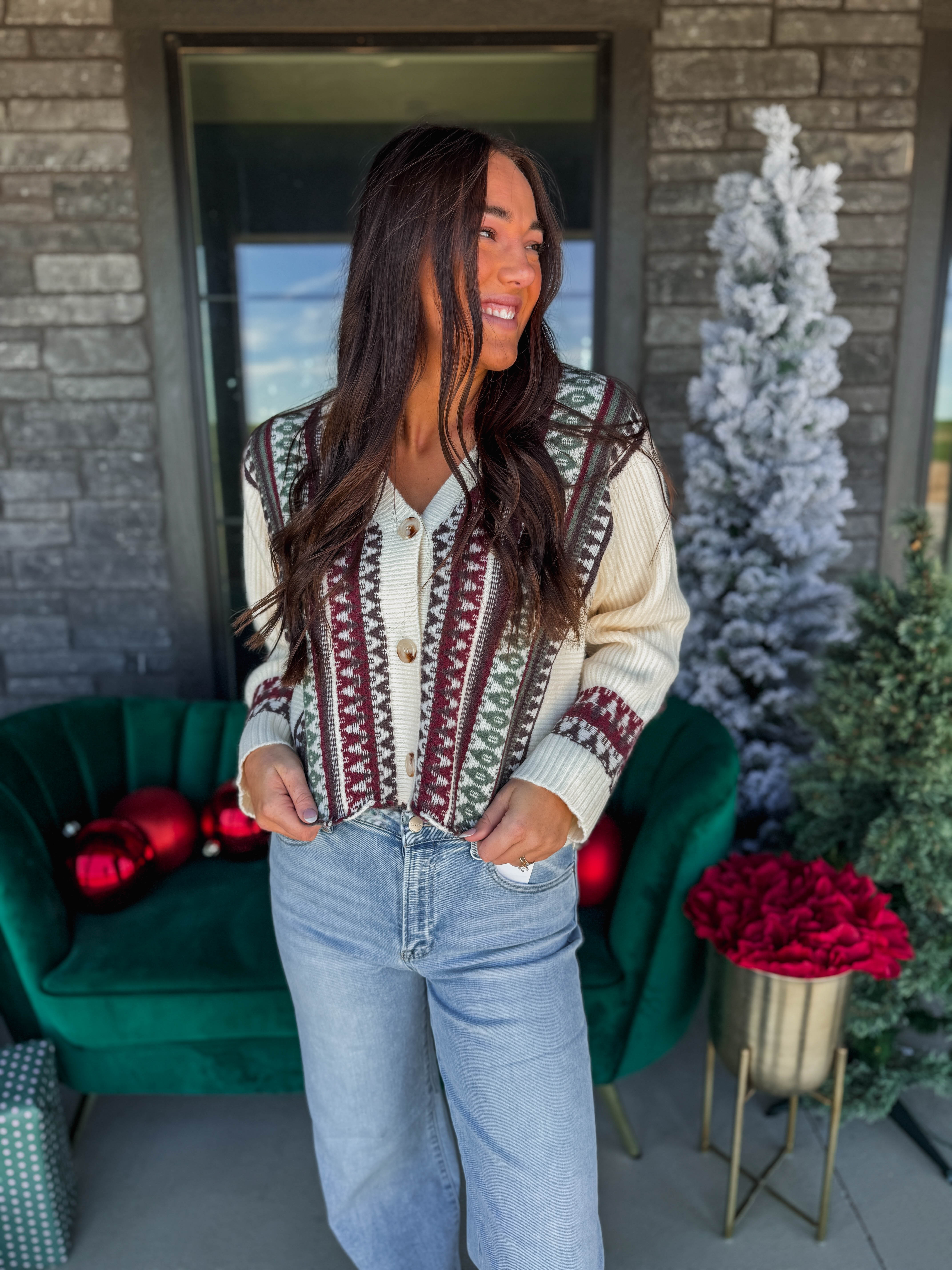 Cozy up in the Rhett Cardigan, featuring a flattering V-neckline and easy button front. Its long sleeves and cheerful multicolor pattern make it perfect for workdays or weekend fun. Stylishly cute for the holiday season!