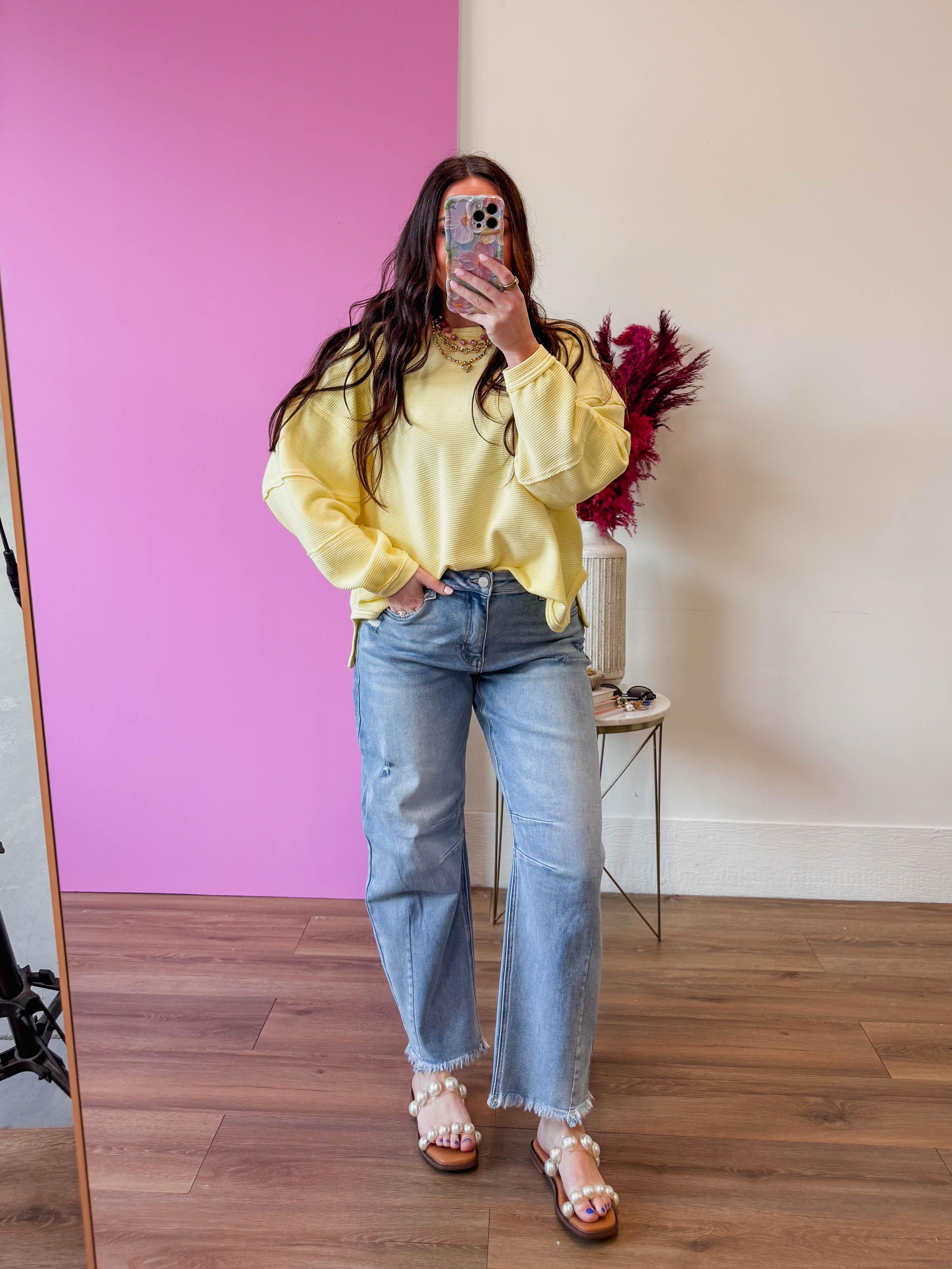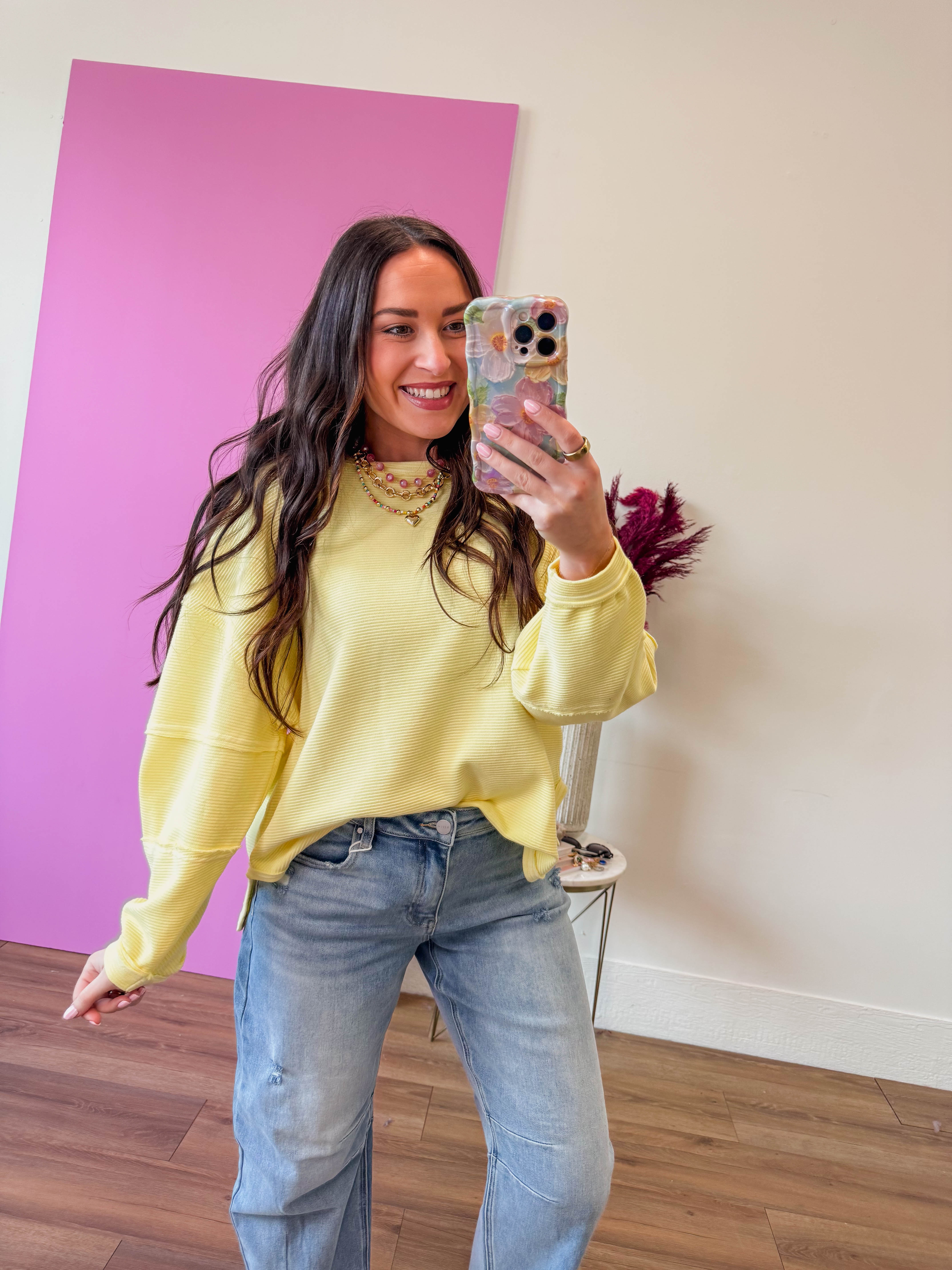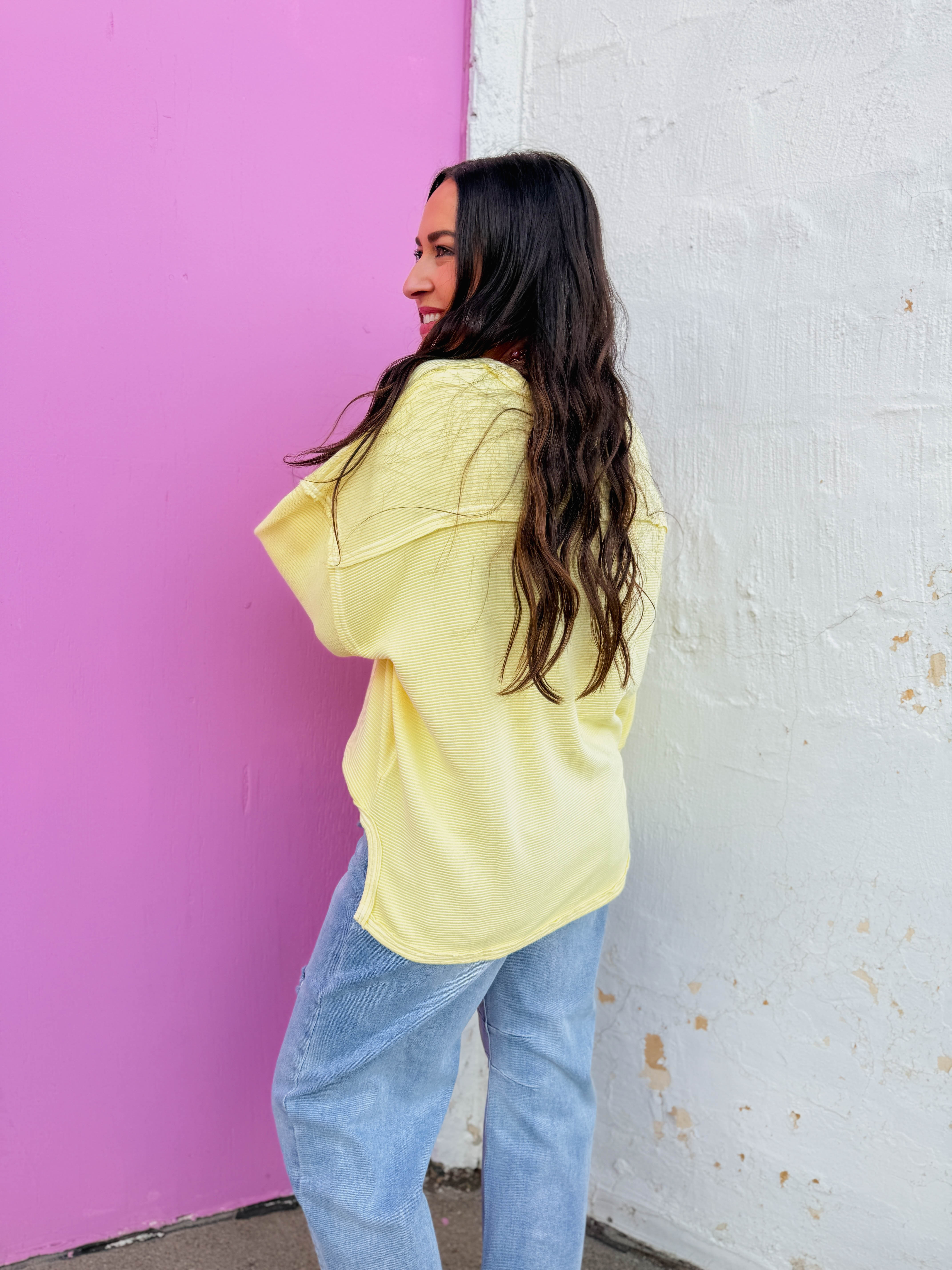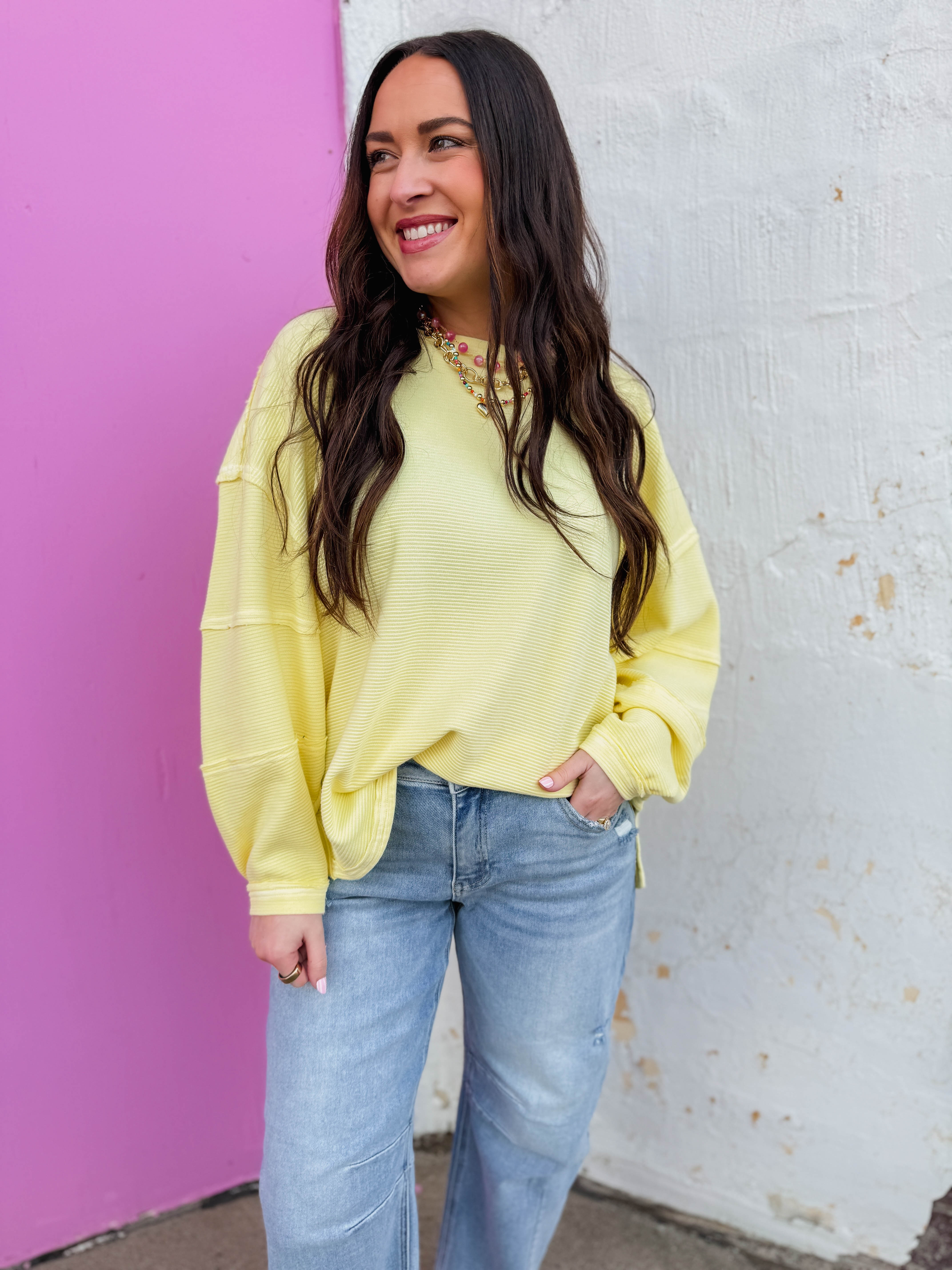 Brighten your wardrobe with this cheerful yellow ribbed top. The relaxed, comfortable fit works just as well with jeans for a casual day as it does dressed up for a night out. Versatile, fun, and effortlessly stylish—your new go-to piece for any occasion.