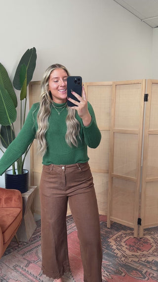 These high-waisted Harlow Pants bring a fun twist with floral embroidered hems. Ankle-length with a classic button and zip fly, they effortlessly transition from work vibes to weekend adventures.