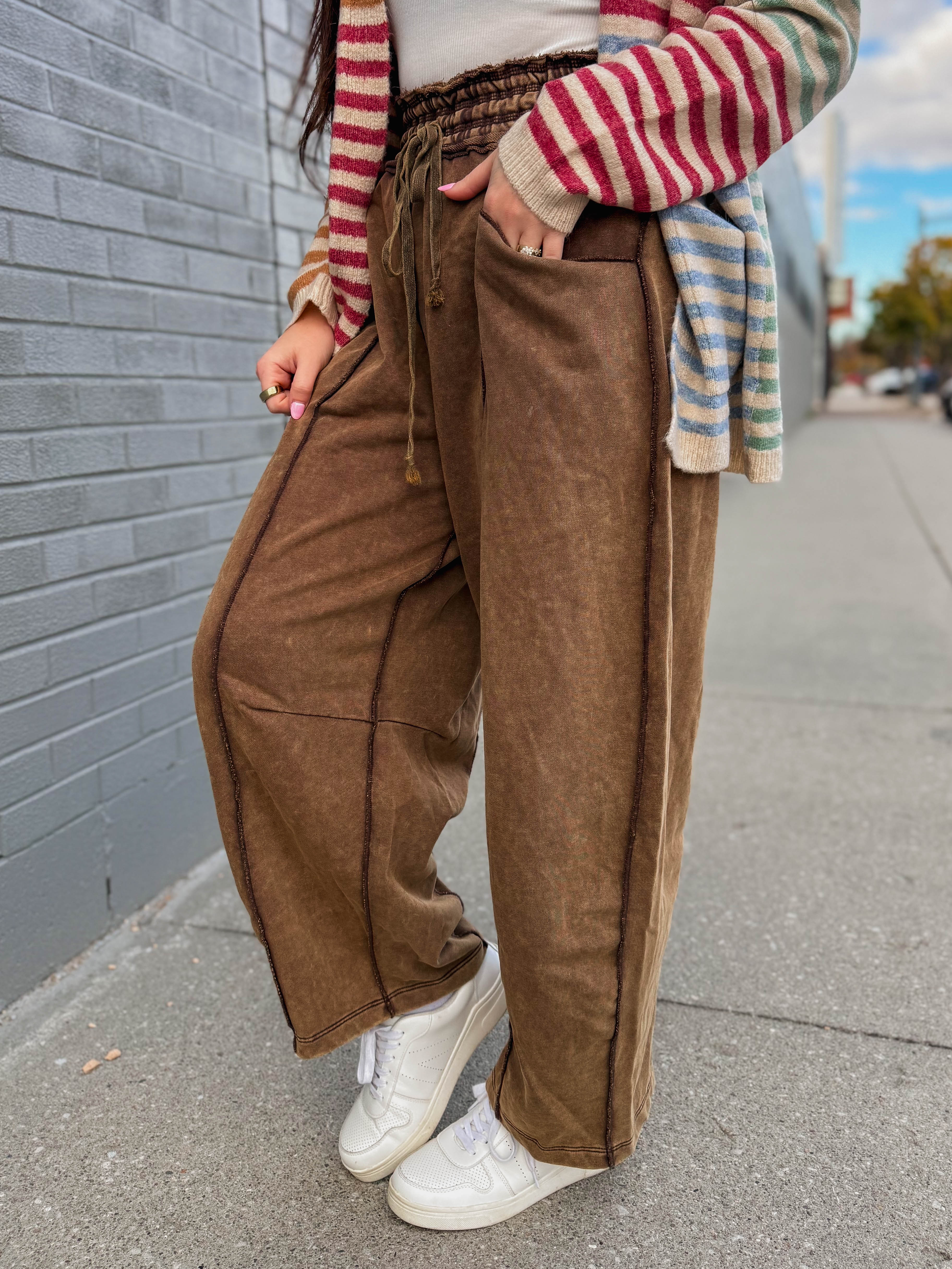 Karley Barrel Pants-Brown