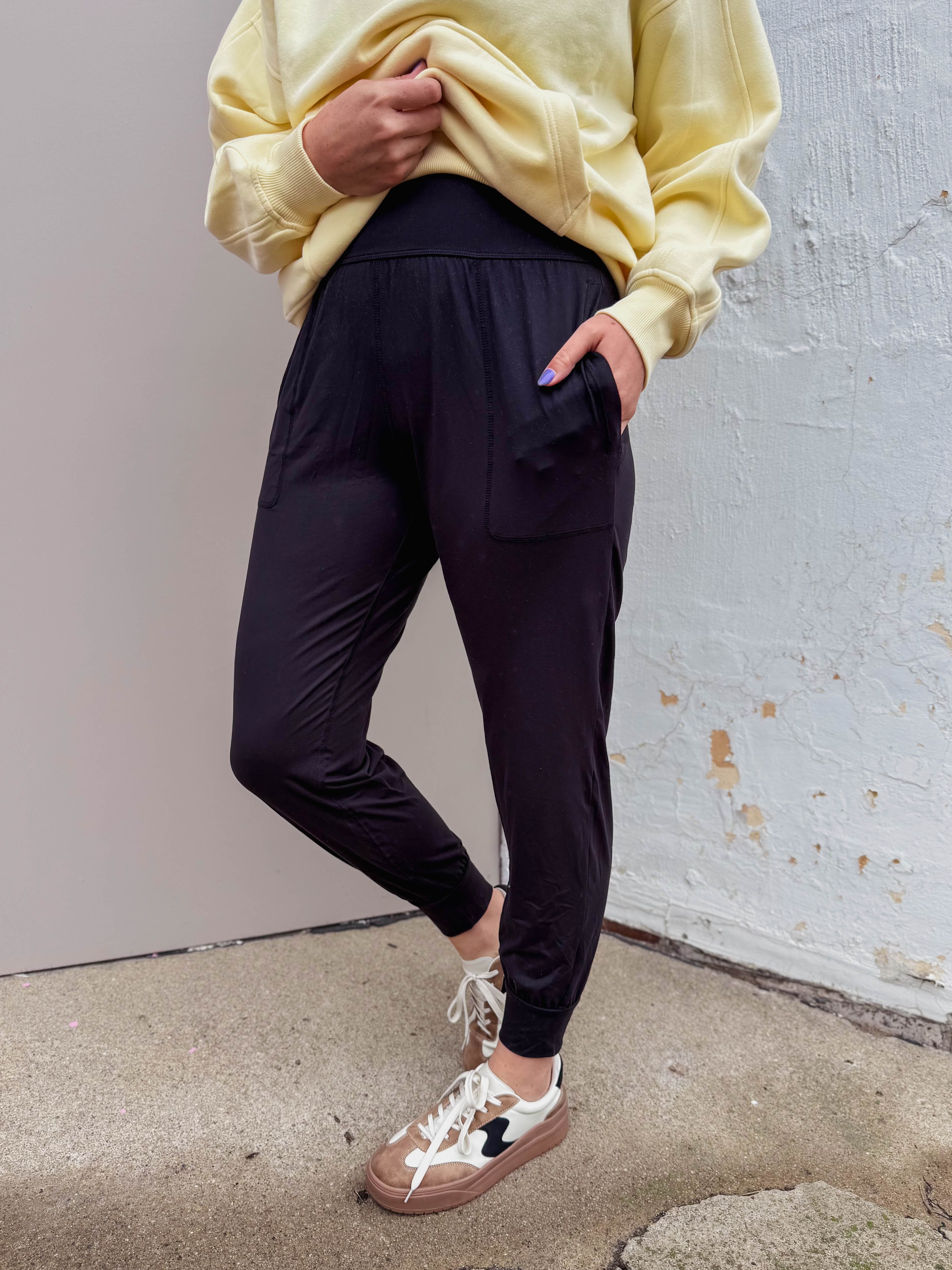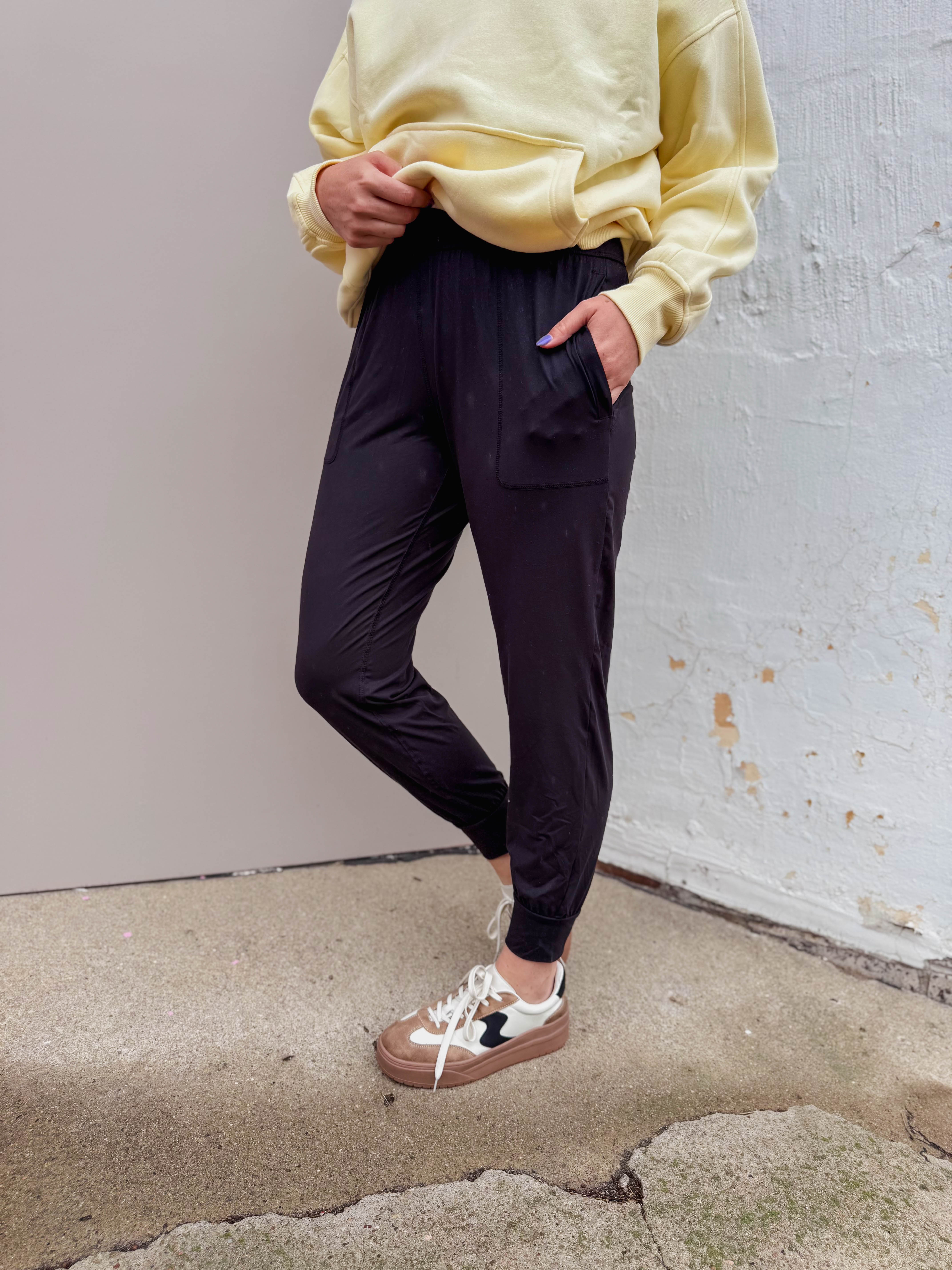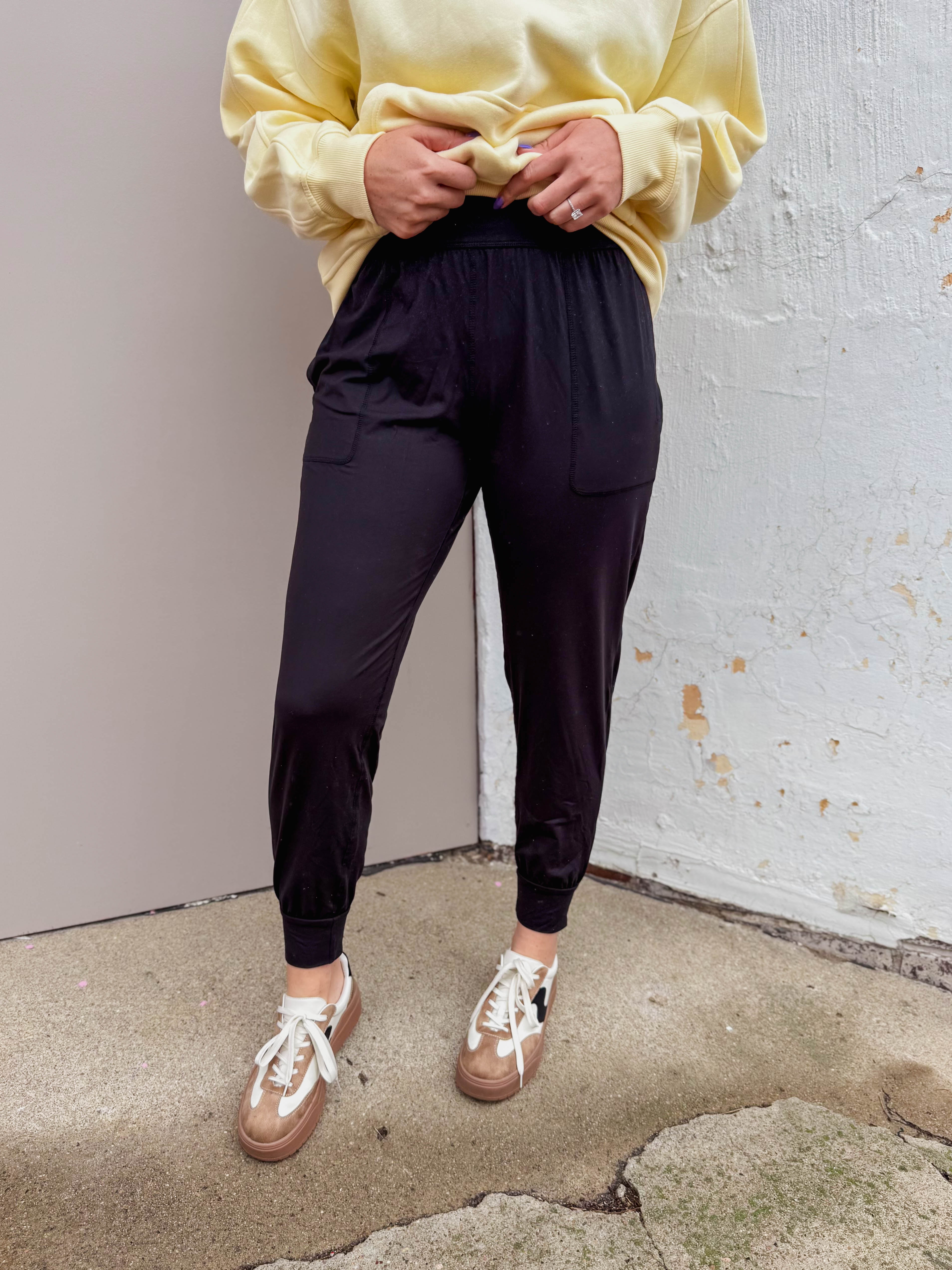 The On The Go Joggers are your new favorite sweatpants! High-waisted and buttery soft, they hug you in all the right places while keeping you comfy. With handy side pockets, they're perfect for running errands or lounging around. Cozy, flattering, and totally stylish—your go-to staple sweatpants!
