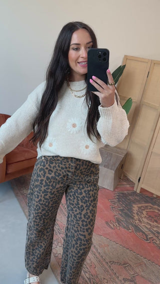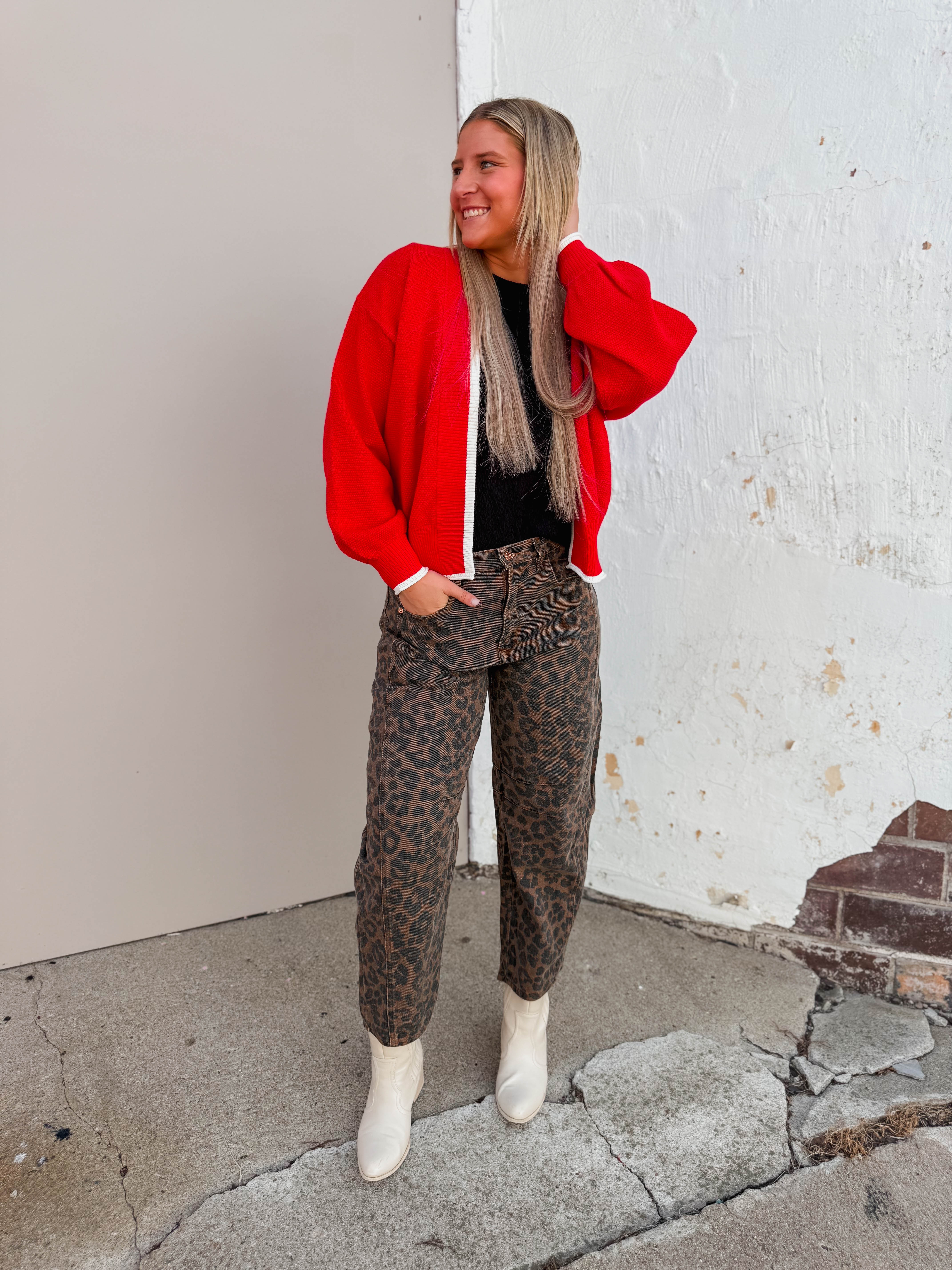 RESTOCK! Bring some wild style to any day with the Rowan Leopard Barrel Pants. These ankle-length pants feature a button fly-front zip closure, comfy side pockets, and back patch pockets—perfect for anytime from work to weekend. The bold leopard pattern keeps your look cute and lively all year round.