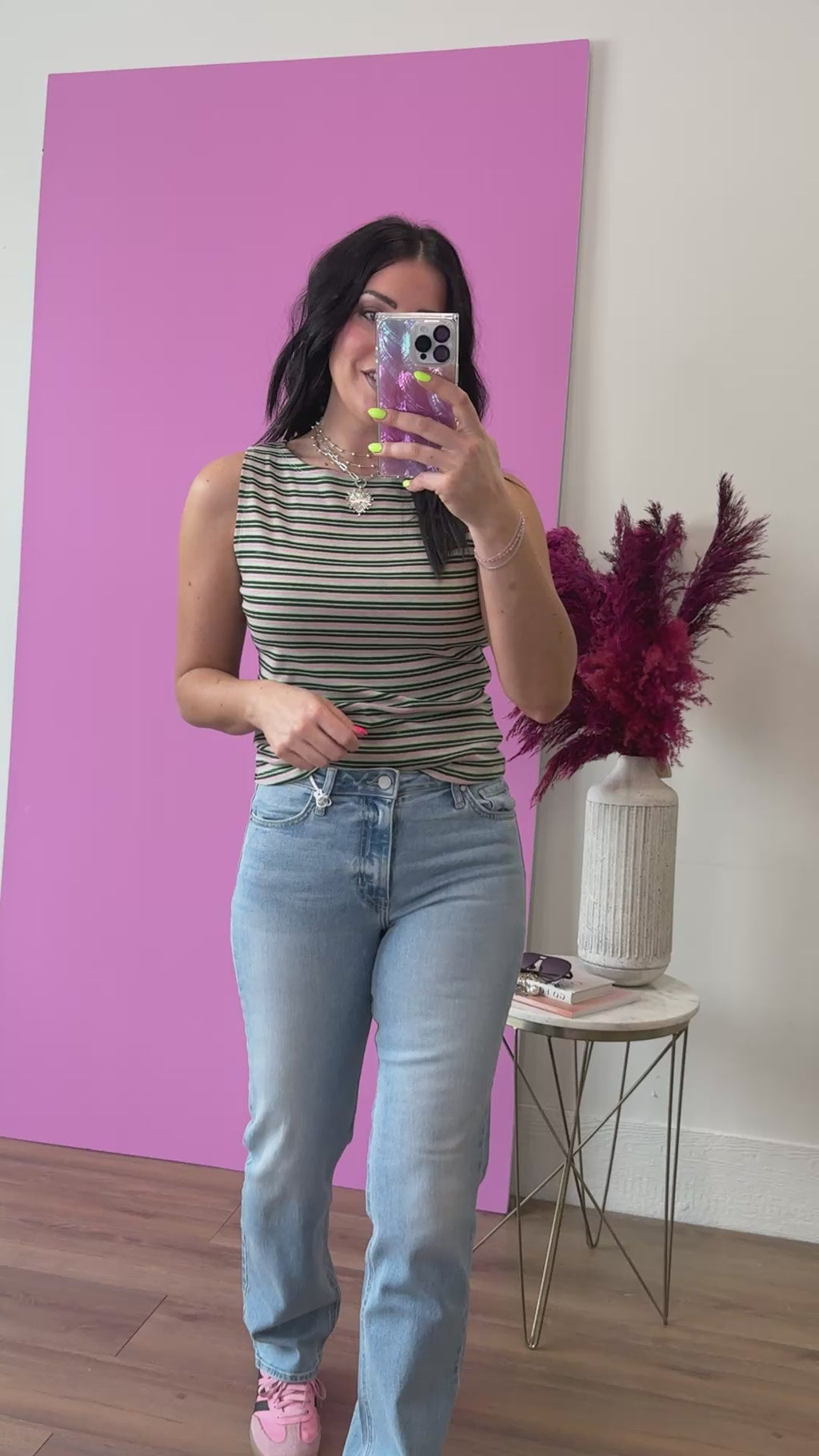 Brighten your warm-weather wardrobe with this cheerful multicolor striped tank. The vibrant horizontal stripes bring playful energy to any outfit while the sleeveless design keeps you cool and comfortable. Layer it under open shirts, pair with shorts, or wear solo for effortless spring and summer style. A versatile essential that captures the carefree spirit of the season.