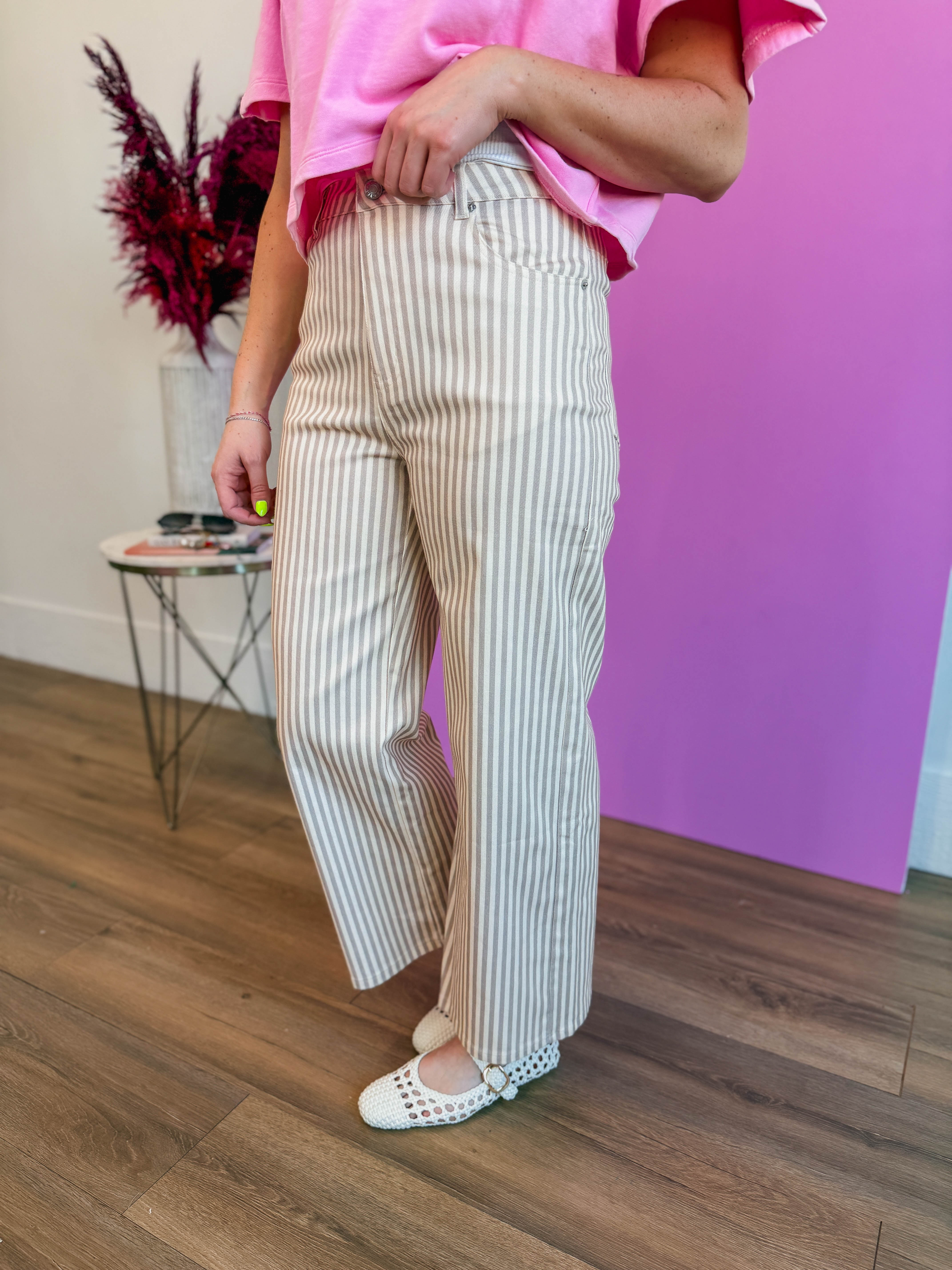 The Easy Does It Pants bring effortless style to your everyday rotation. These striped pants feature a comfortable fit that takes you seamlessly from office to weekend plans. With their trendy vibe and versatile design, they're the perfect piece for mixing and matching with your favorite tops. Dress them up or down—styling possibilities are endless.