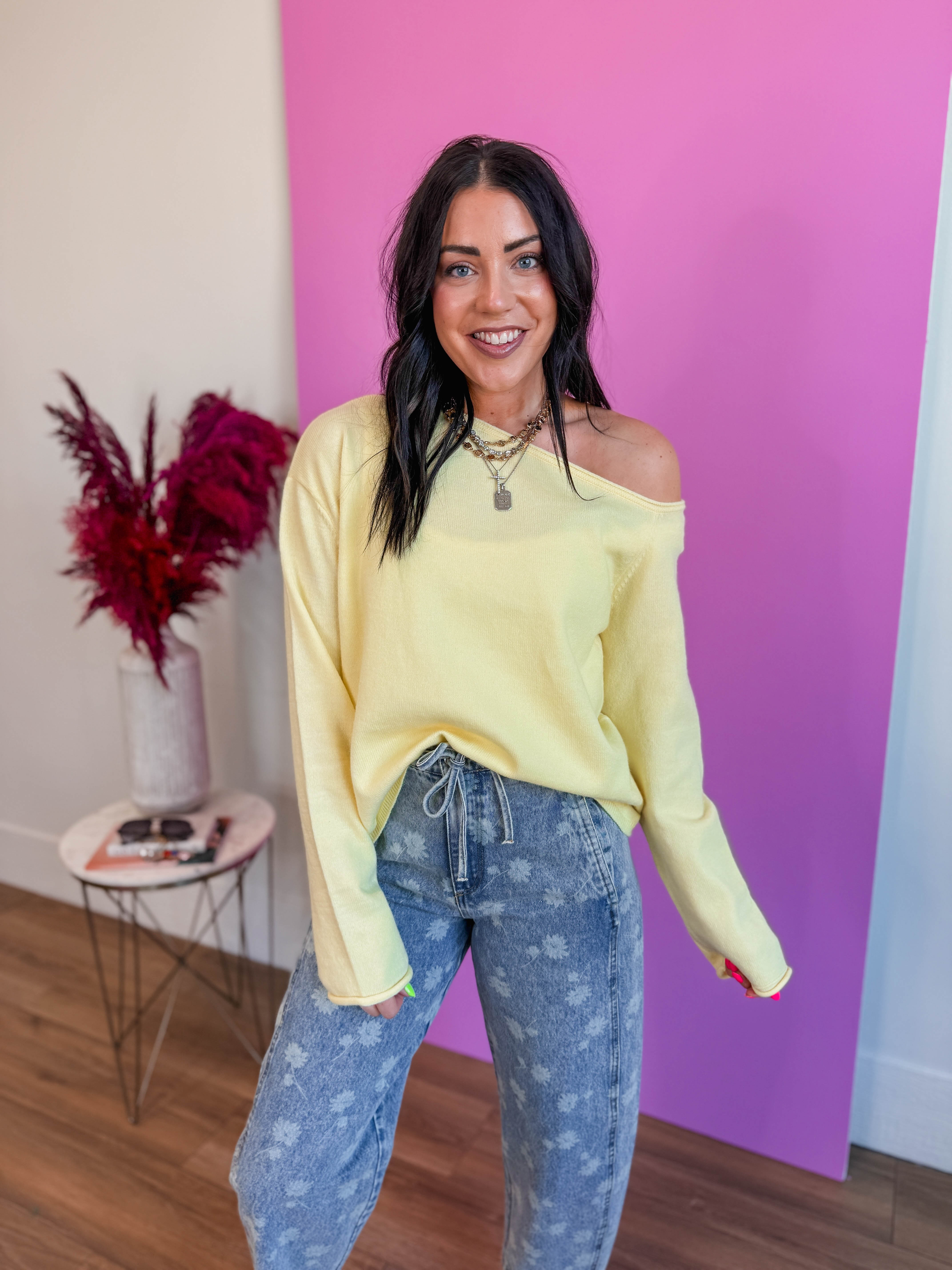 Lemon Drop Off Shoulder Sweater
