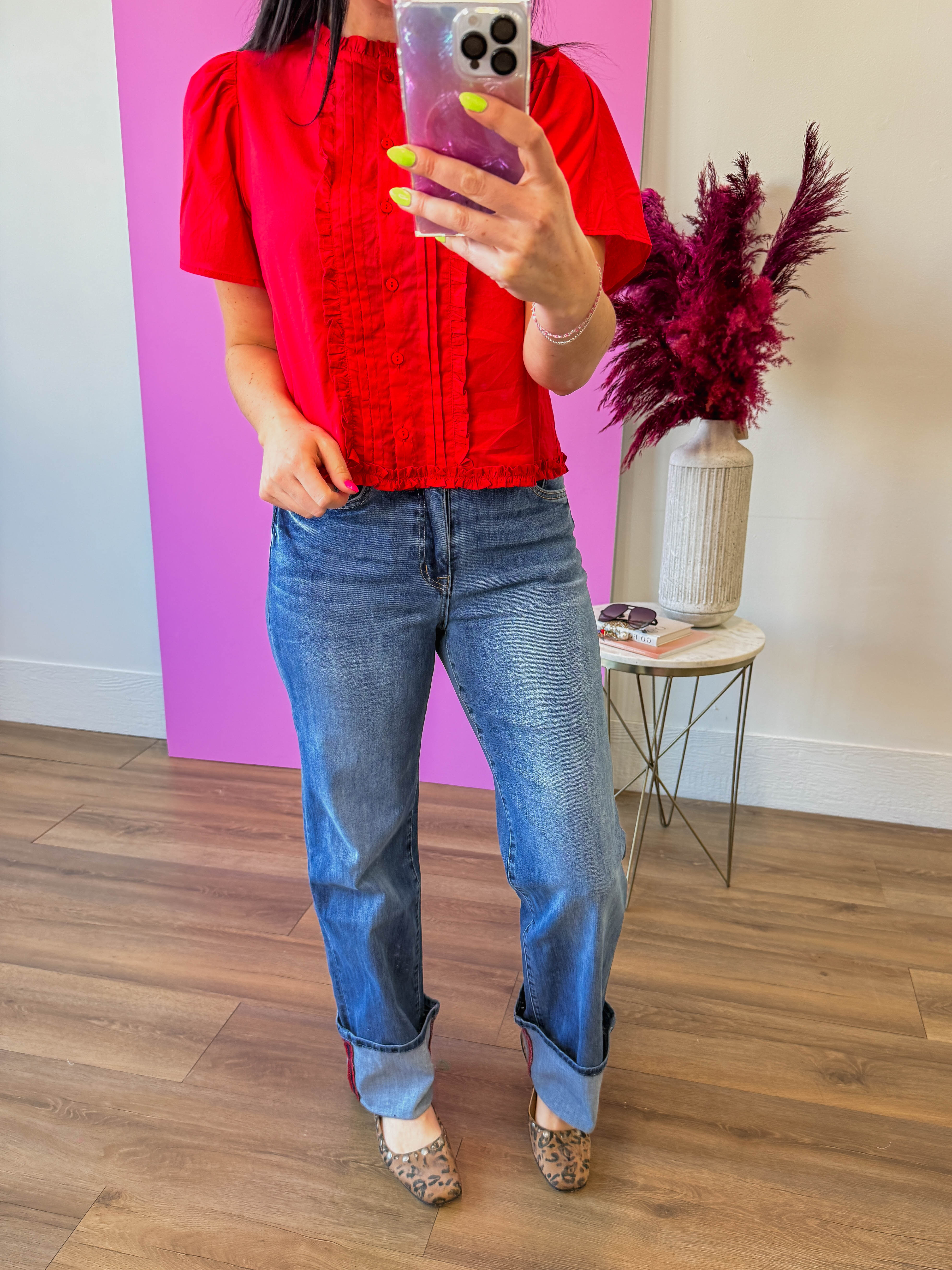Rylee High Rise Cuffed Wide Leg Denim