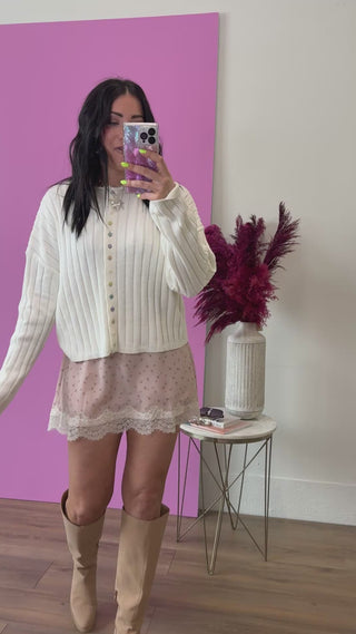 Elevate your layering game with this charming ivory cardigan sweater, adorned with playful multicolor star buttons that add personality and flair. The soft, neutral base pairs beautifully with any outfit while the whimsical button details spark conversation and style. Lightweight yet cozy, this piece transitions effortlessly from season to season, making it a treasured addition to your everyday collection.