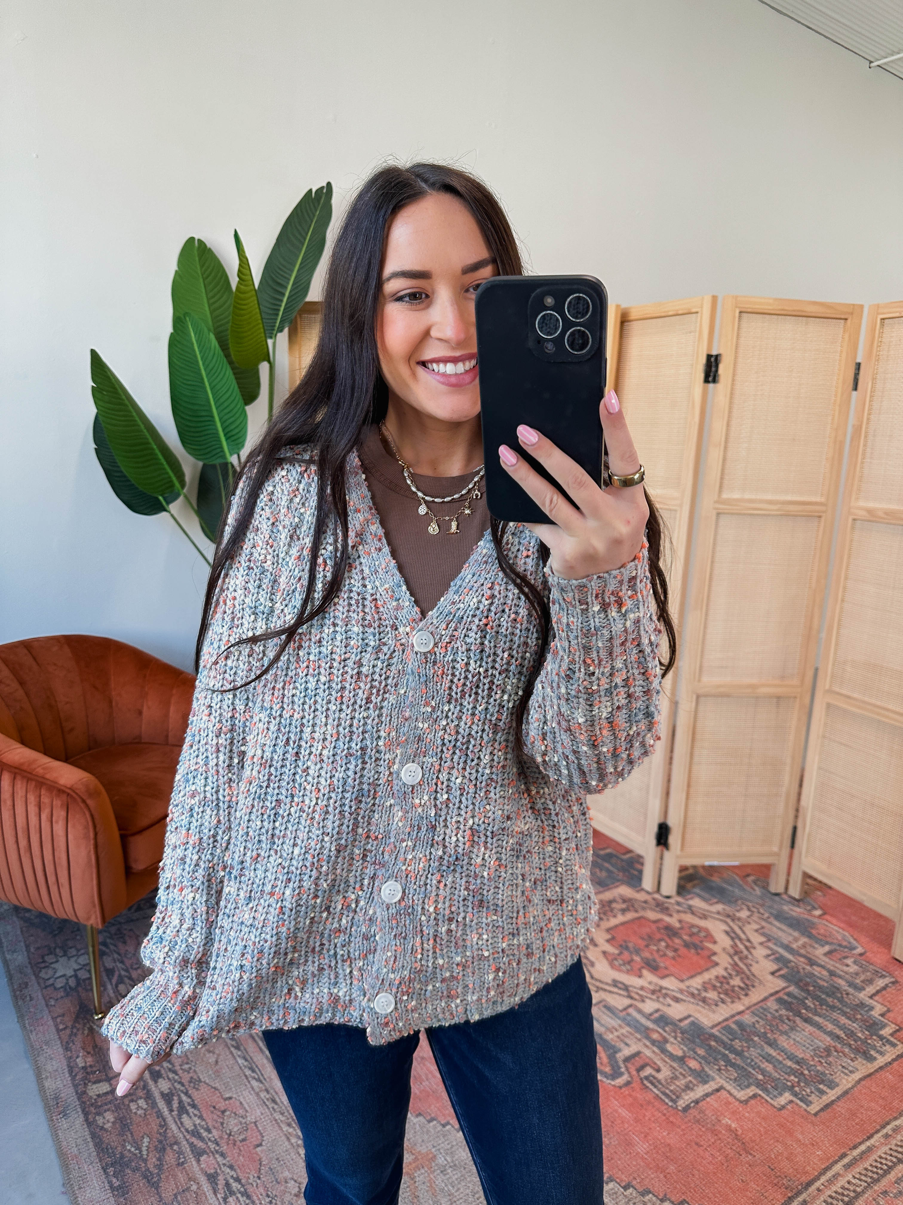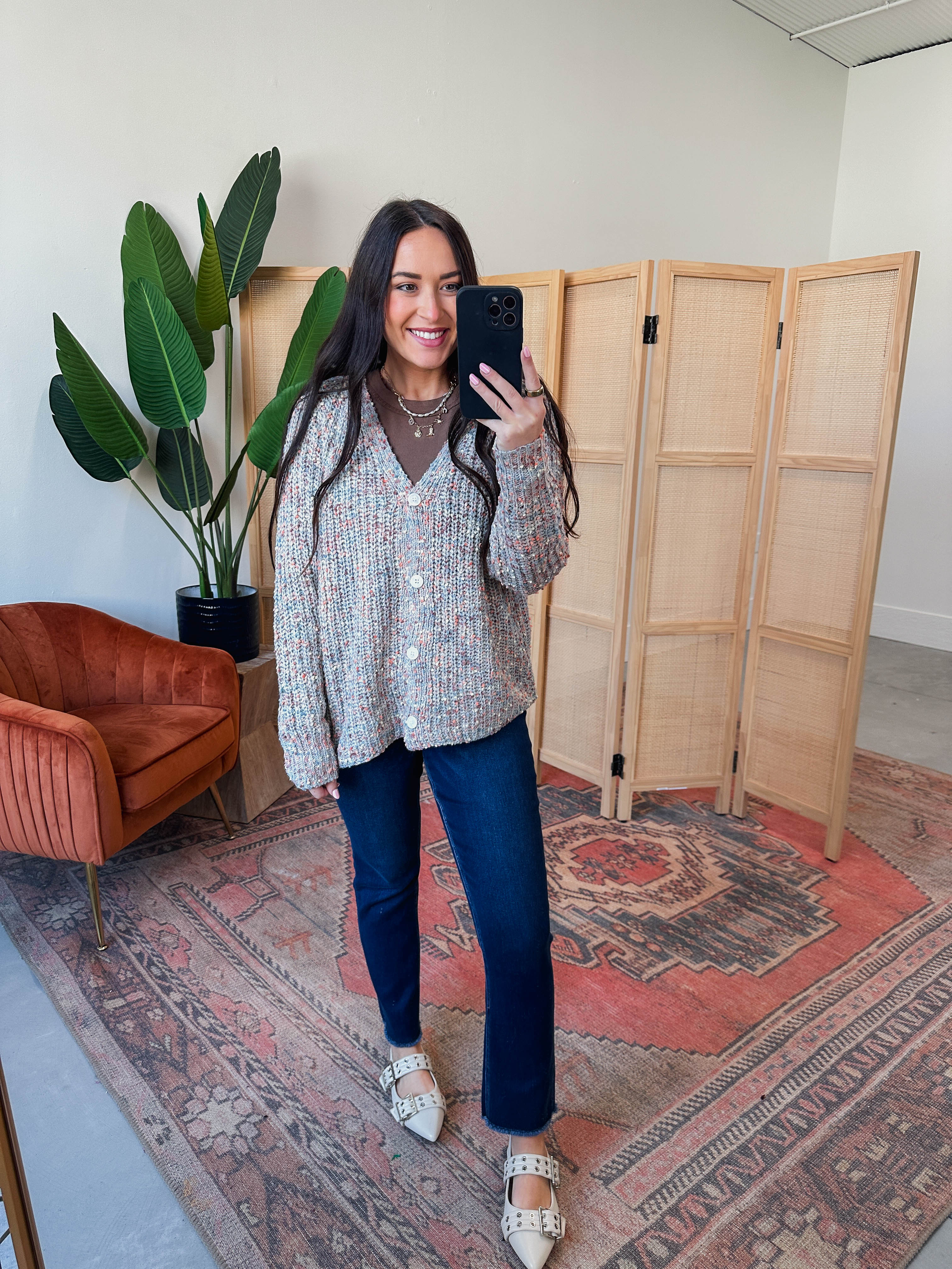 The Avery Speckled Cardigan adds a fun, subtle pop of color to your outfit with its multi-color popcorn knit. Featuring a cozy V-neck, long sleeves, and button-front closure, it’s perfect for going from work to weekend in style.